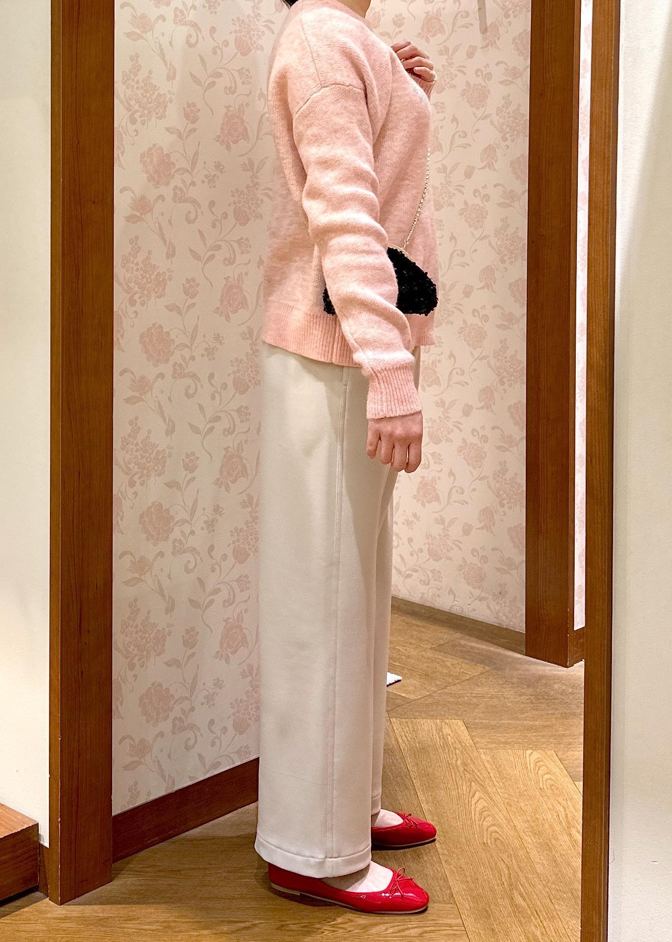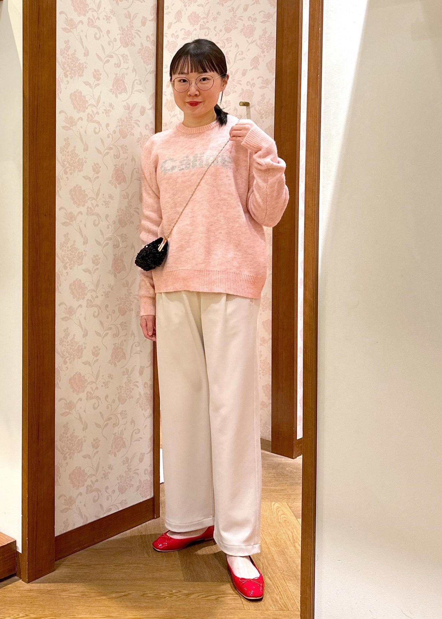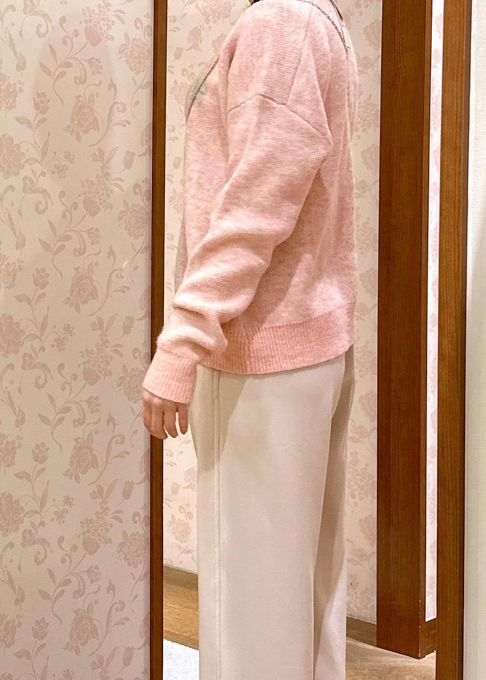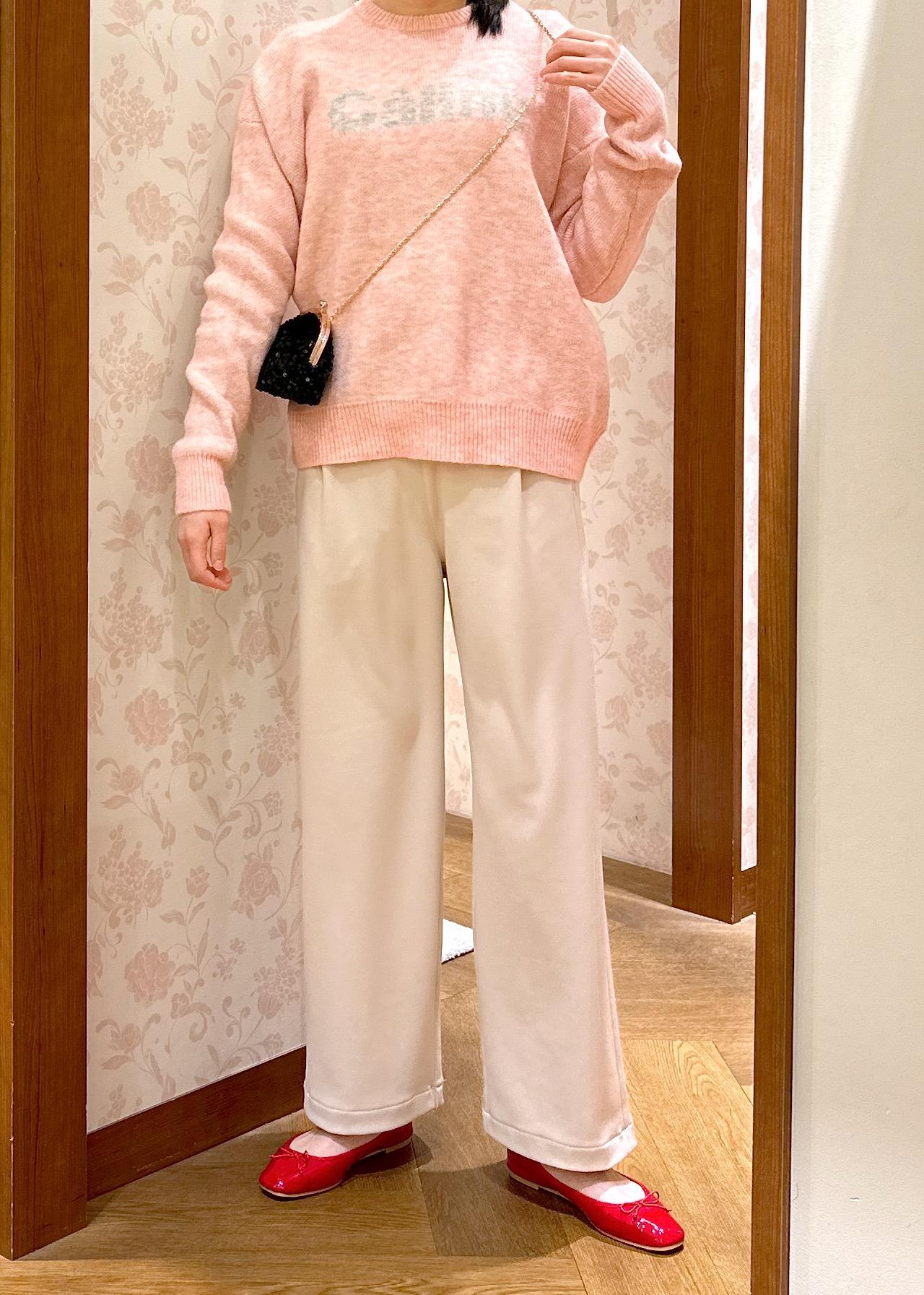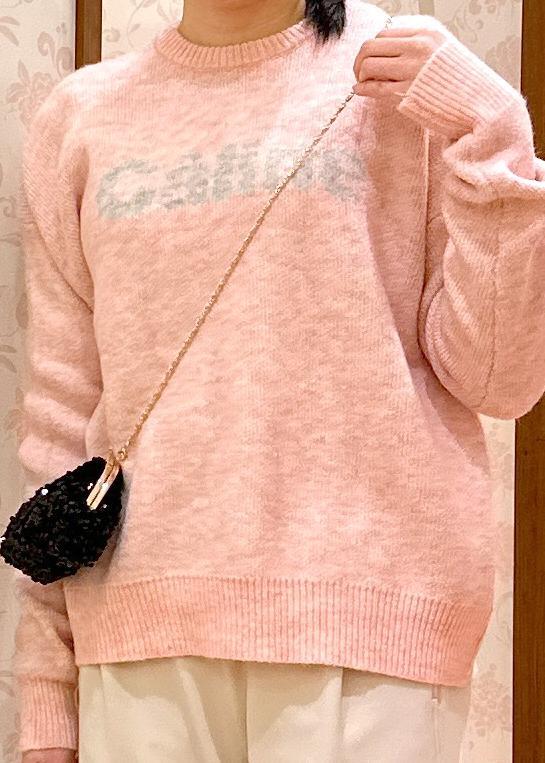 ロゴジャガードニットのピンクを引き立つように