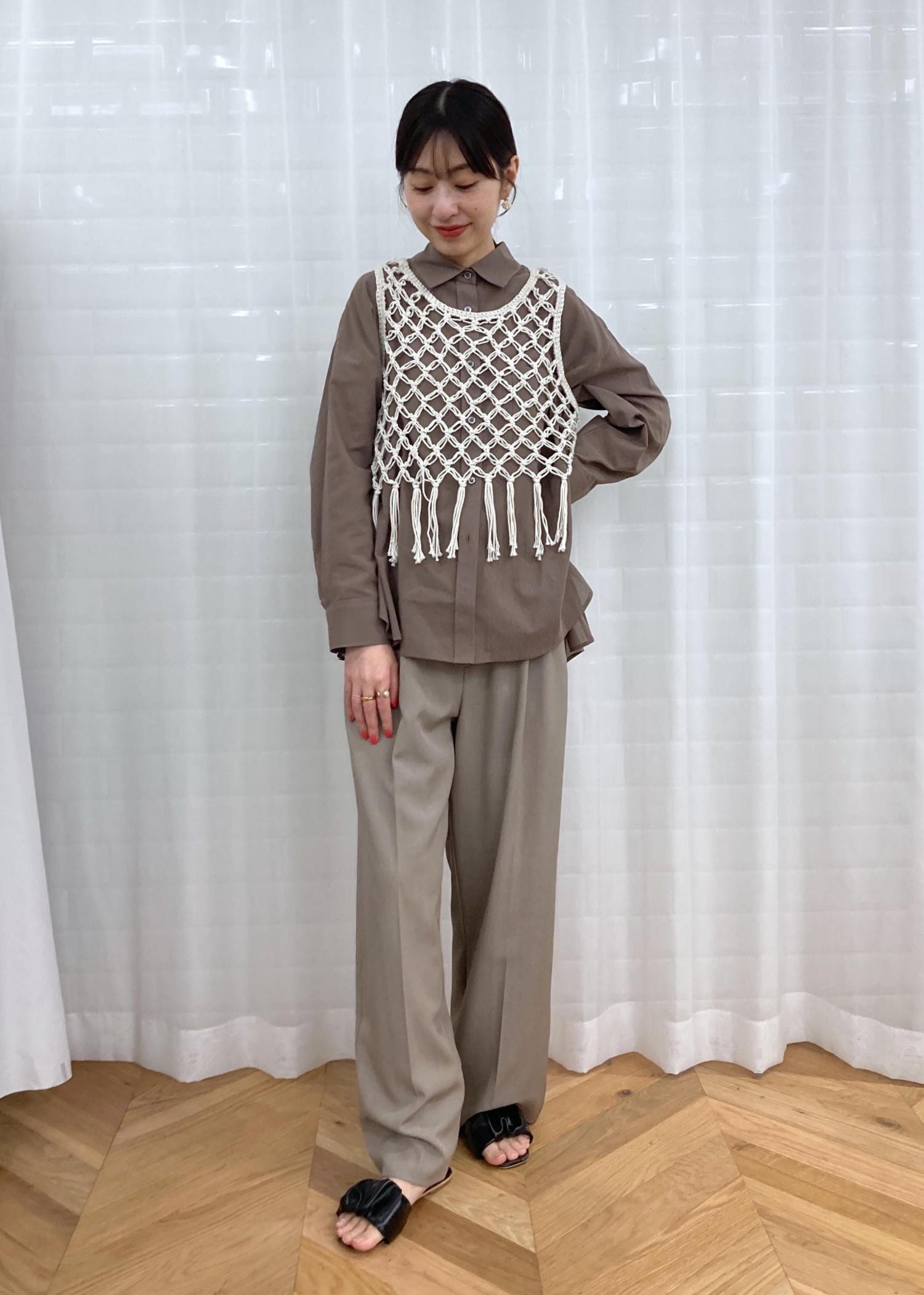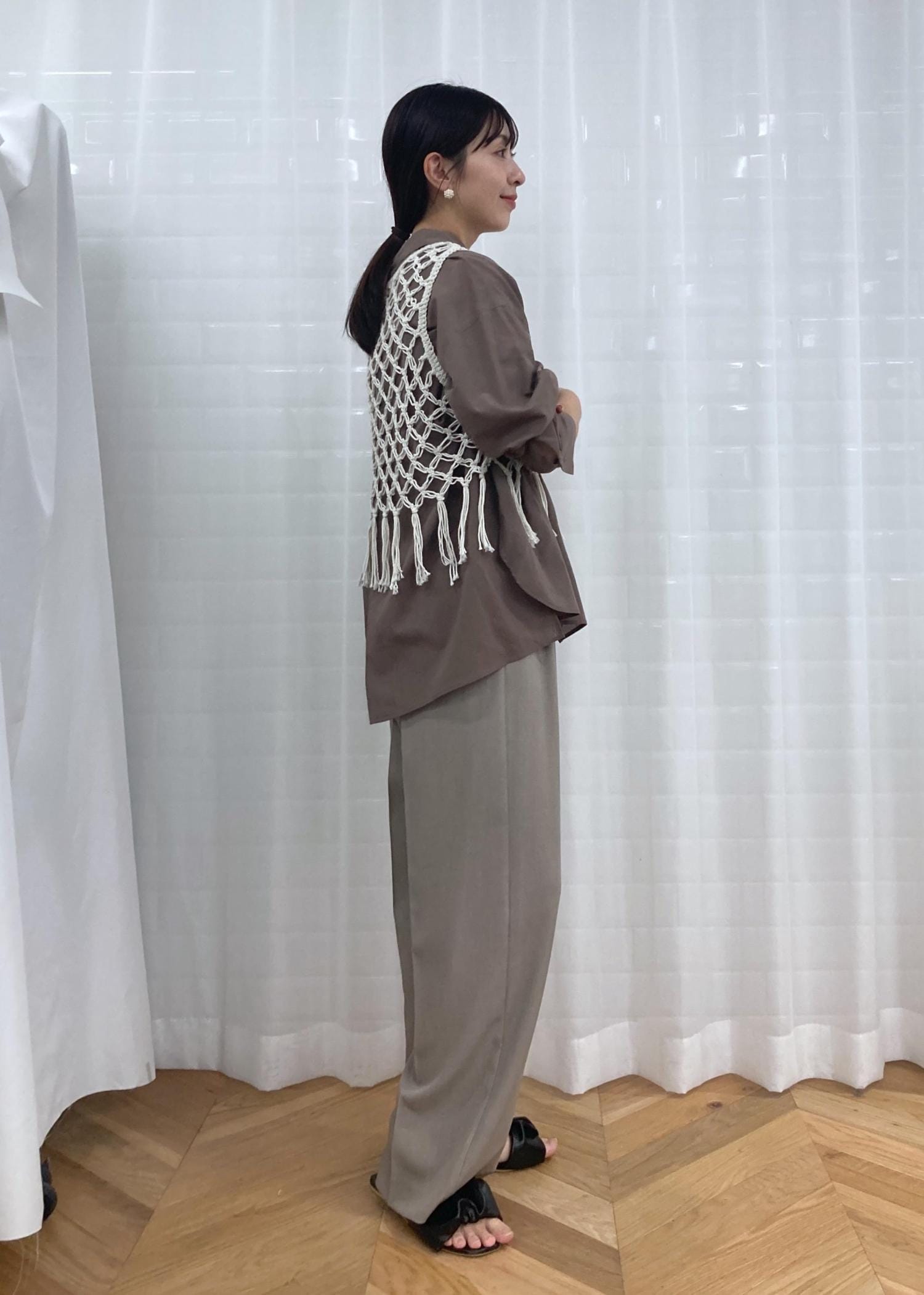 アウトレットROPÉ PICNIC【花粉ガード】クリアツイル2タックストレートパンツ/セレモニー・通勤対応・セットアップ対応キャメル系 / 38¥3,842レビューサラリと滑らかな質感で春夏らしさのある生地感です。タック入りなのでお腹・腰回りのカバー力も◎ストンと落ち感があるのでワイドパンツでもすっきり見えます。
