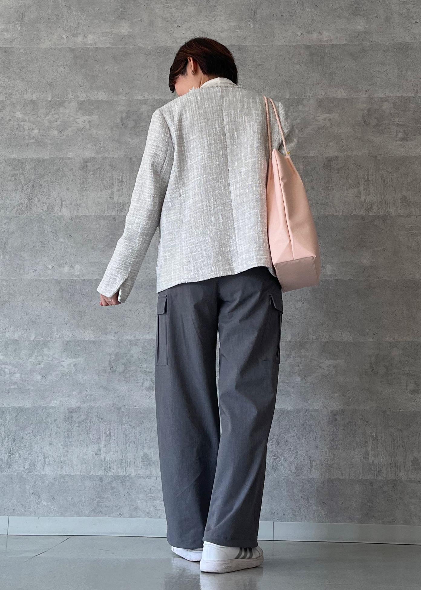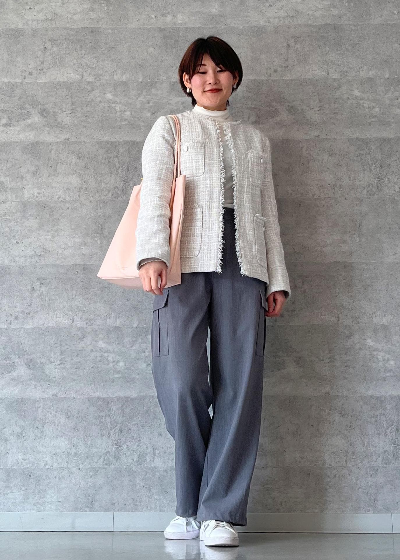 ツイードアイテムは華やかな印象がありますが、全体的にはグレーのワントーンコーデにスニーカーなので、華やかさが前に出過ぎず普段のお出かけコーデになったかなぁと☺︎
