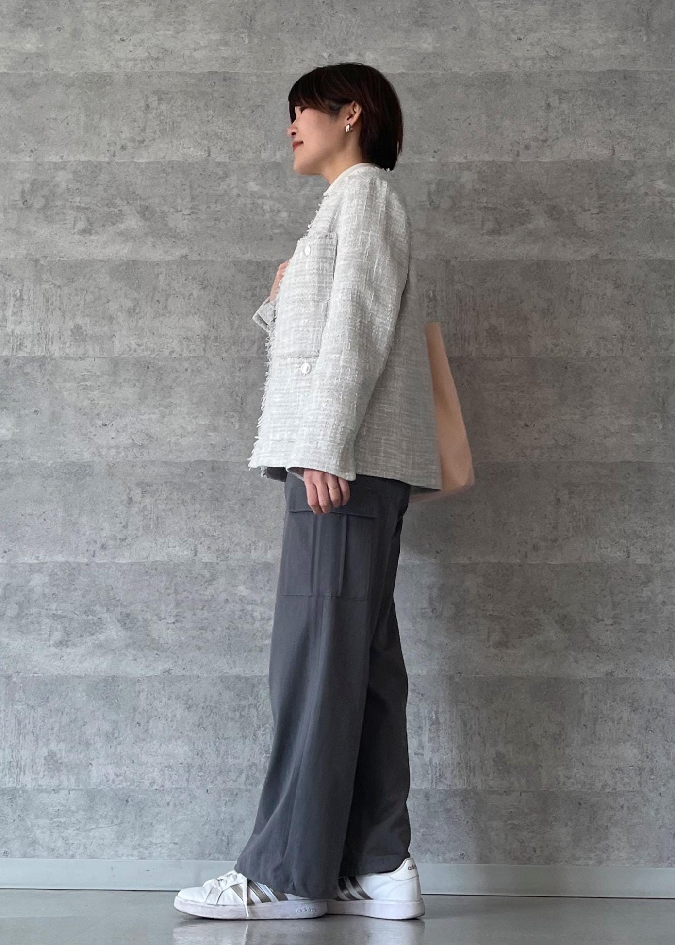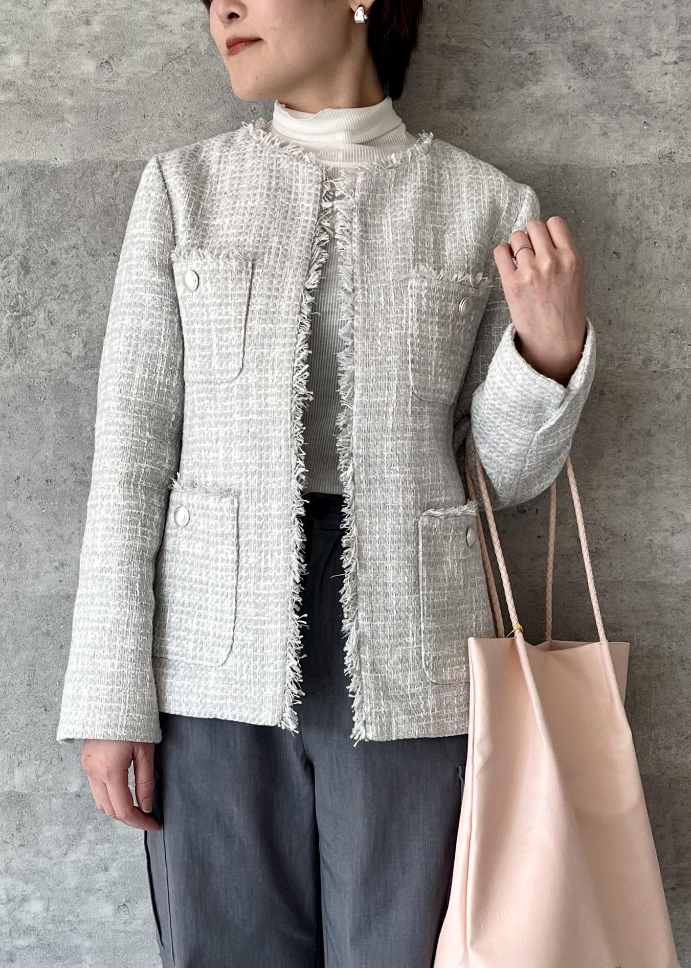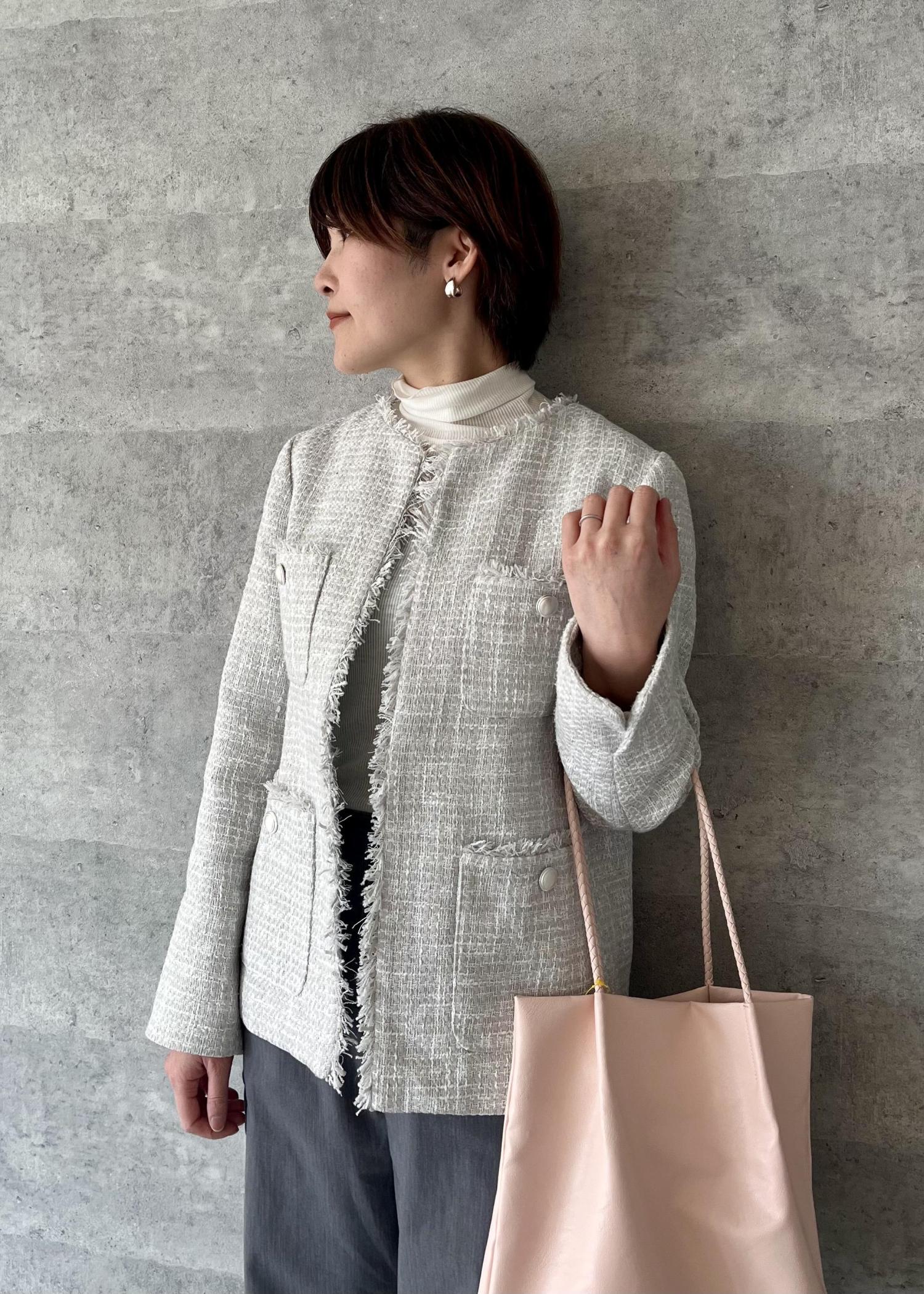 ツイードジャケットが主役のきれいめカジュアルコーデです⭐︎
