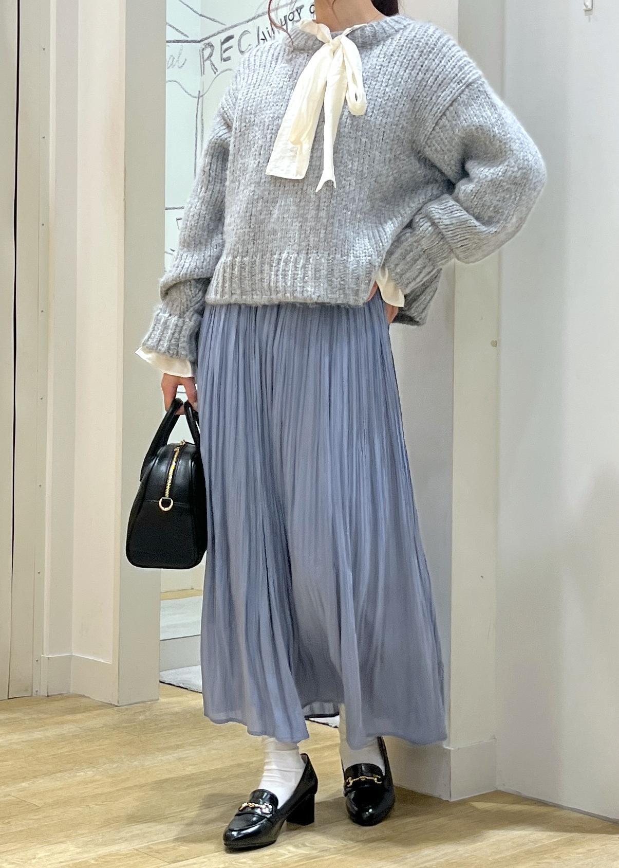 大ぶりのリボンブラウスと合わせるとコーデが一気に華やかに!
