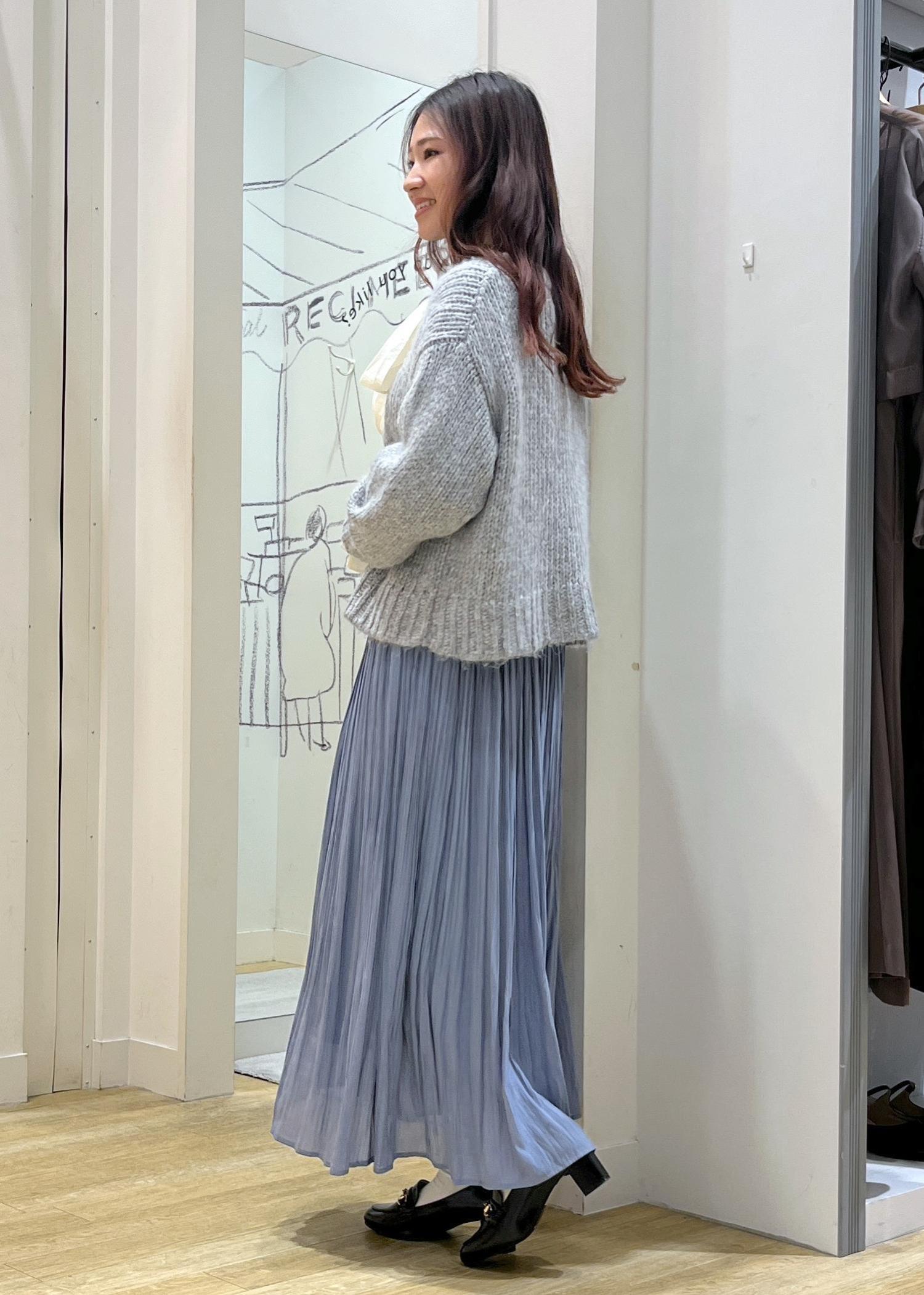 プリーツが細かいので、動きがあり、女性らしいデザインになっております。