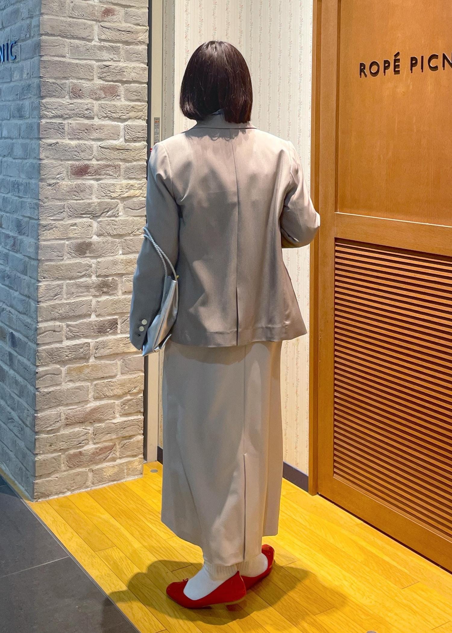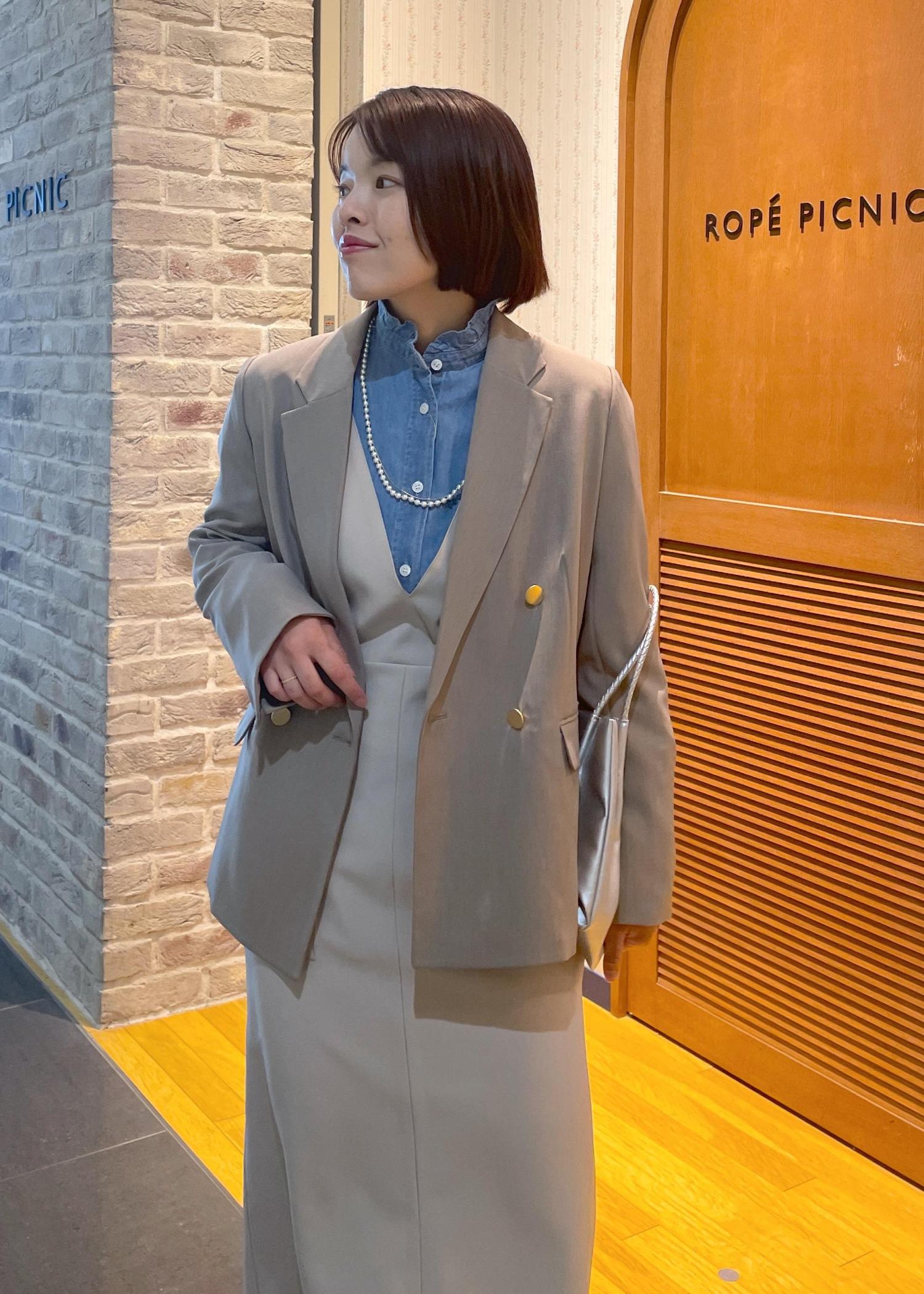 テーラードジャケットにきれい見えするジャンスカを合わせた、きちんと感あるスタイルです!