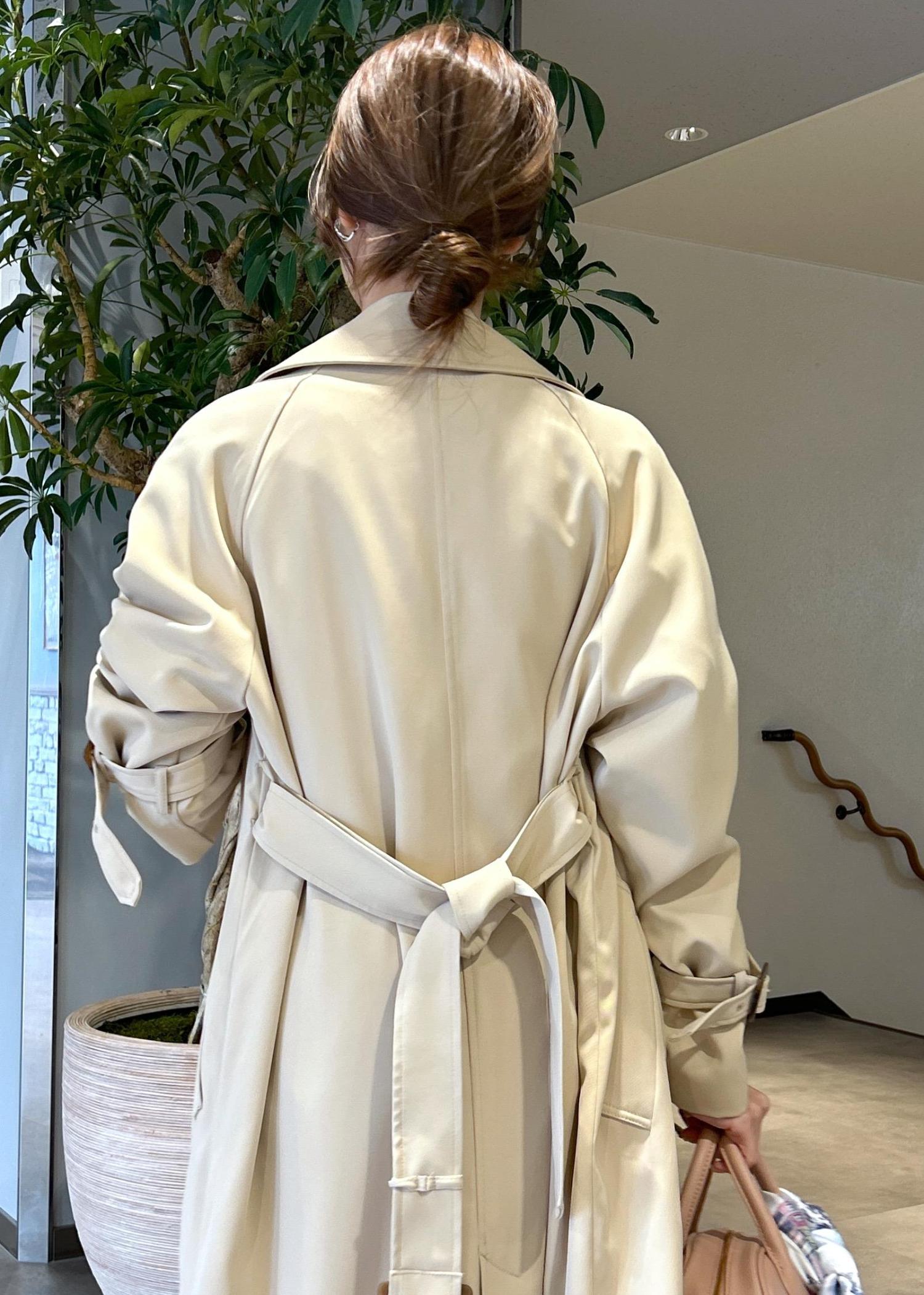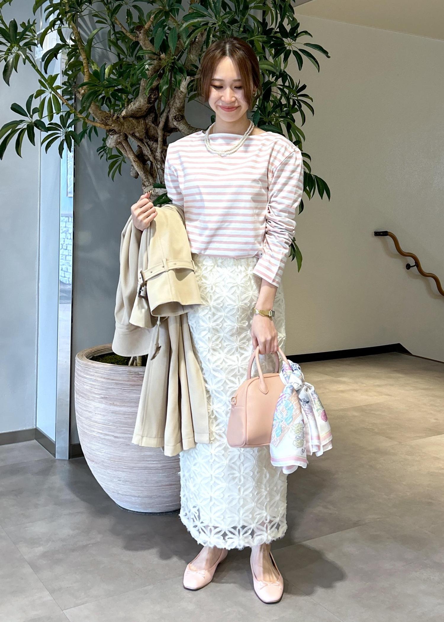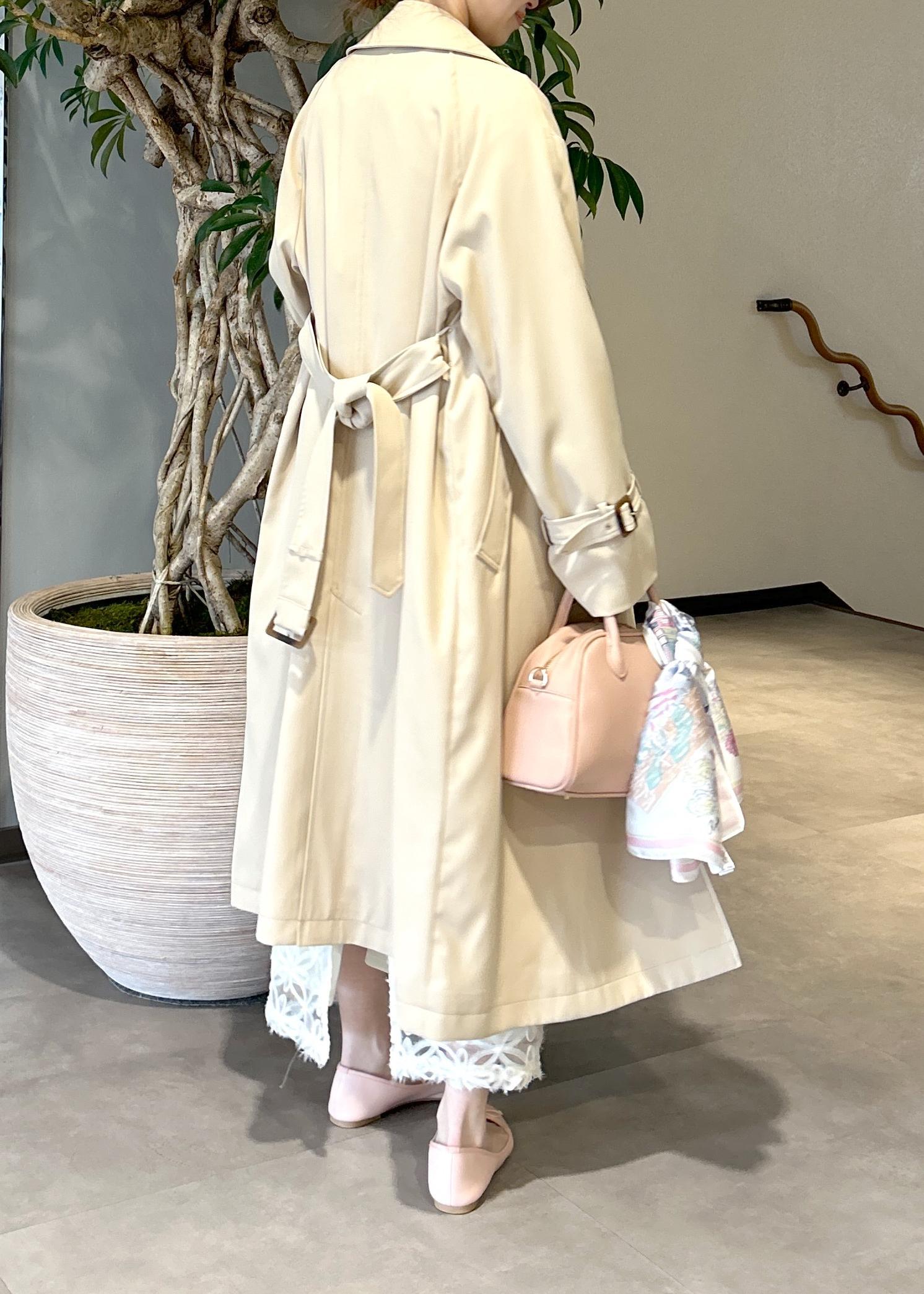 ベージュのトレンチコートに小物はピンクで春先取りなスタイリングにしました。