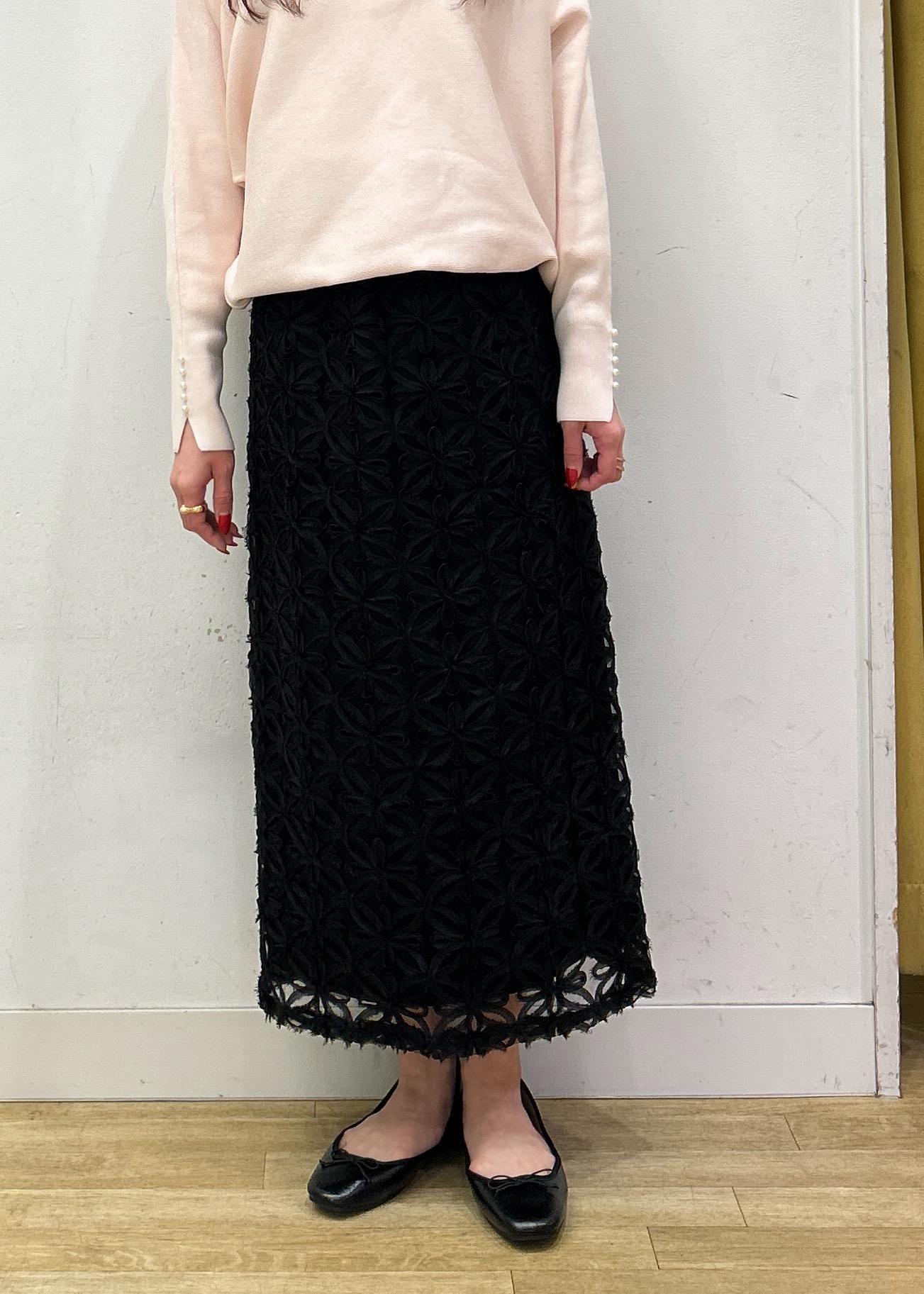 アウトレットROPÉ PICNICフラワーチュールレースアイラインスカートブラック / 36¥3,993レビュー長:156cm