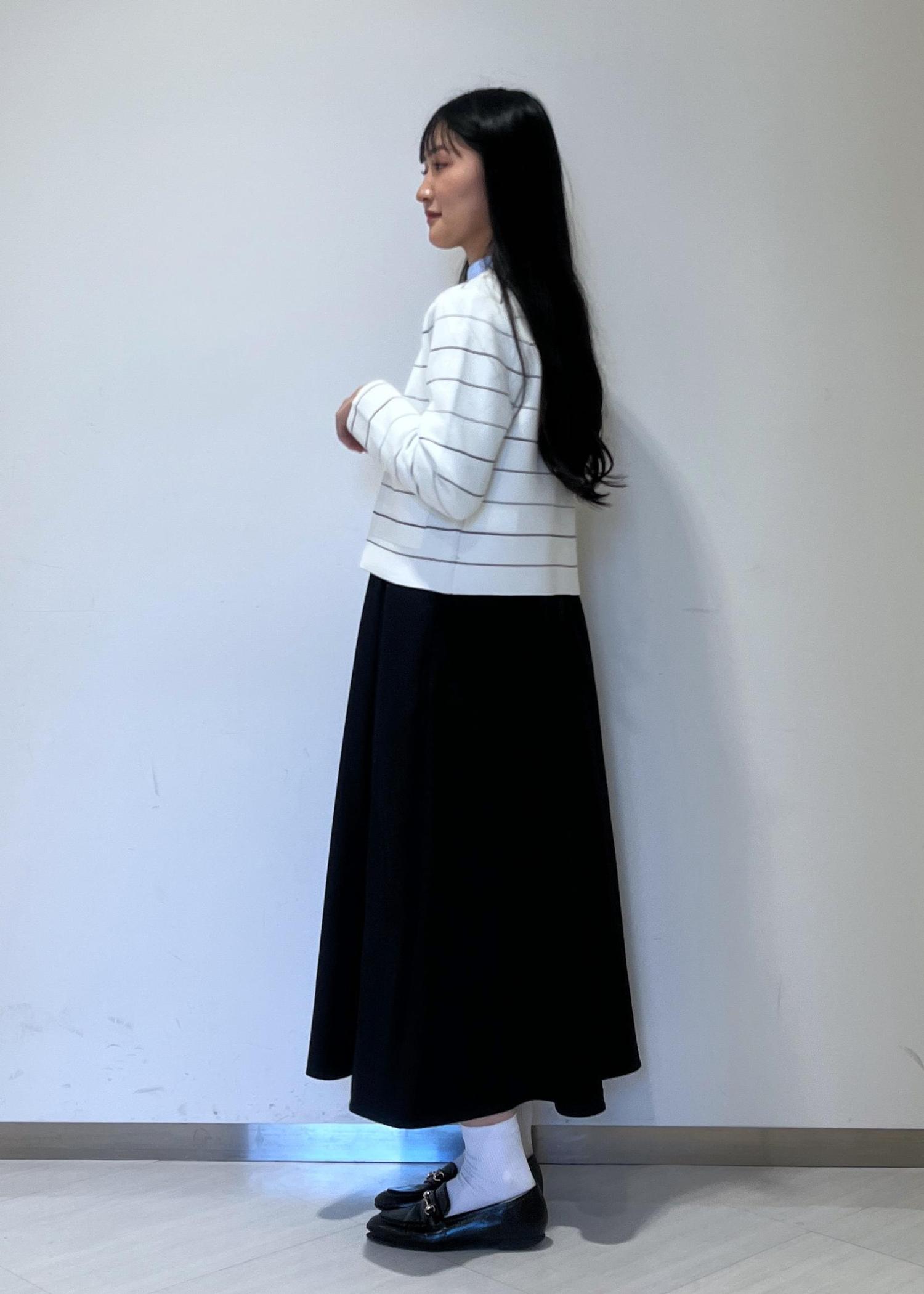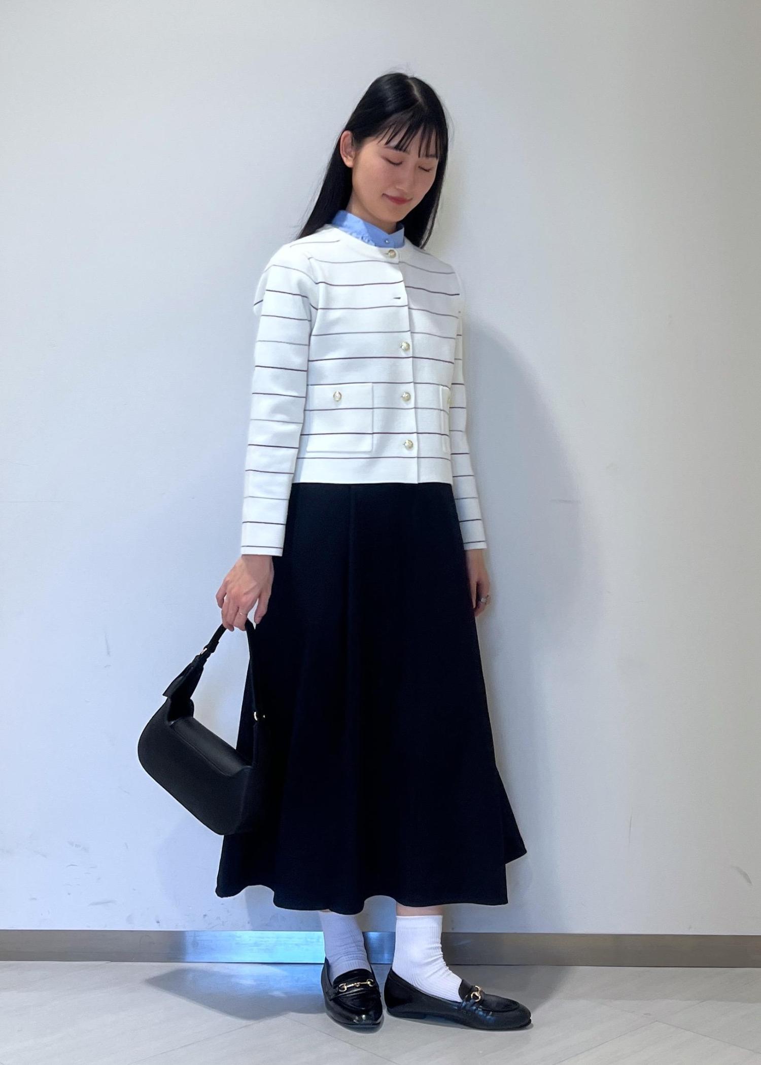 カーディガンの第二ボタンを留め忘れてしまいました。ご了承ください。