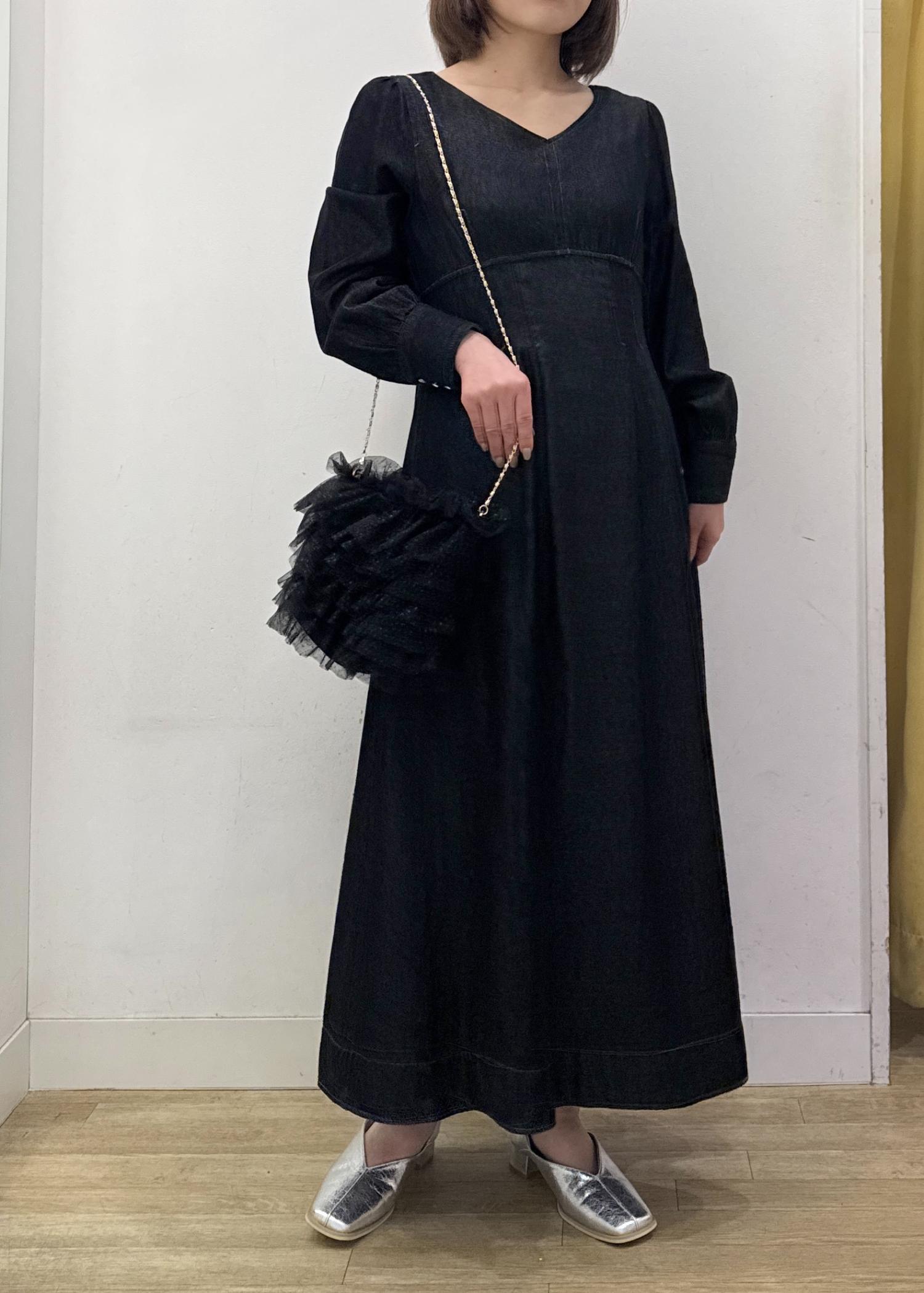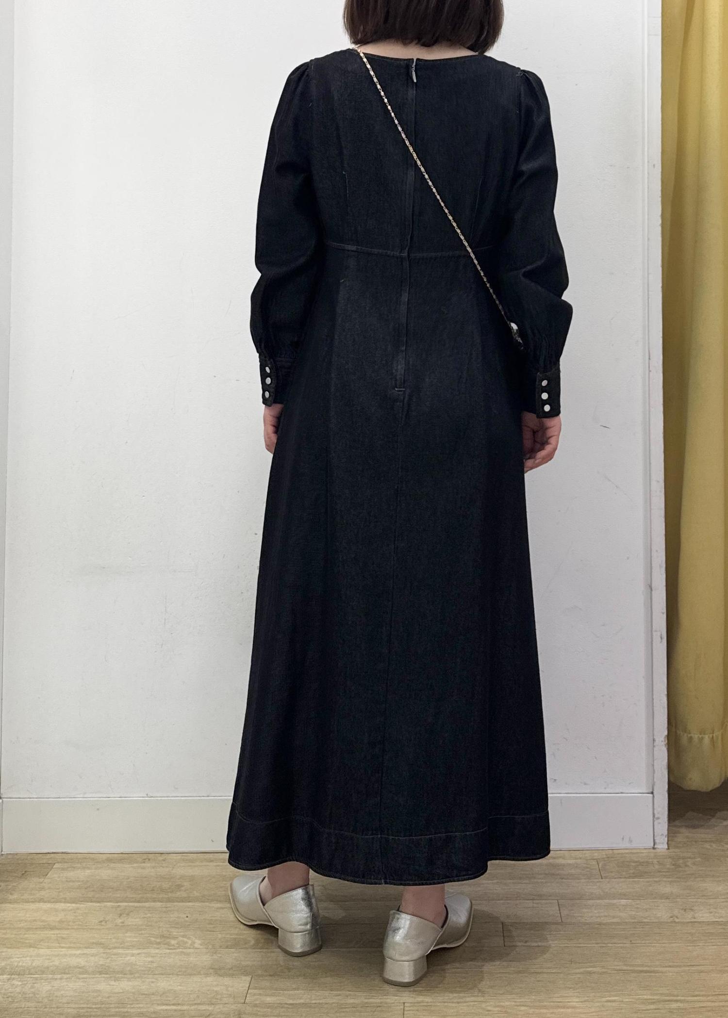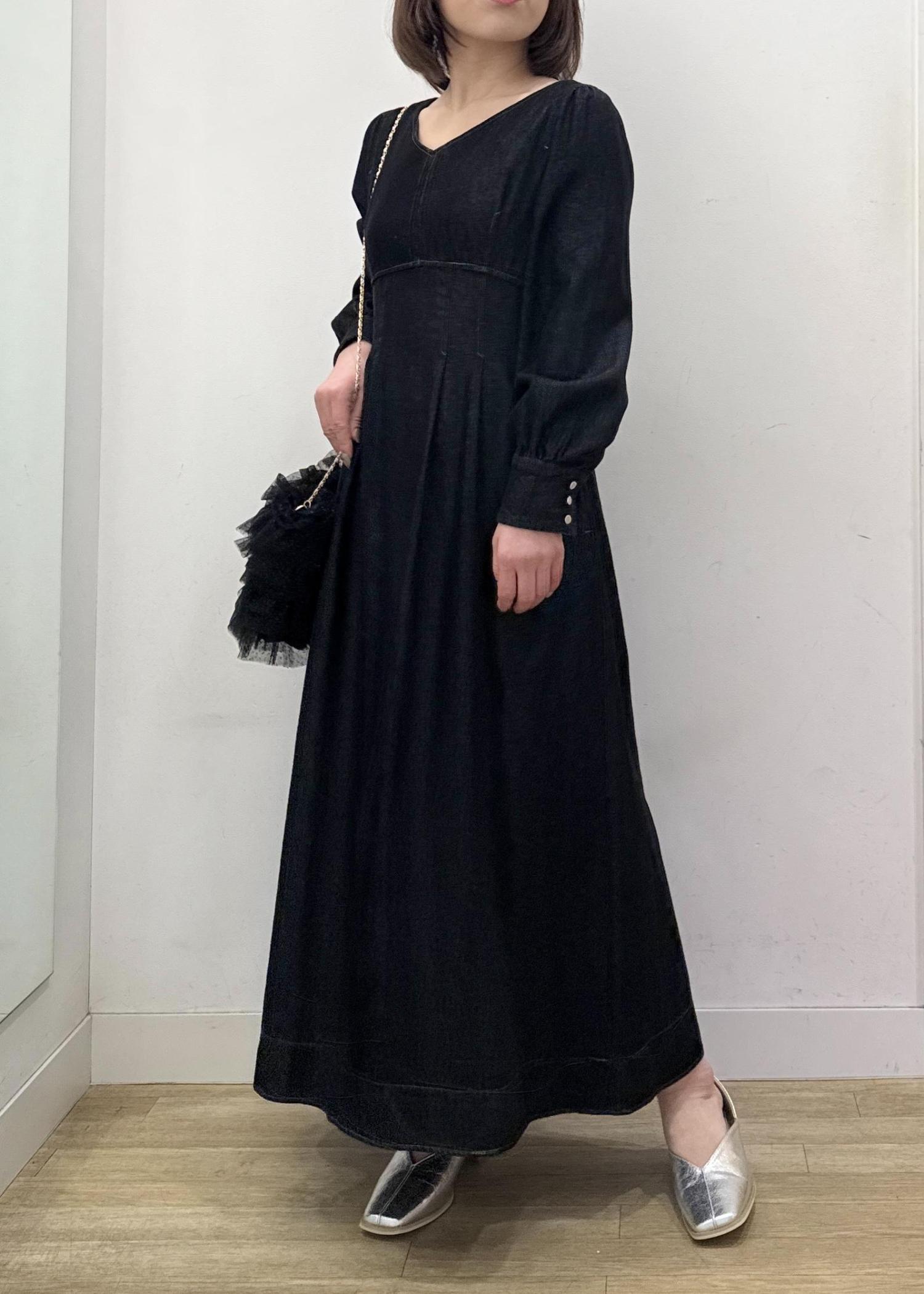 フィット&フレアのスッキリしたキレイなシルエットで着られるワンピースはデニム素材でカジュアルな中に女性らしさをプラスしたアイテム!