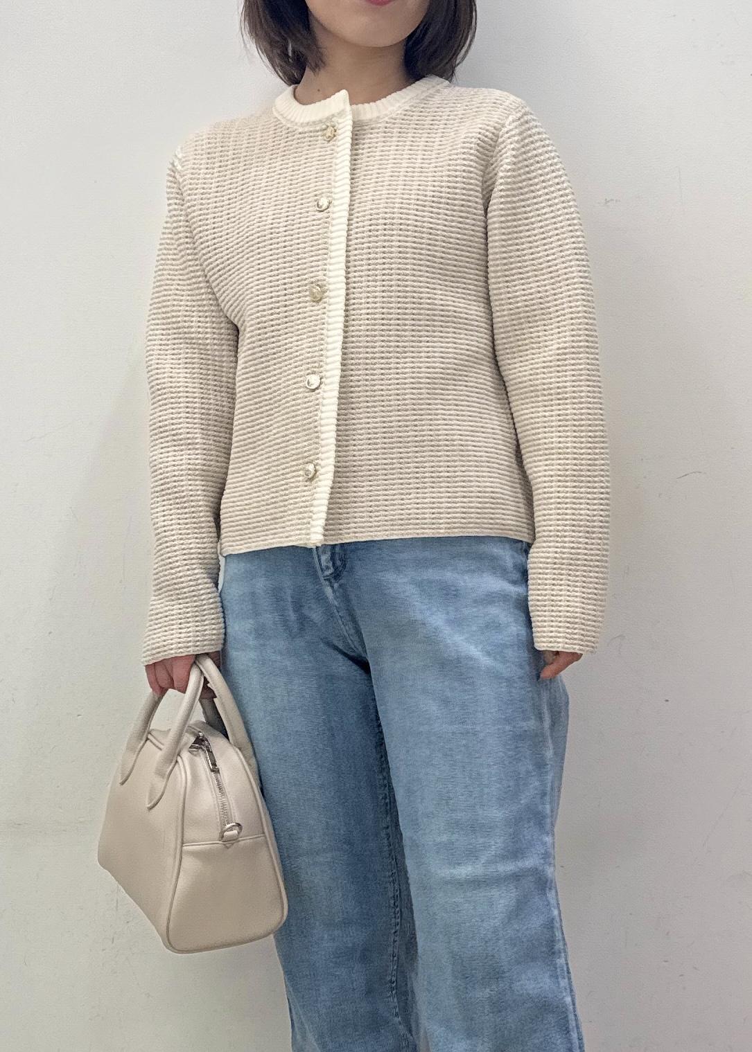 開けてカーディガンとしても、閉めてニットトップスとしても着られるオススメのアイテムです。 -