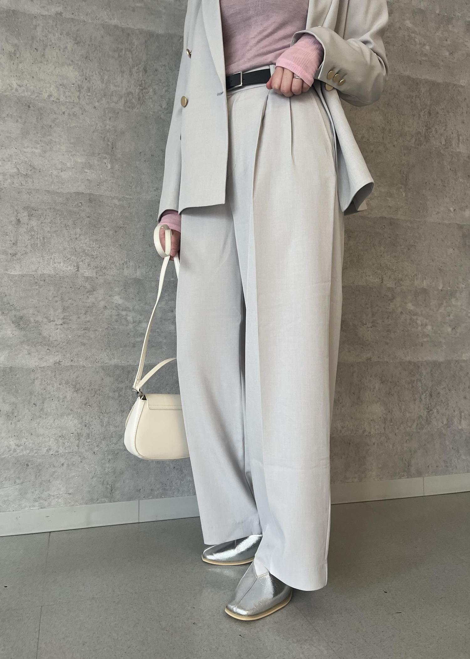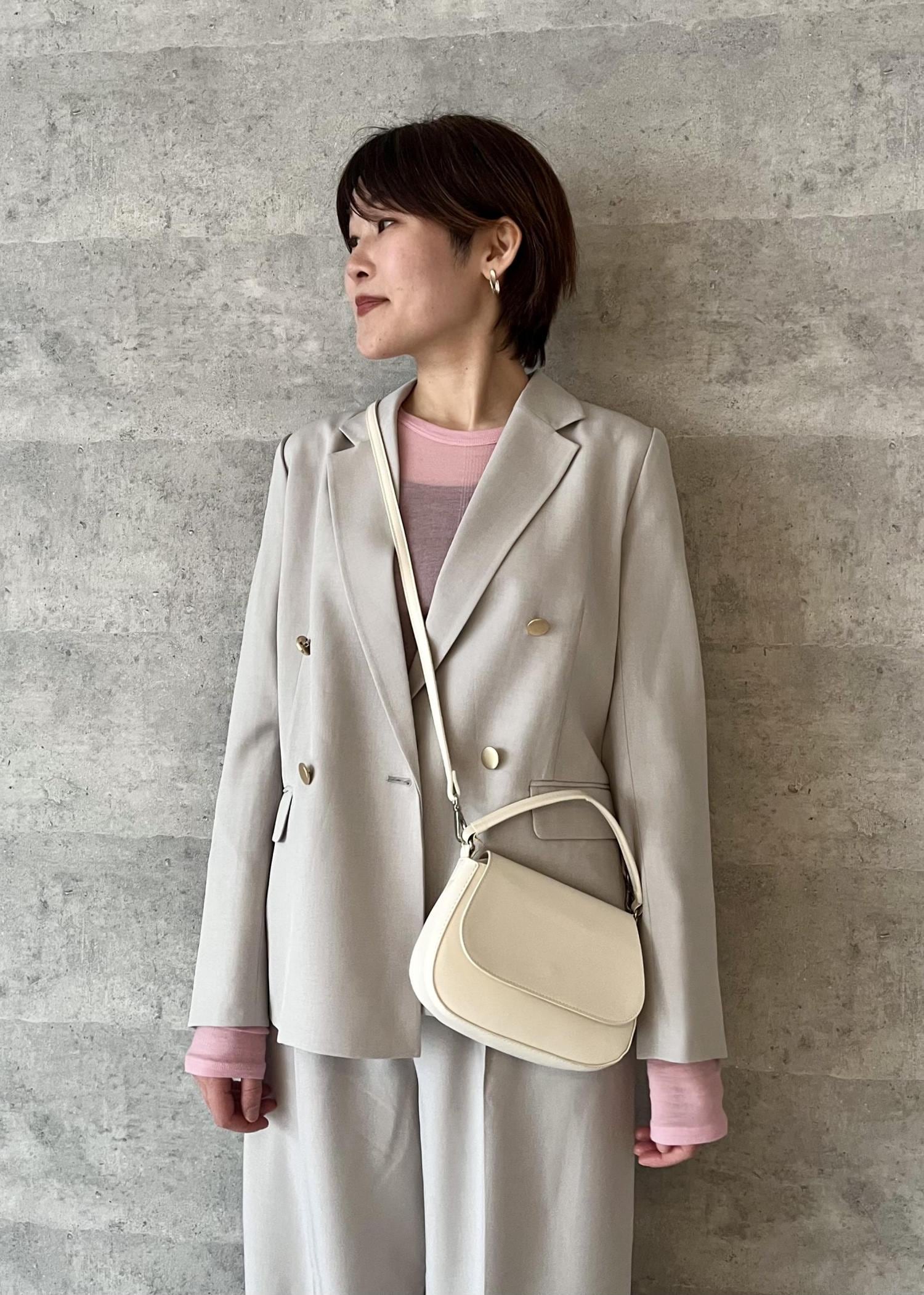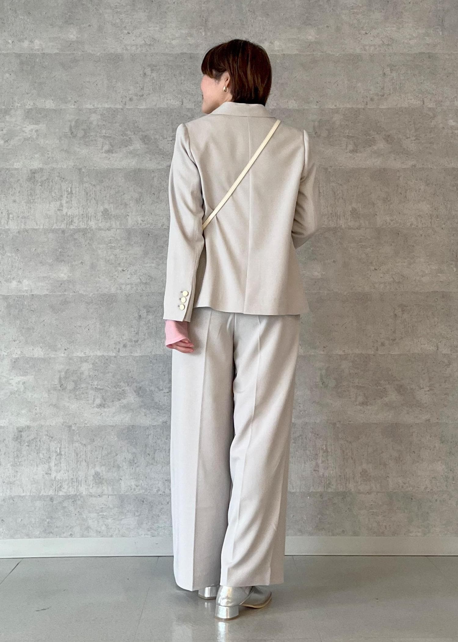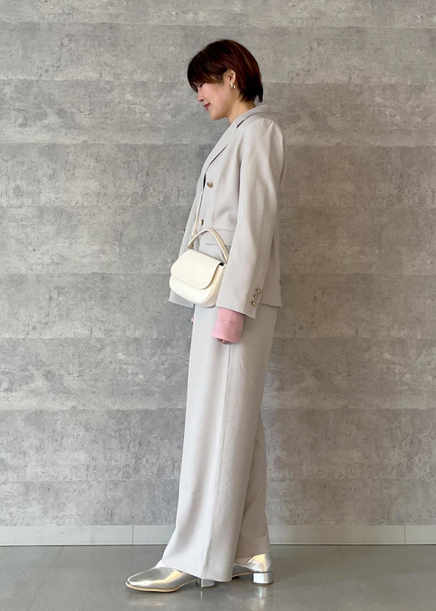 少し前にネイビーのセットアップで【ハレの日コーデ】を投稿していたので、今回はライトグレーのセットアップで普段のお出かけコーデに!