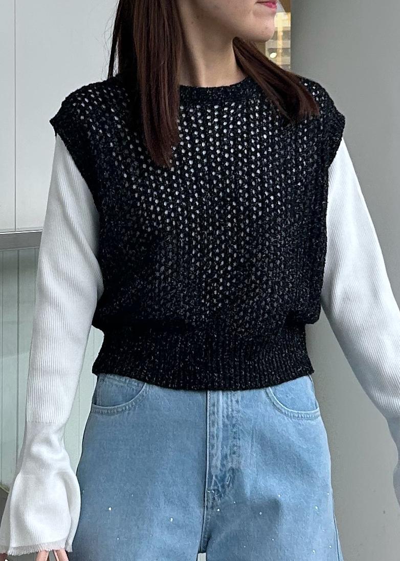 アウトレットROPÉ PICNIC透かし編みラメニットベストブラック / F¥3,194レビューラメ感のある華やかな透かし編みニットベストです。
