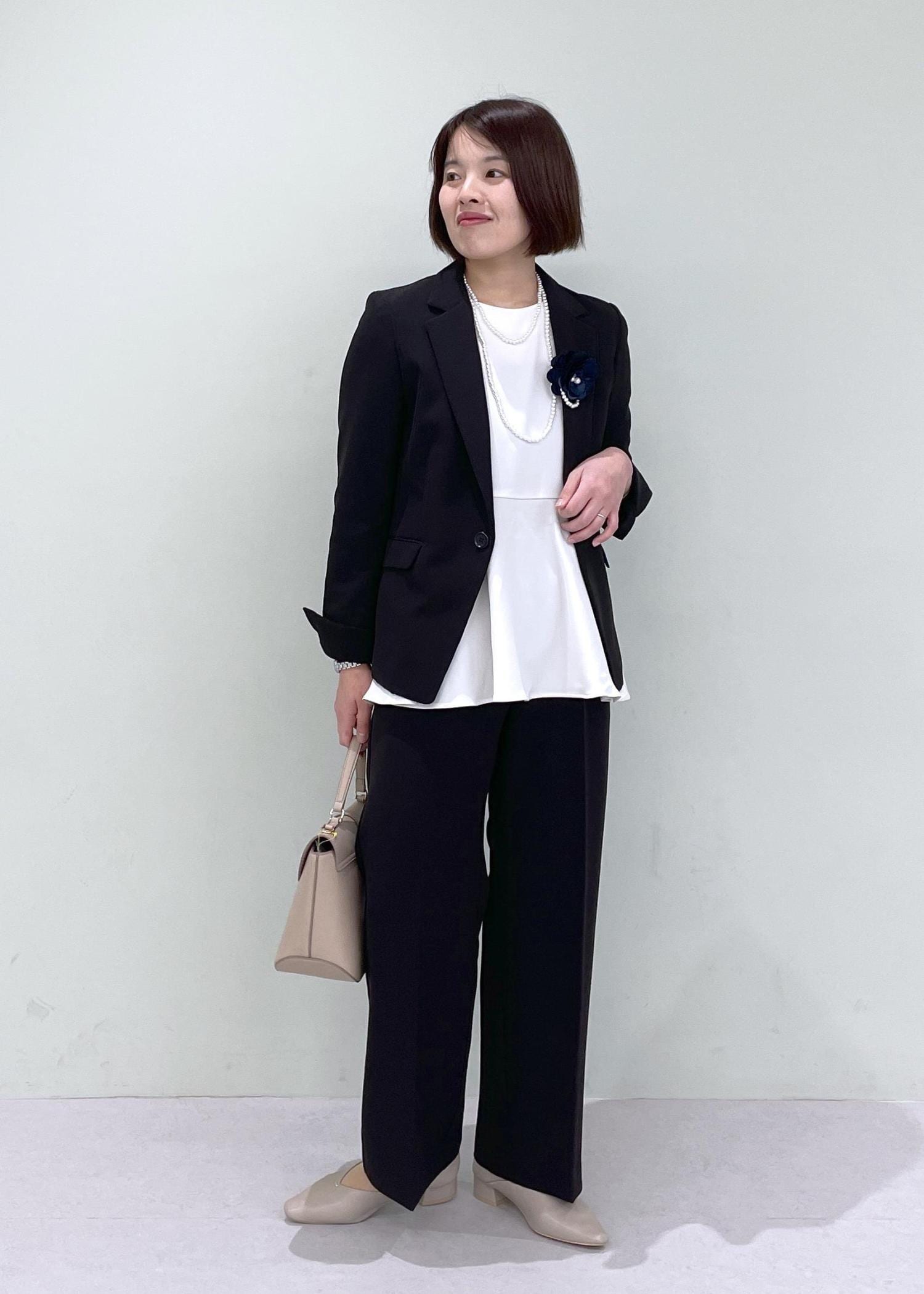 裾のふわっとしたペプラムデザインが、お洒落見えしつつ体型カバーも叶えてくれるブラウスを使ったセレモニーコーデです!