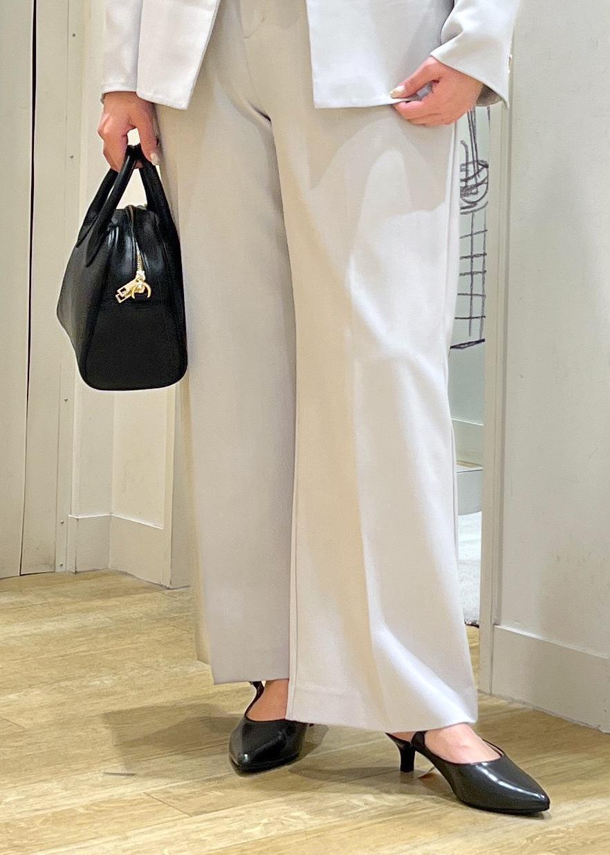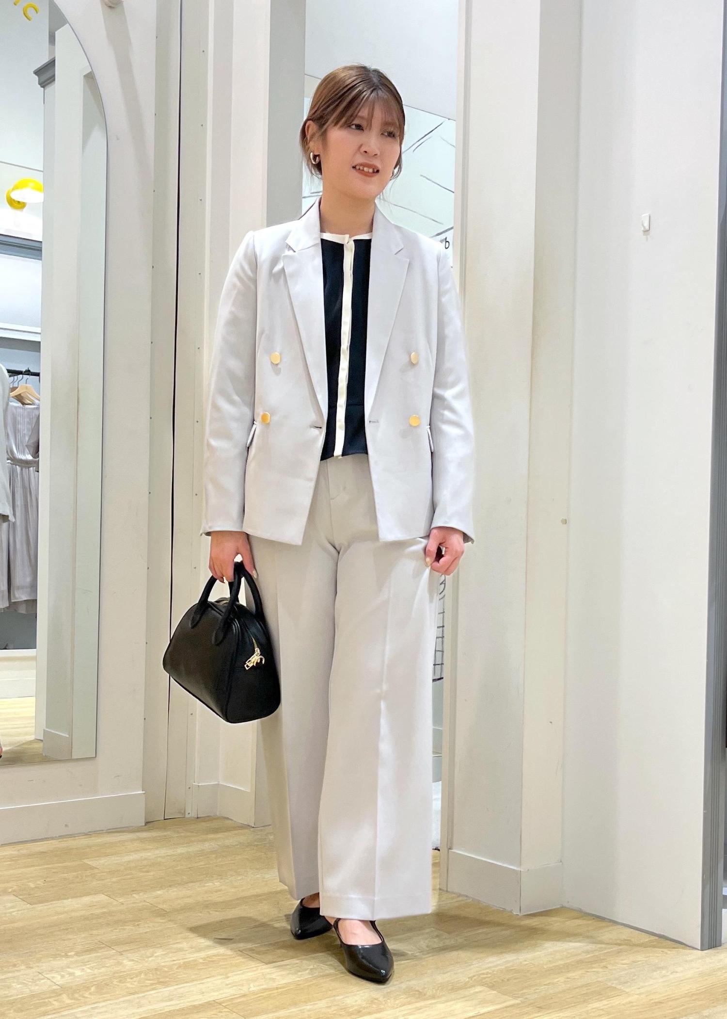 クリアツイルセットアップにインせず着れる人気のブラウスを合わせてコーディネートしました。