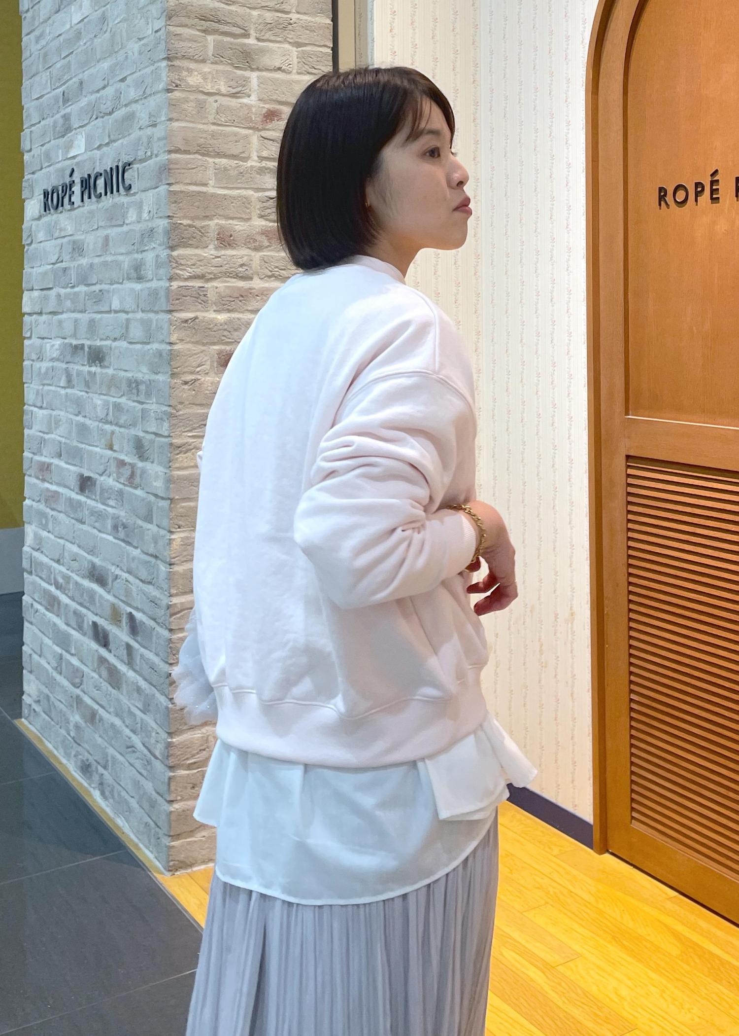 スウェットの下にはシャツをレイヤードして、大人っぽく少しかっちり感もプラスしました◎