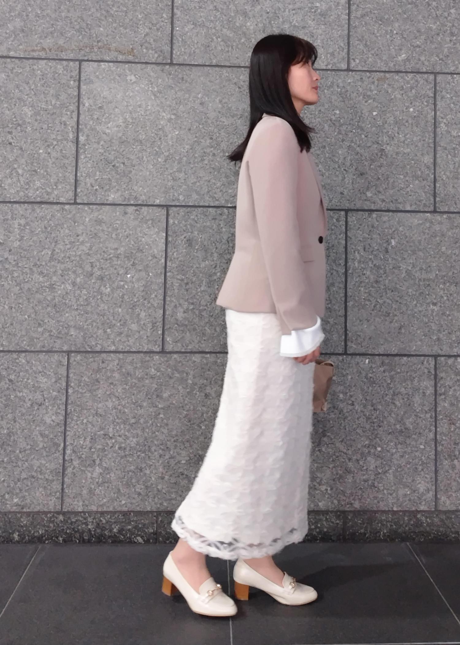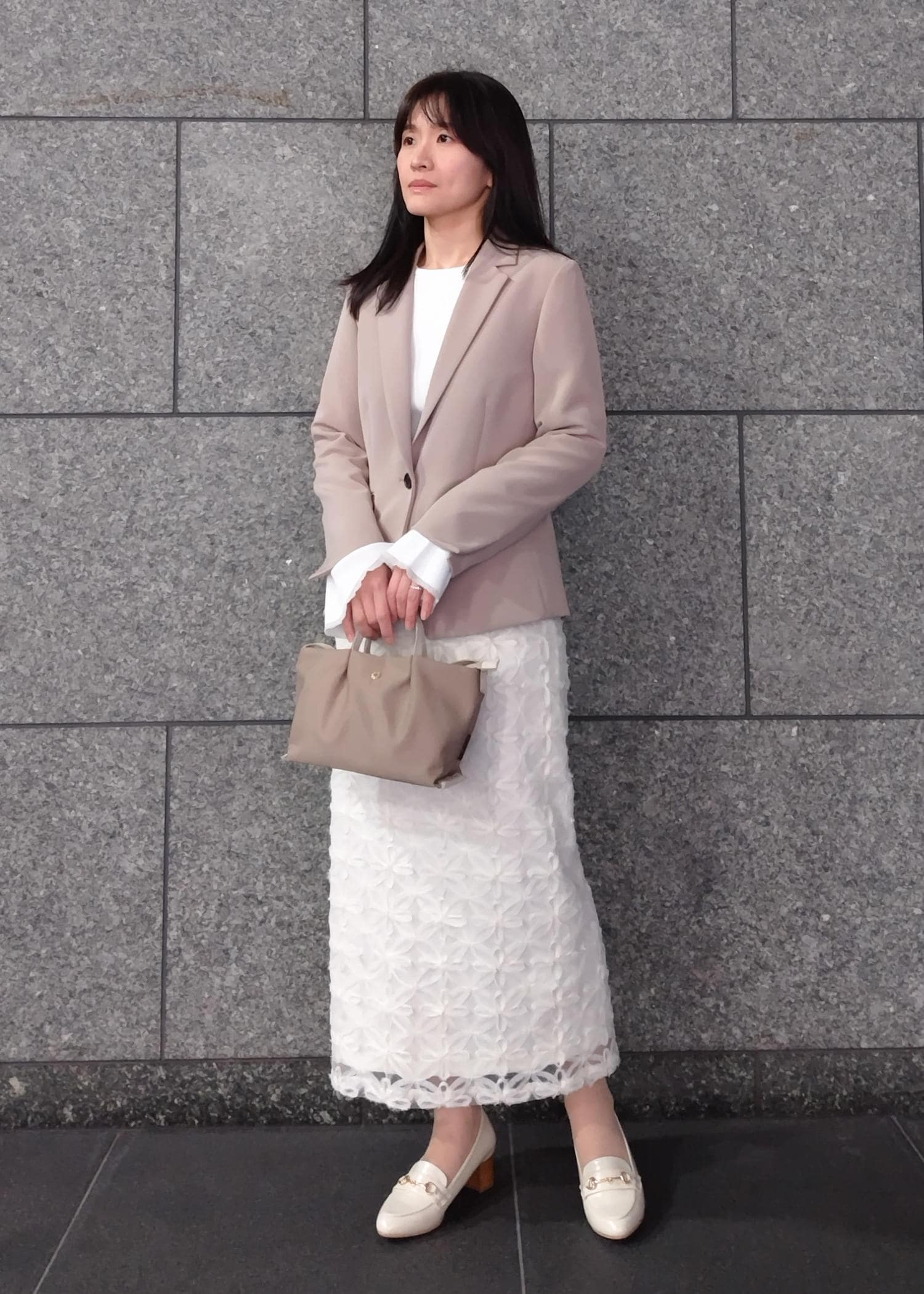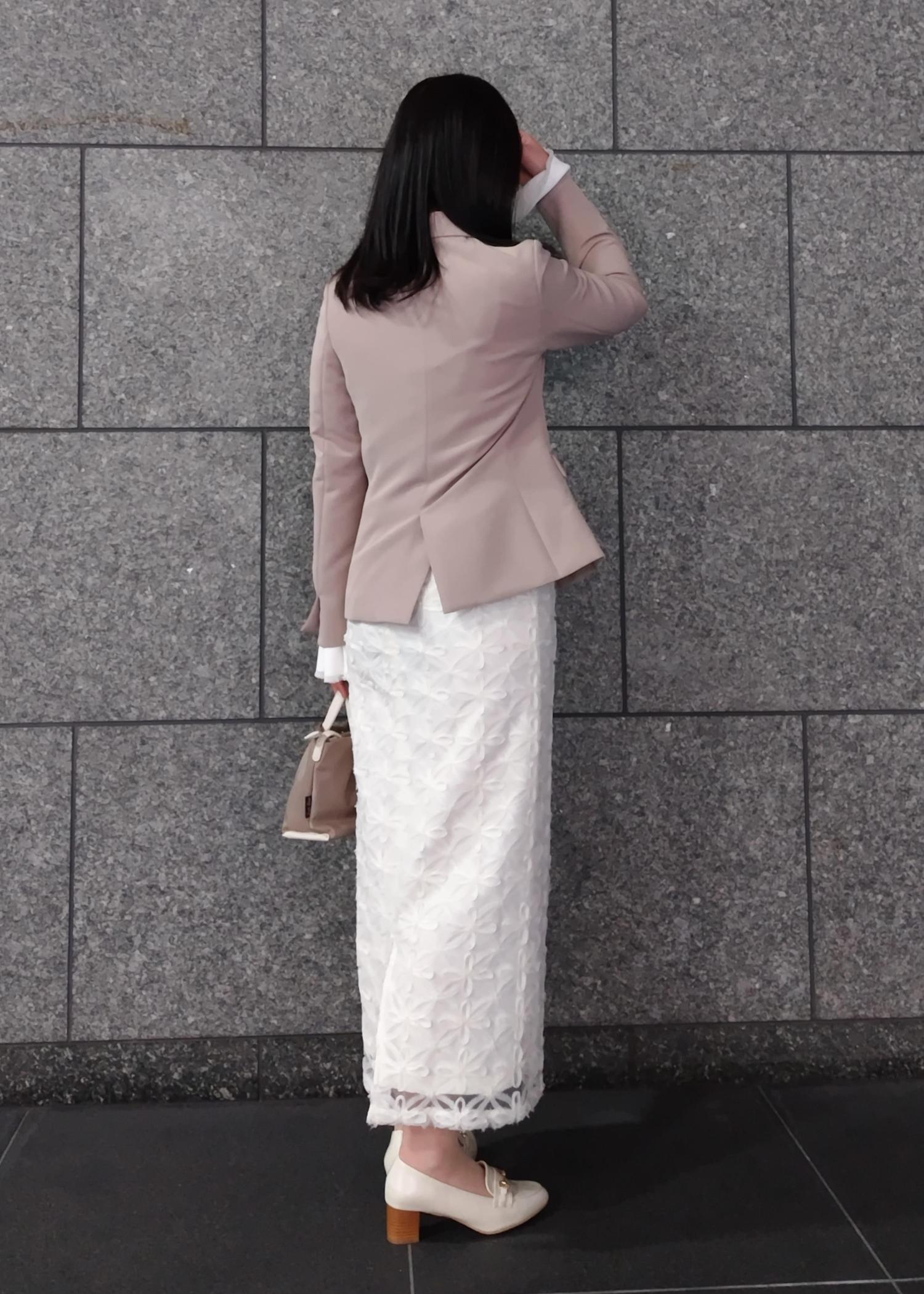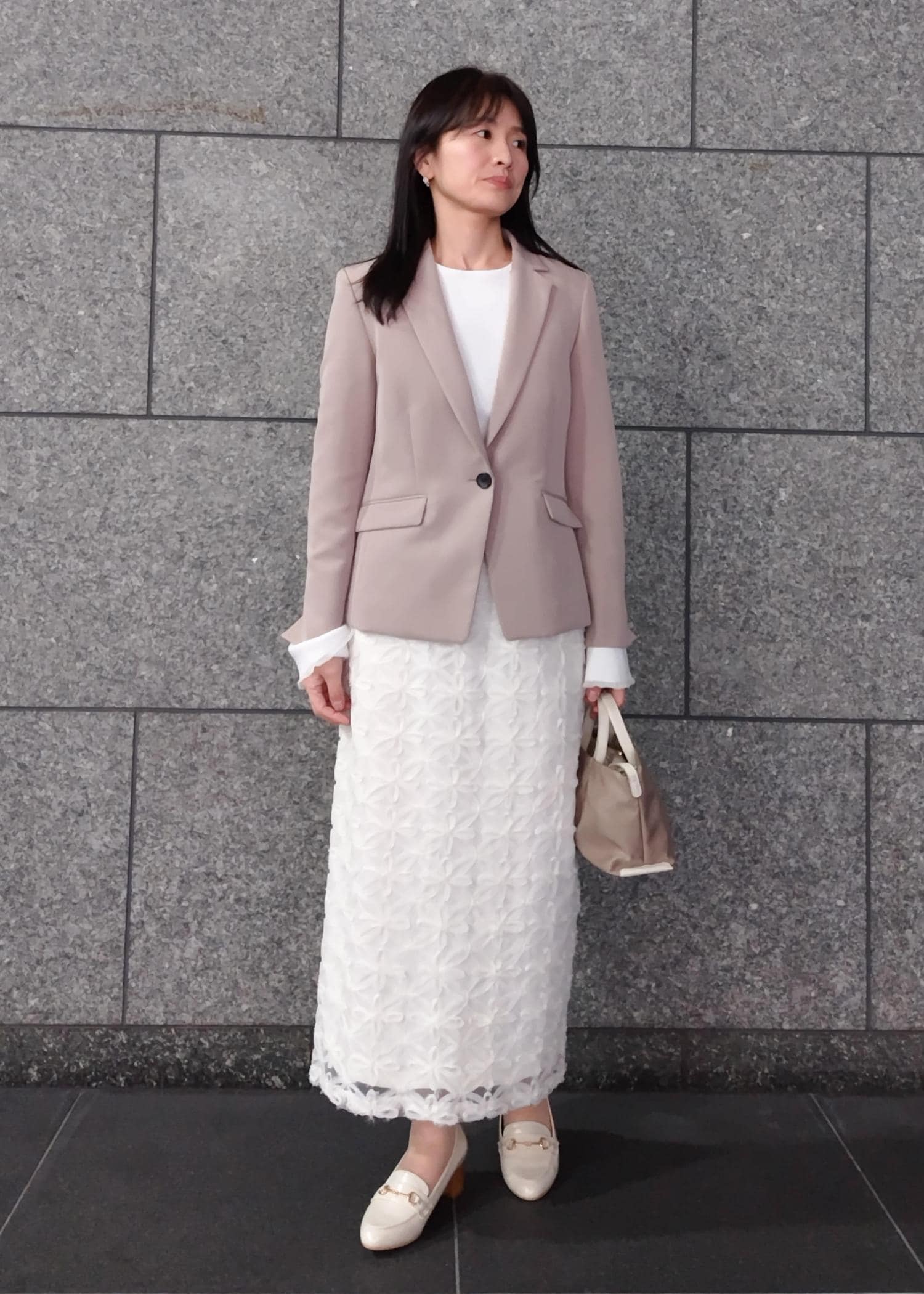 デザインのあるスカートもちゃんとジャケットを羽織ればお仕事やセミフォーマルにも対応できます!