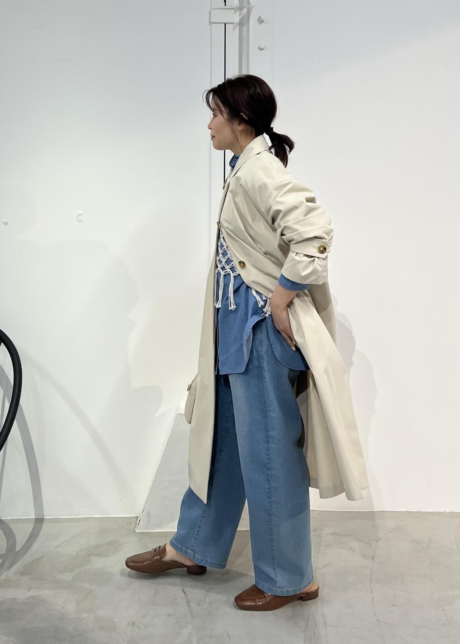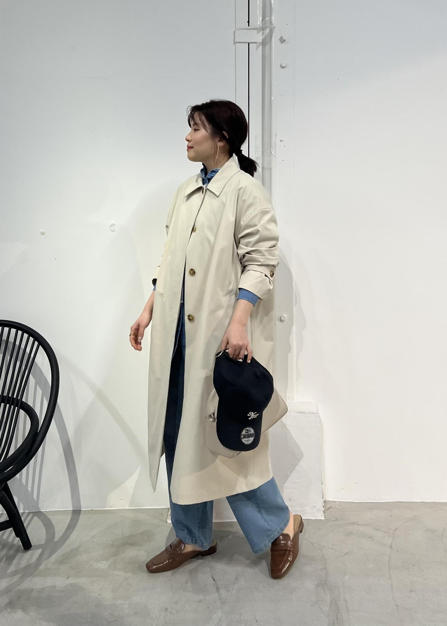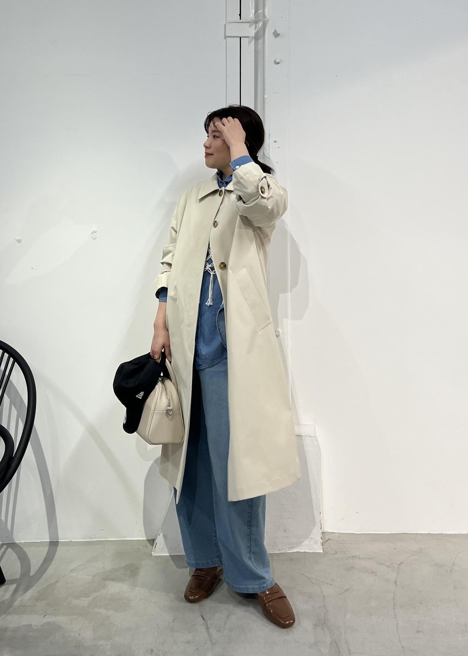 ステンカラーコート×デニムの大人カジュアルコーデ