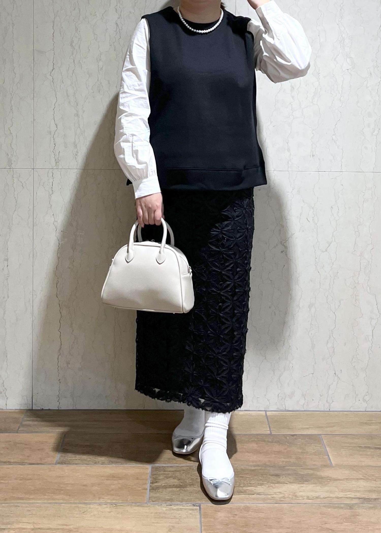中がブラックなのでバッグと足元は明るくしました!