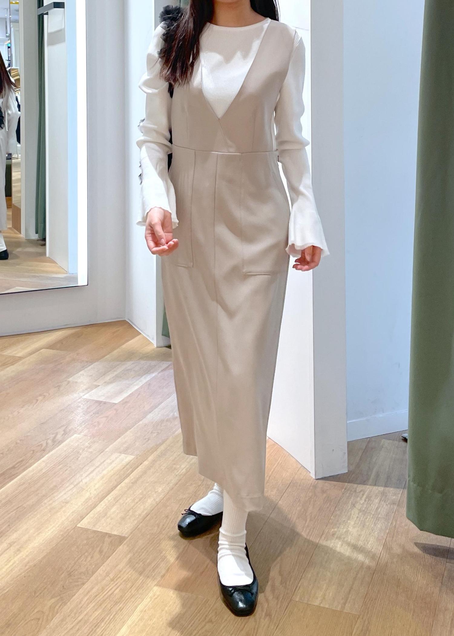 ROPÉ PICNICデザインポケットジャンパースカートベージュ / 36¥6,490レビュー合わせるインナーによってロングシーズンお使い頂けます。