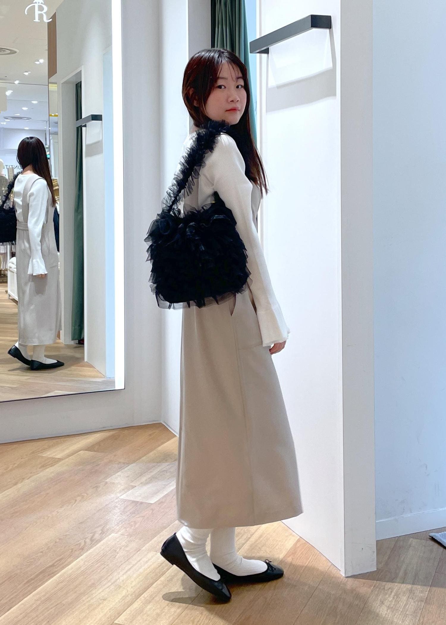 アウトレットROPÉ PICNIC PASSAGEシアーフリルワンハンドルバッグブラック / F¥1,980レビューチュールのフリルがたくさん使われていて持っているだけで存在感のあるバッグです。