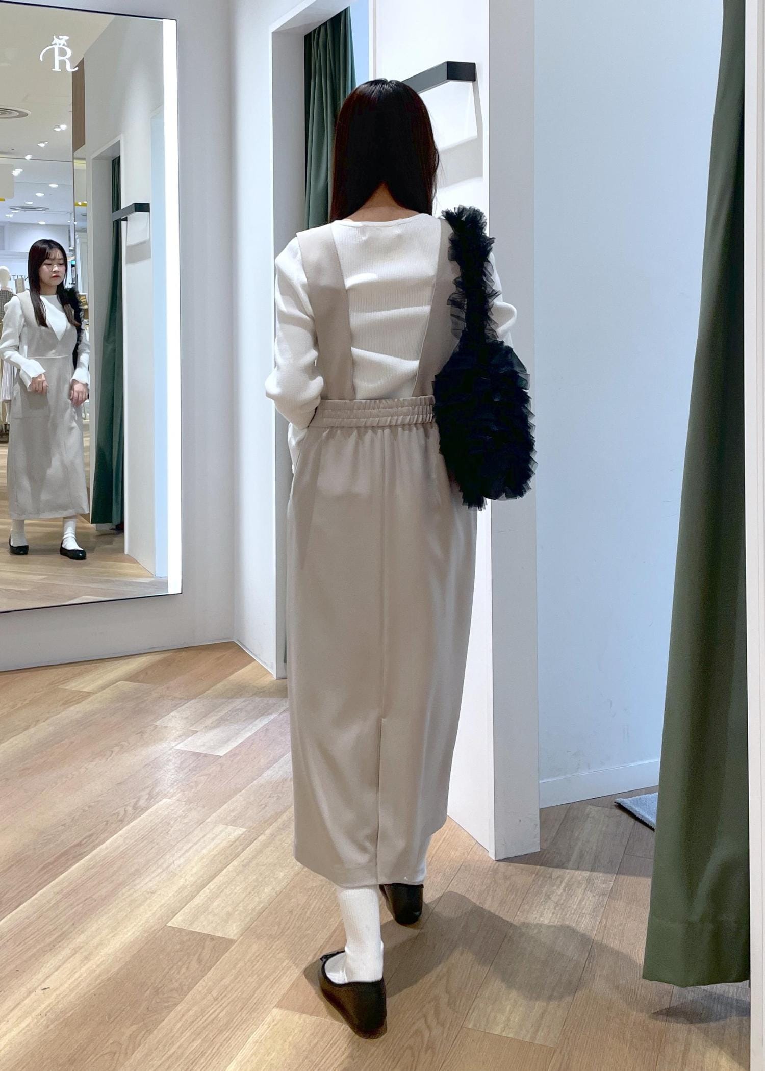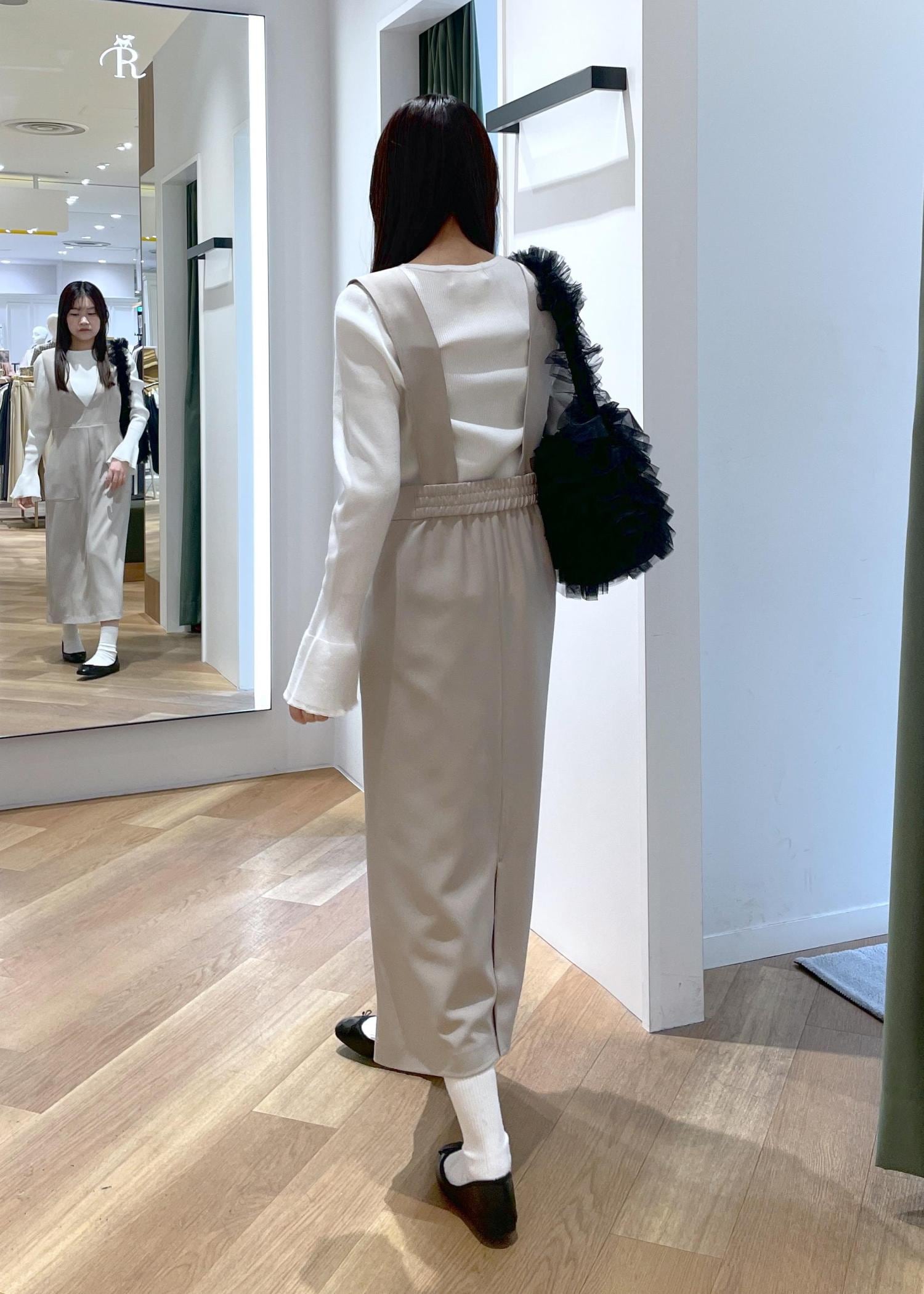 スカートの部分は綺麗なIラインシルエットなので、下半身をスッキリ見せてくれます。 -