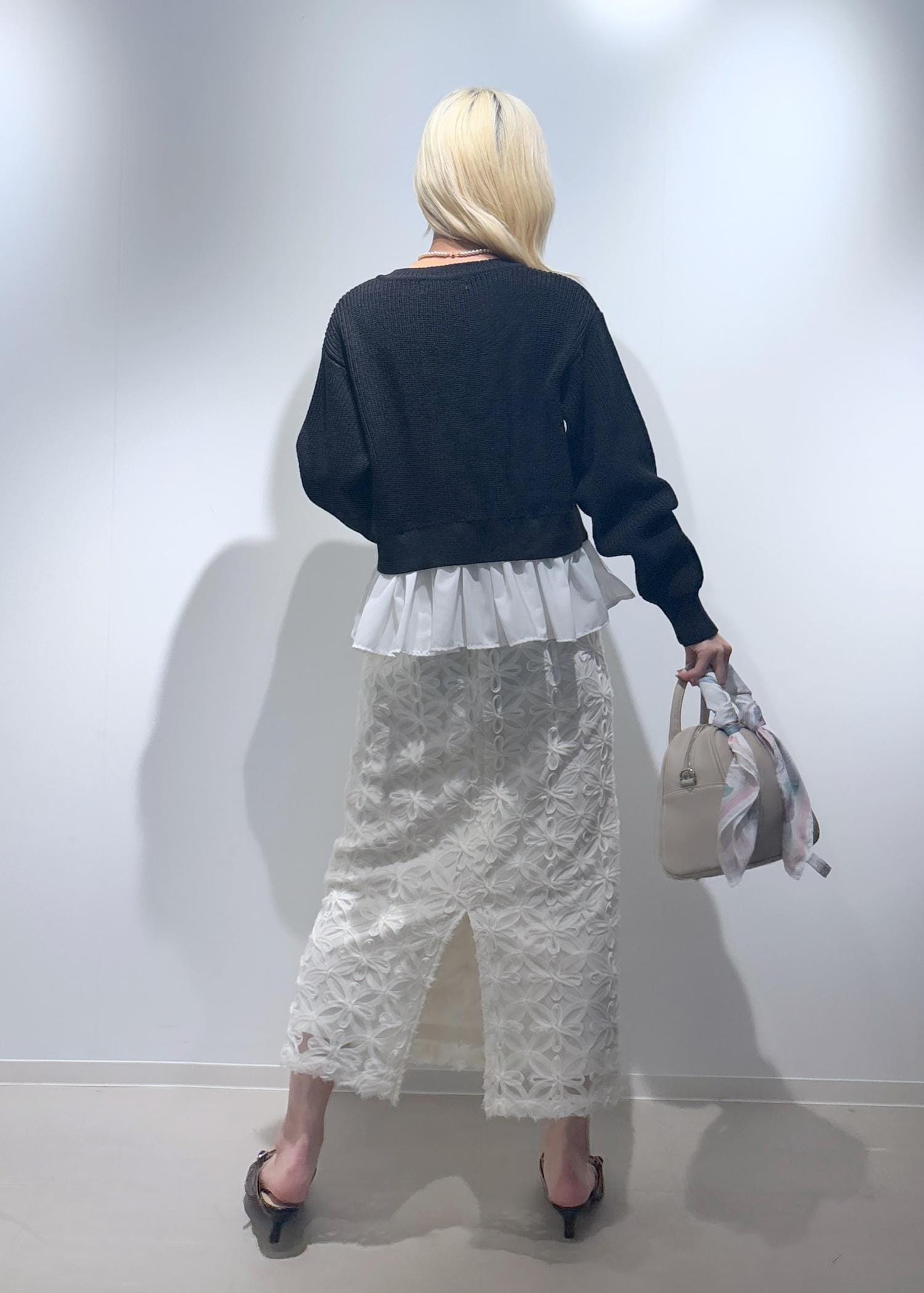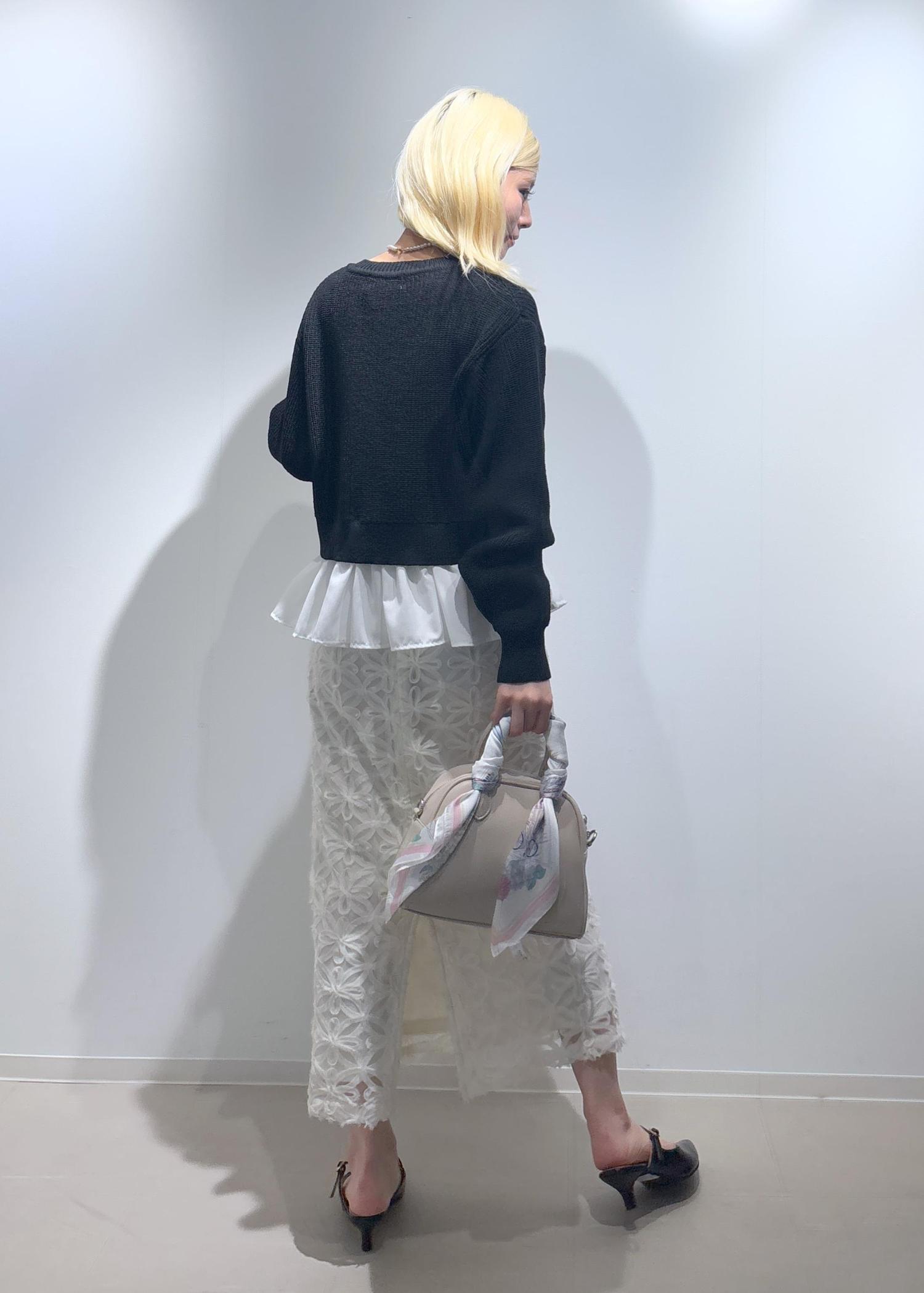 タイトシルエットですが、後ろにスリットが入っており足さばきもよく綺麗めな印象で着ていただけます。 -
