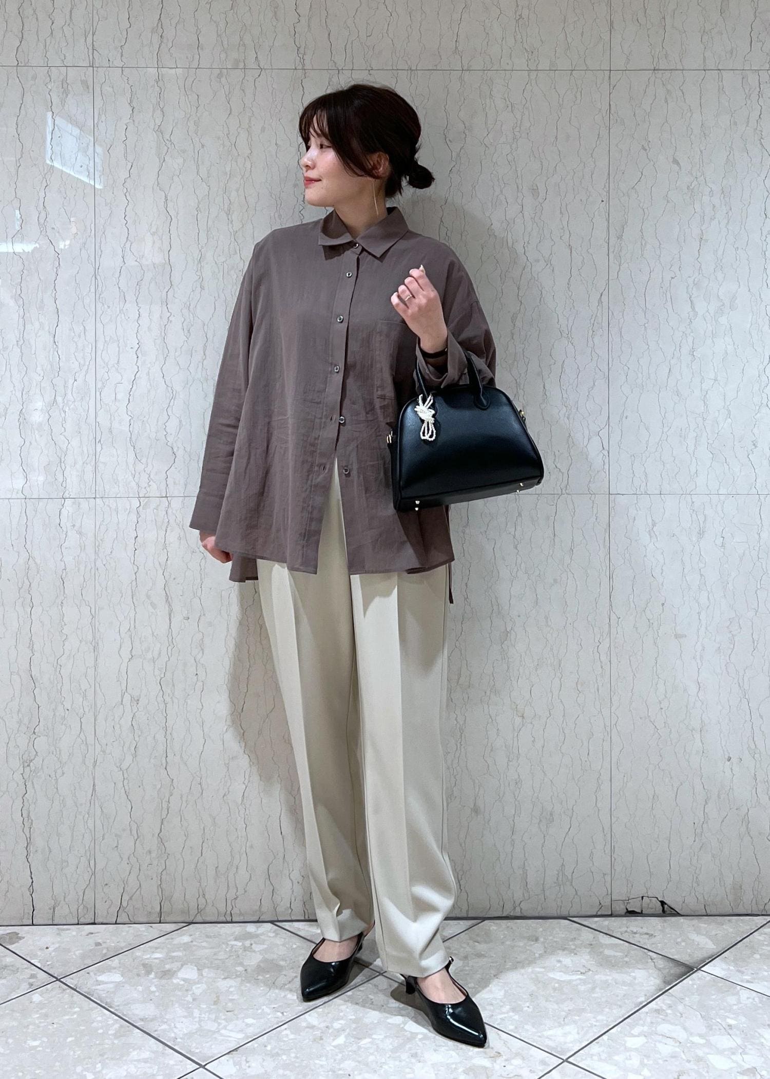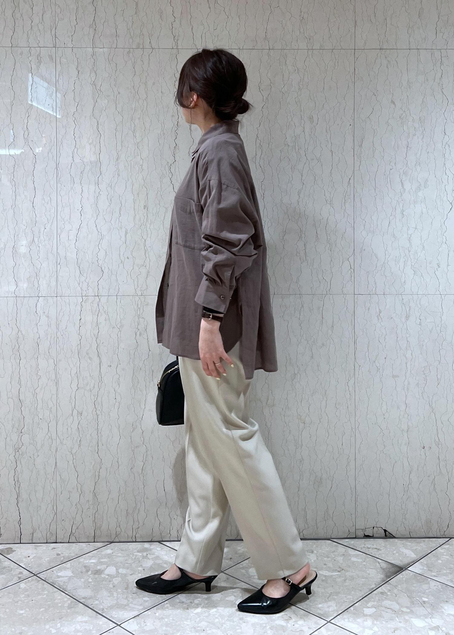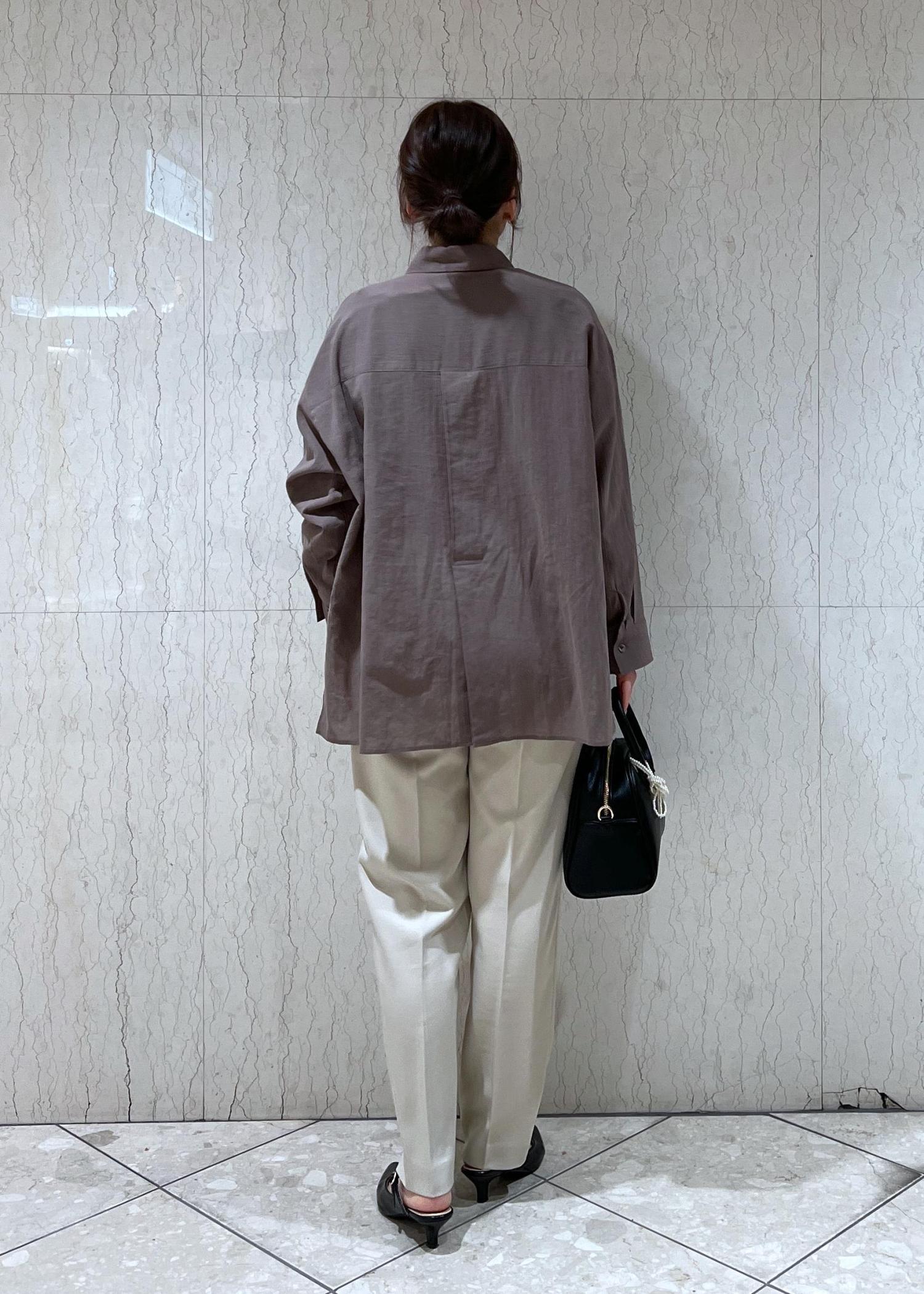 今年春夏からトレンドのブラウンカラーのシャツをポイントに