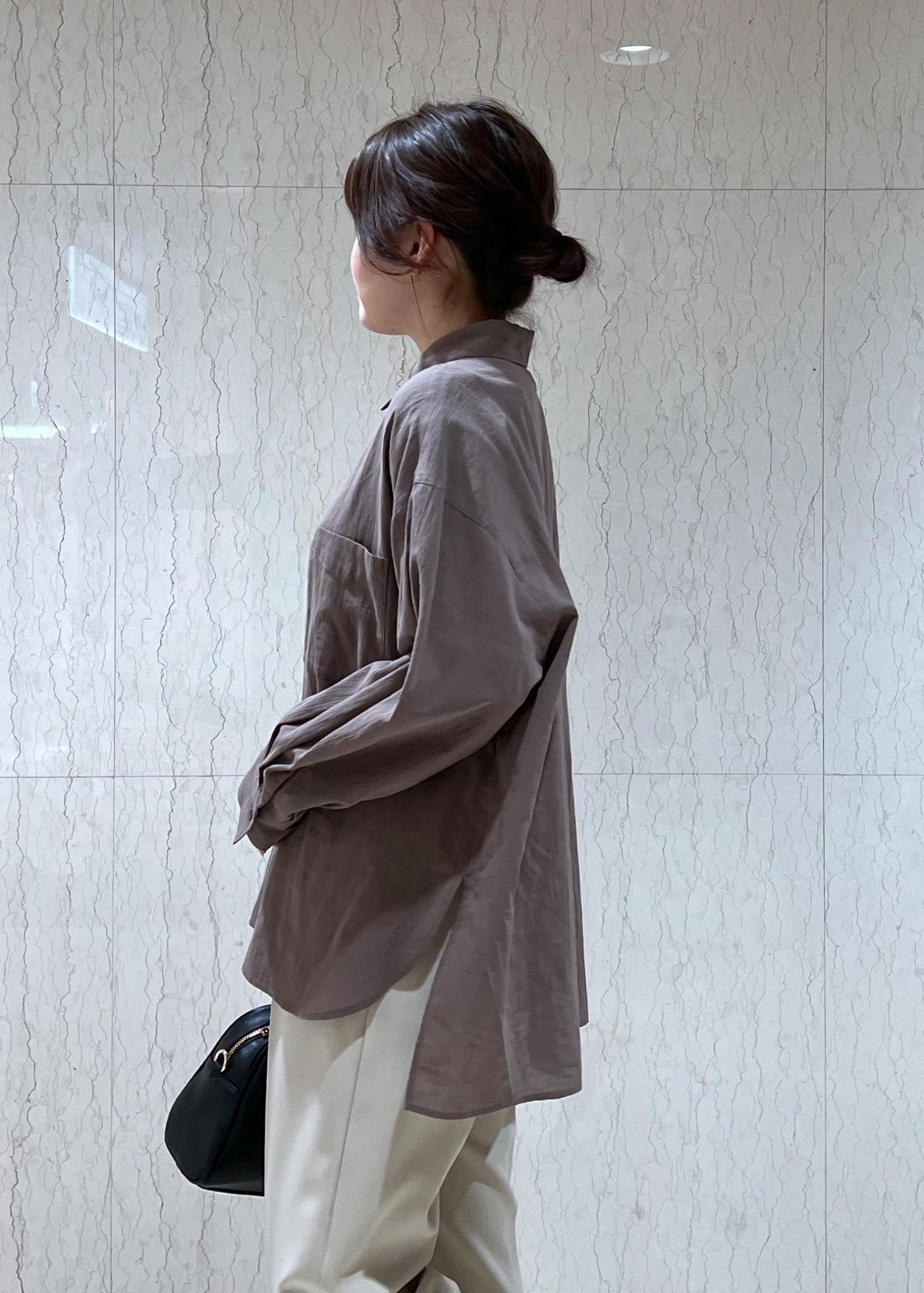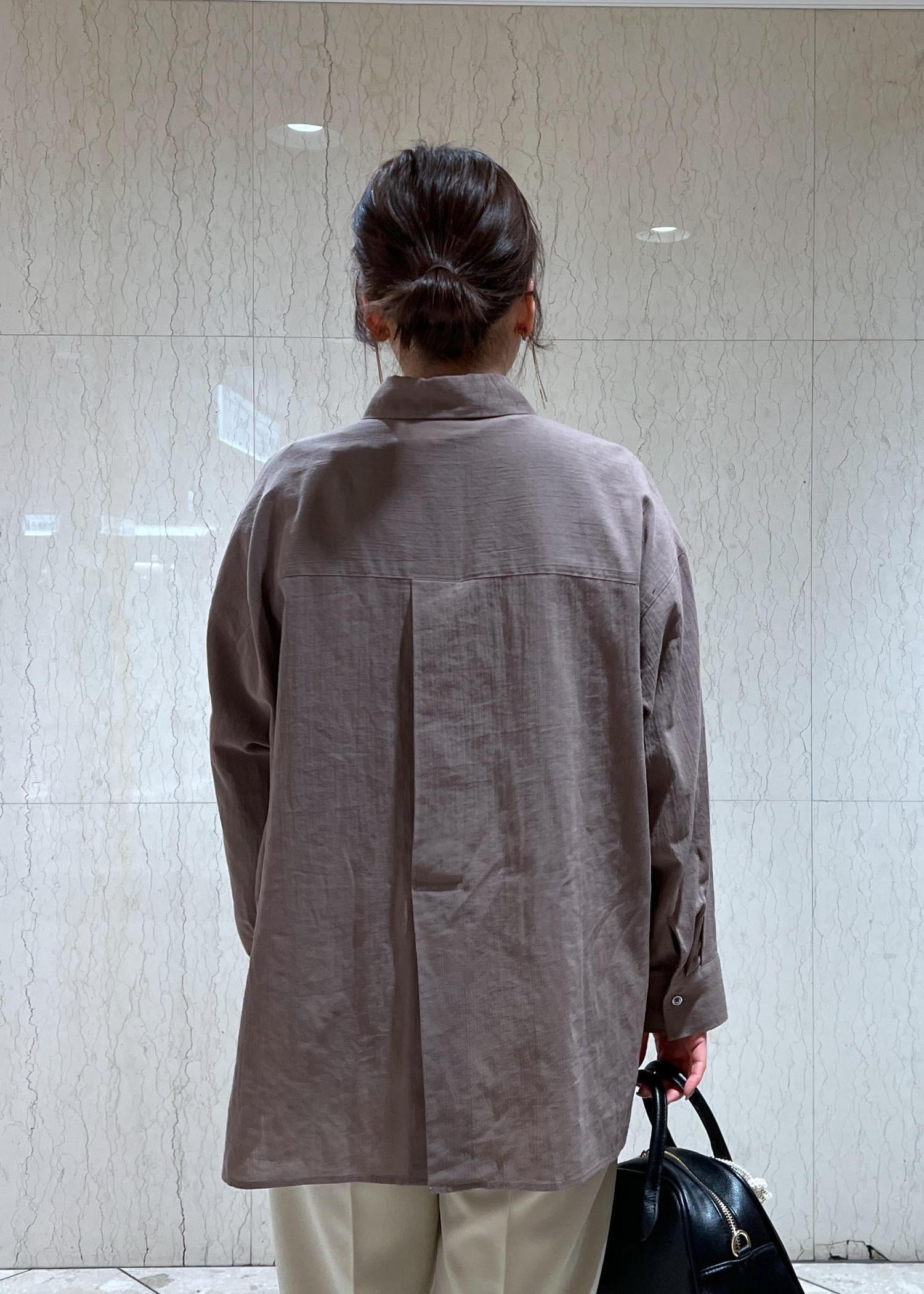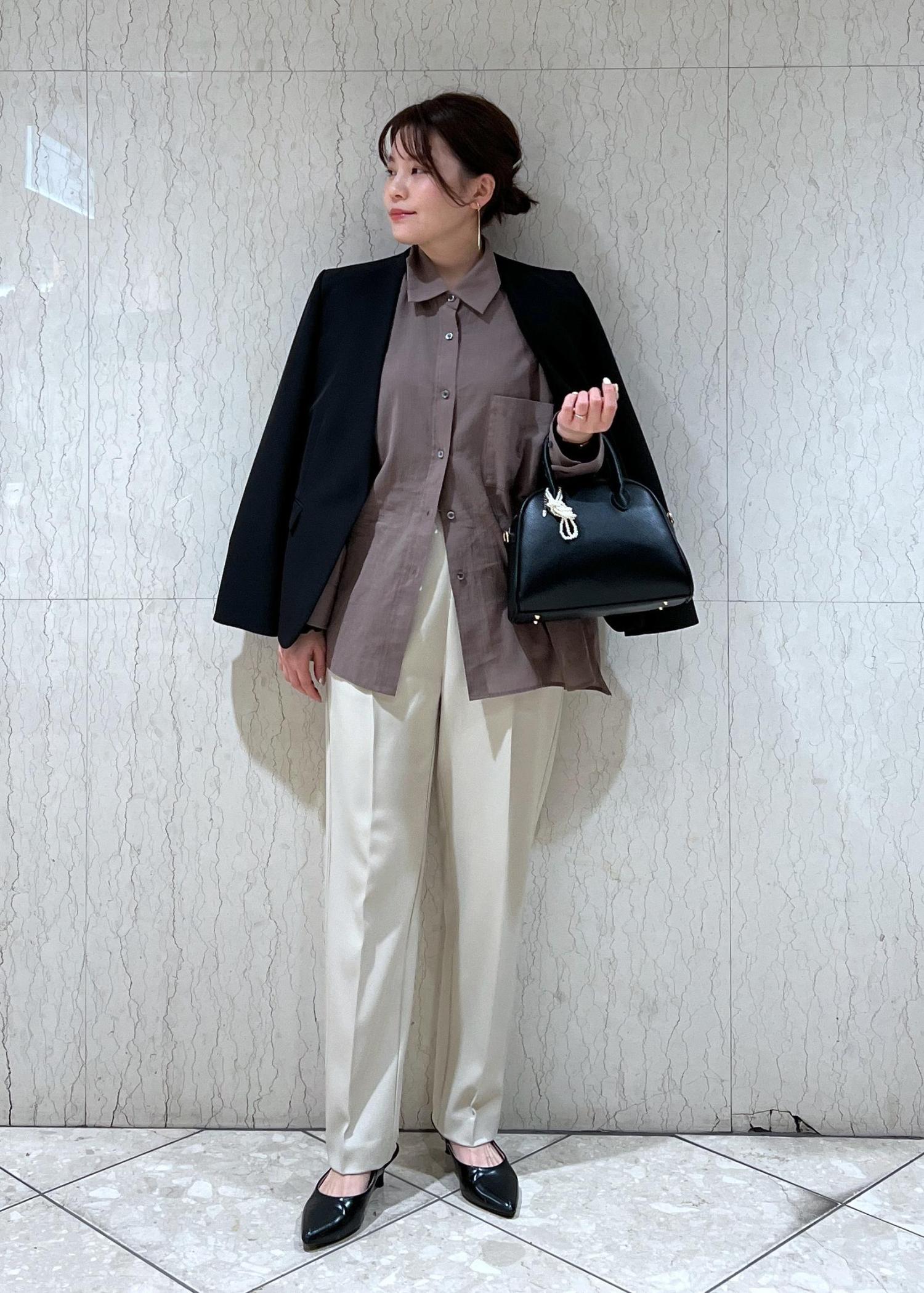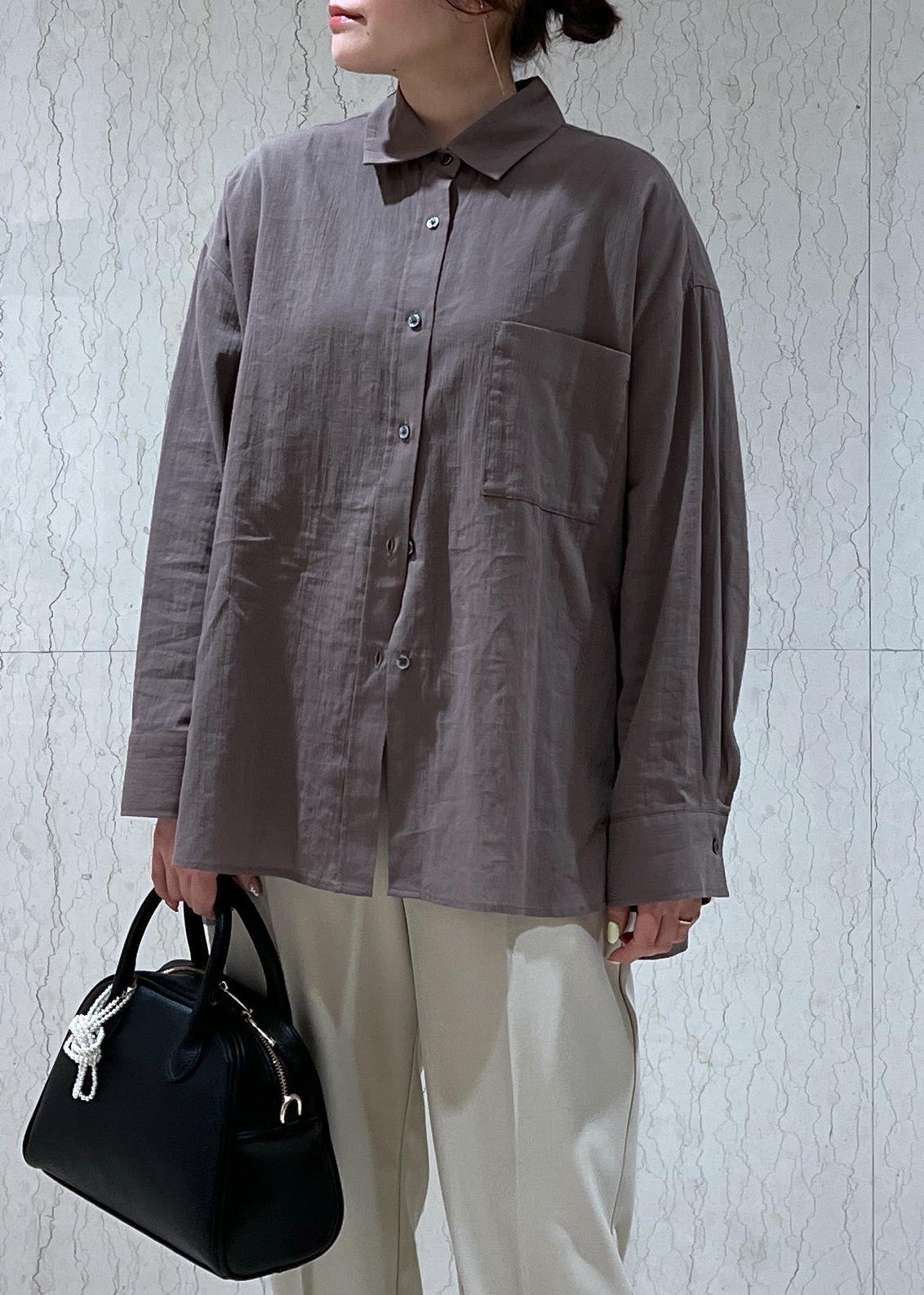 今年春夏からトレンドのブラウンカラーのシャツをポイントに