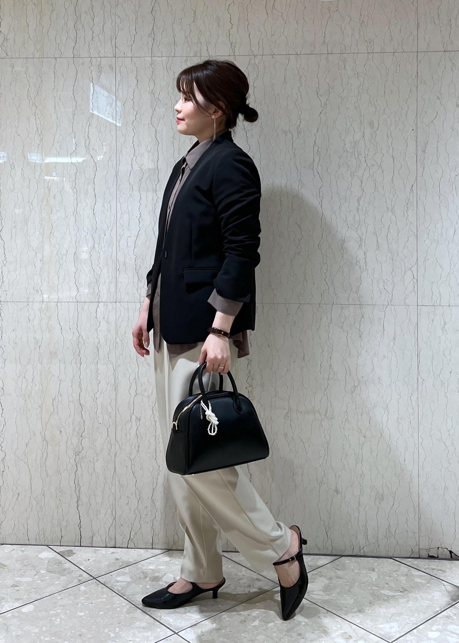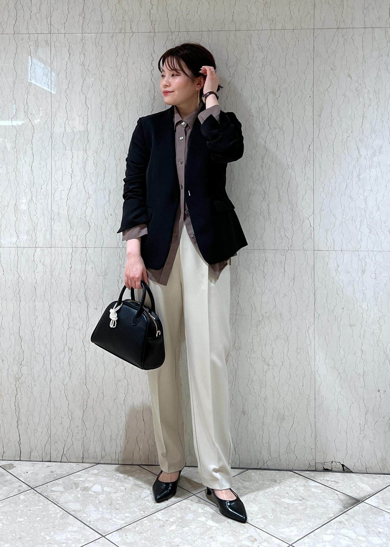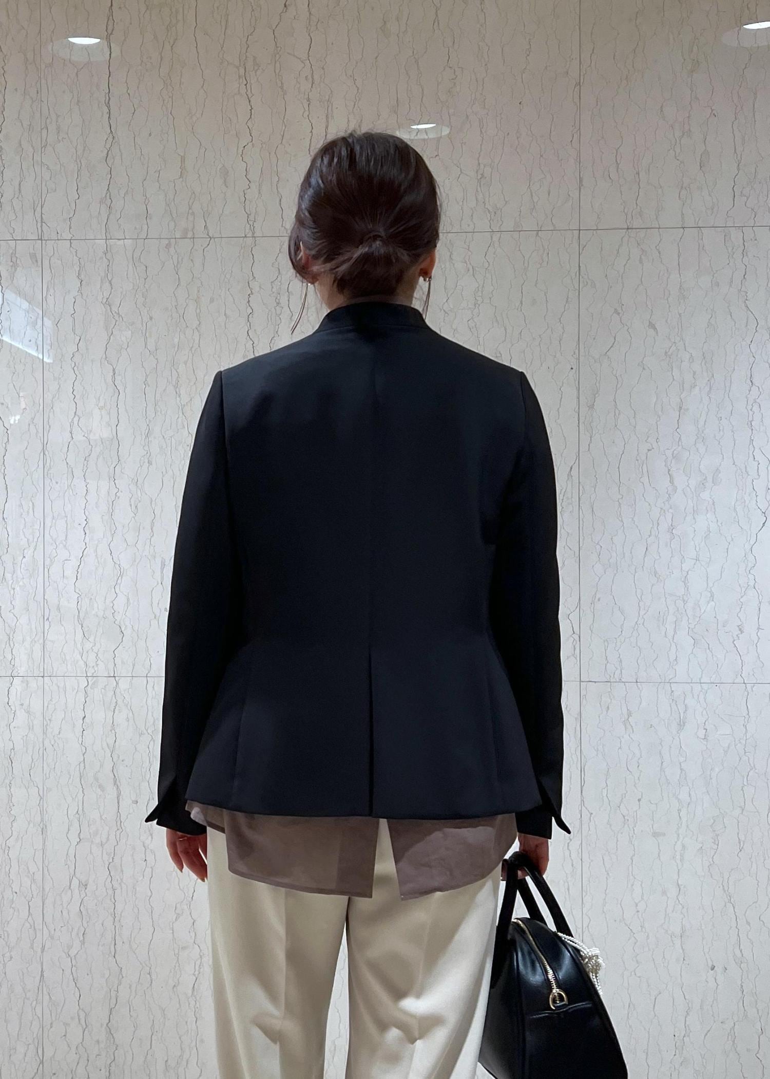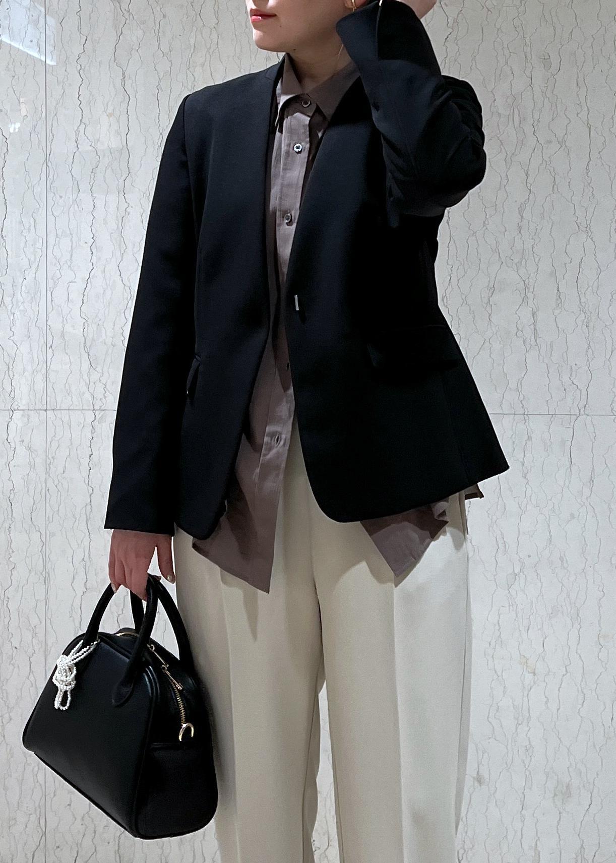 素材感:ジャケットでも少しストレッチ性もある素材でツルッとした素材感です。裏地もしっかりとついているので春・秋・冬までシーズン長く着用できます。