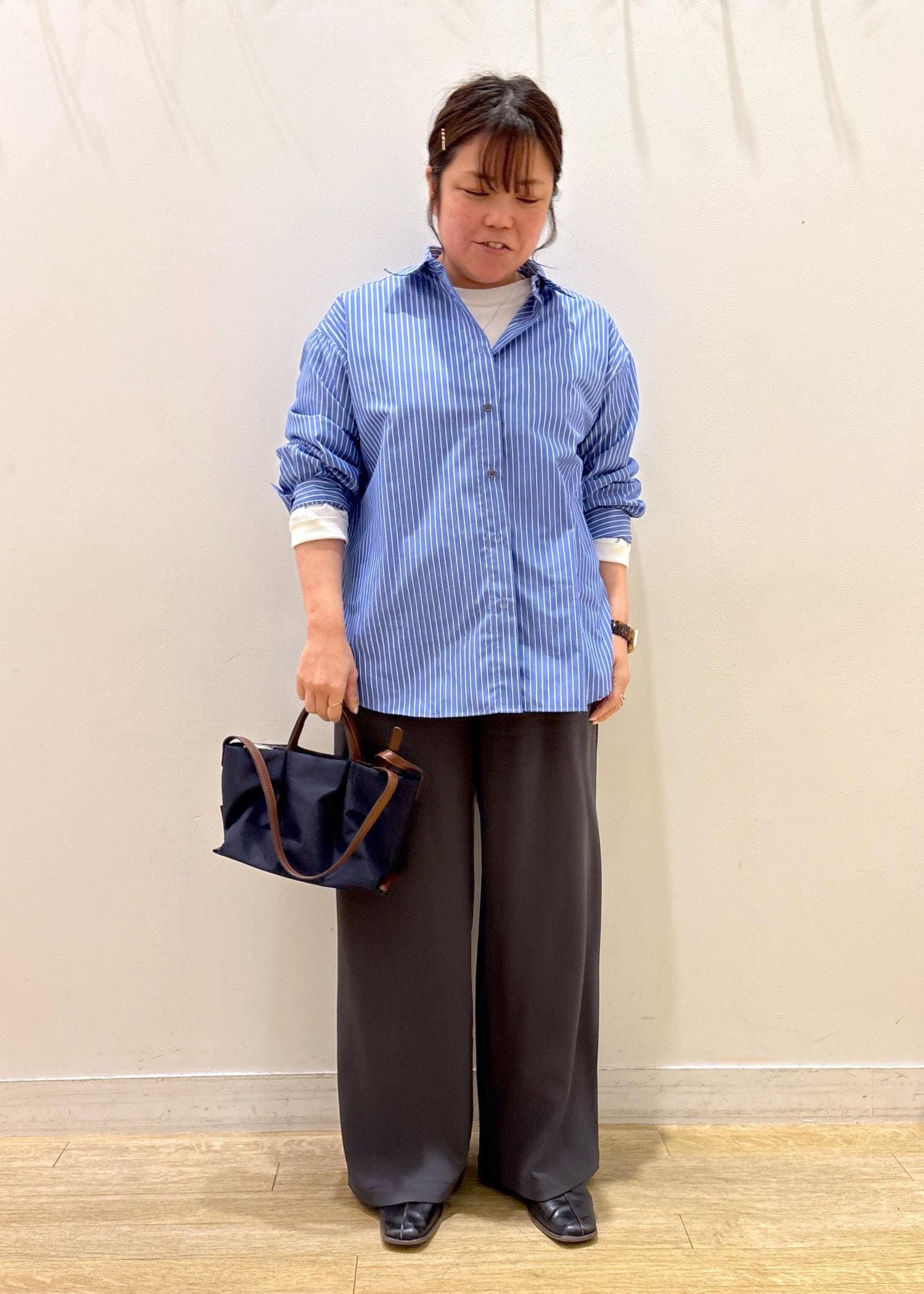素材感:張りのある生地感ですが、シワになりにくく柔らかさもあります。綿素材なので肌触りも良い○