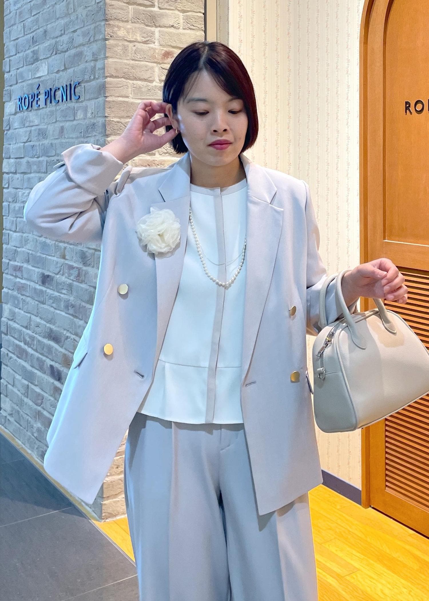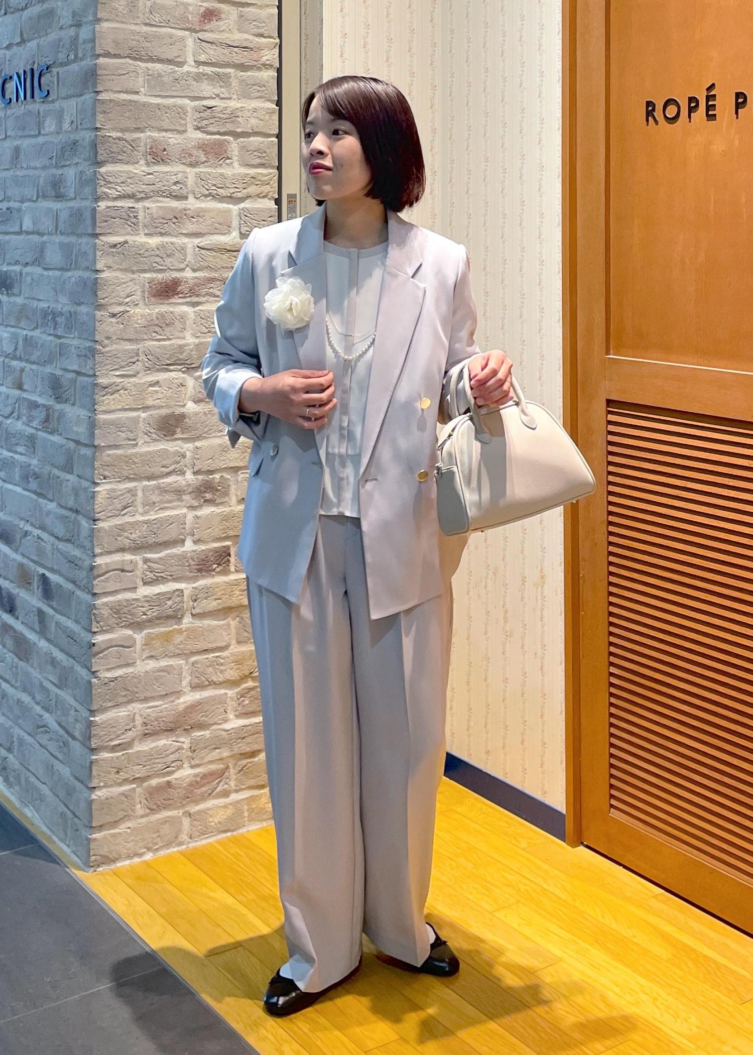 ライトグレーのセットアップを使った、入園入学式にぴったりのセレモニースタイルです!