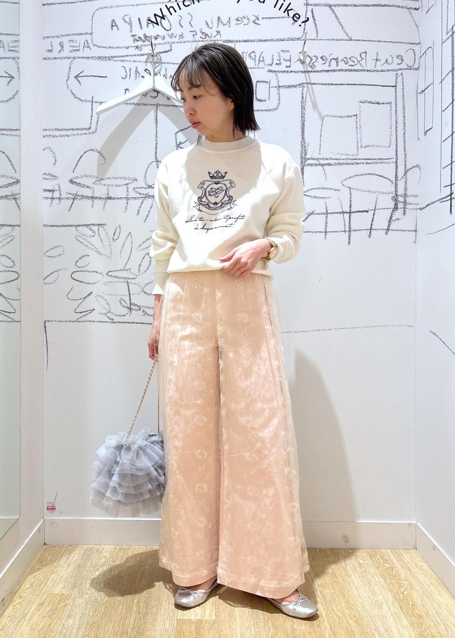 スウェットライク刺繍ニットプルオーバー/リンクコーデ