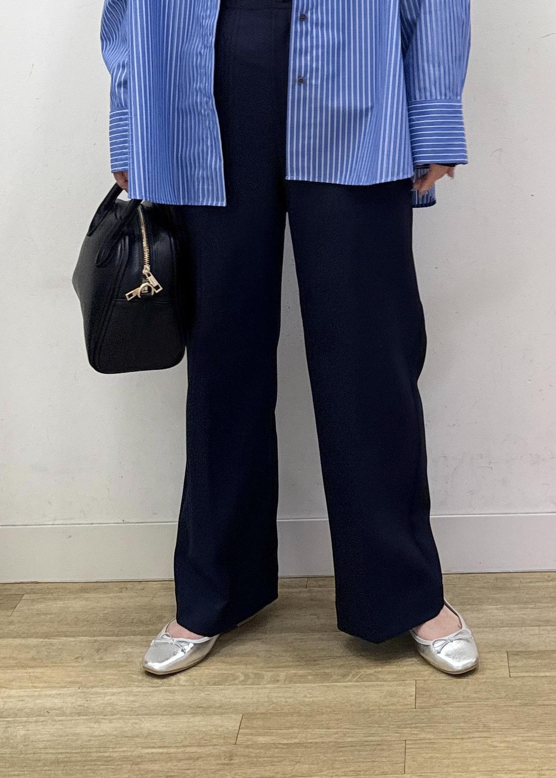 脚のラインは拾いにくいゆとりのあるシルエットですが、センターライン入りなのですっきり見えもするベイカーパンツです。 -