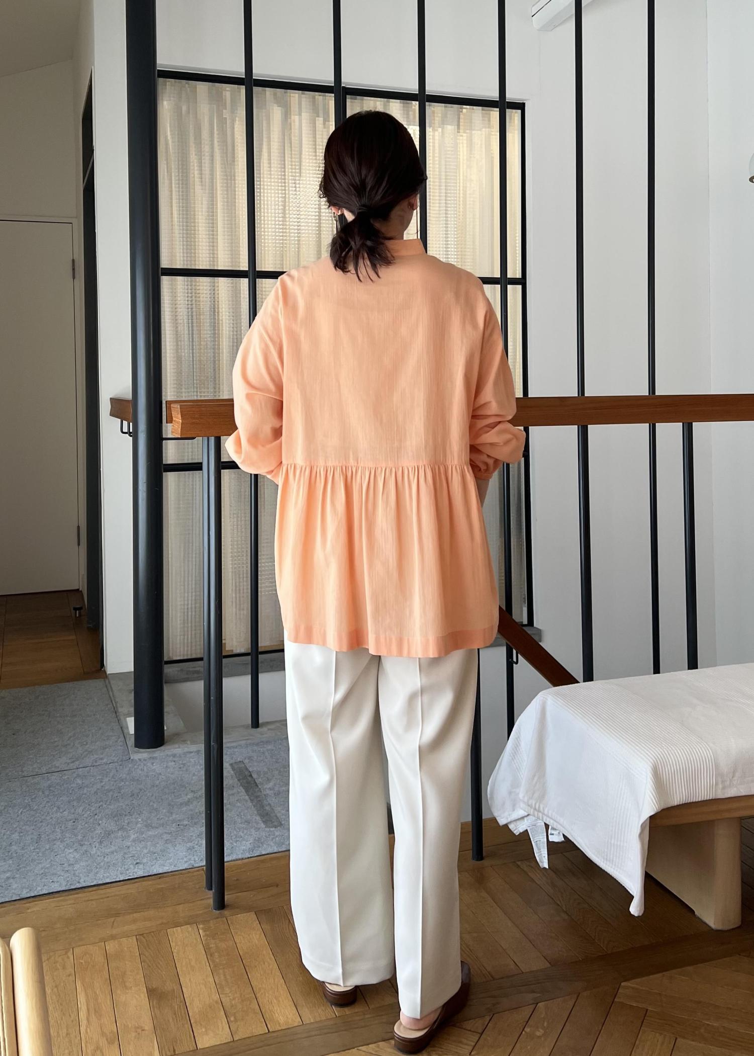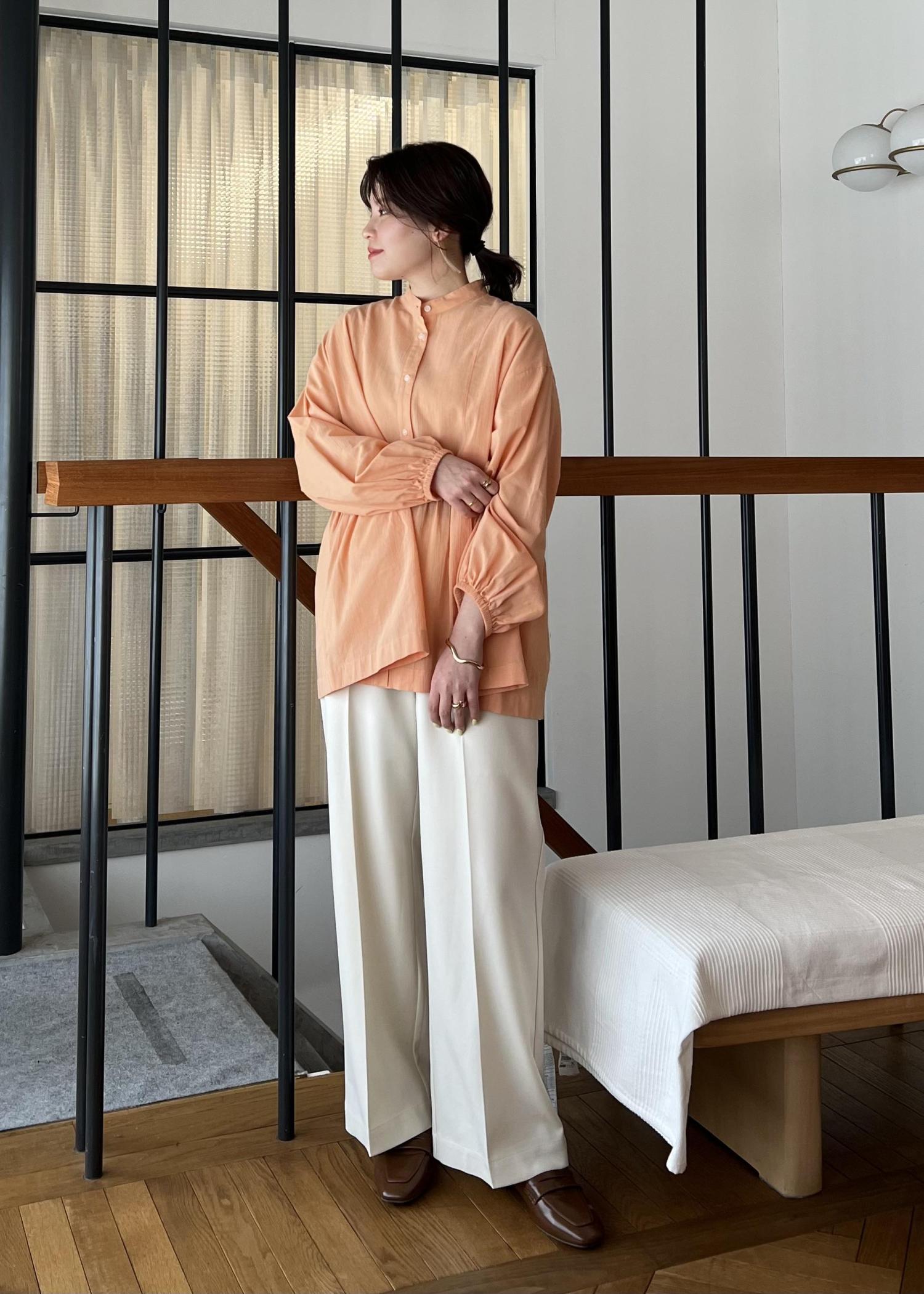 爽やかなオレンジカラーがかわいいブラウスを主役に