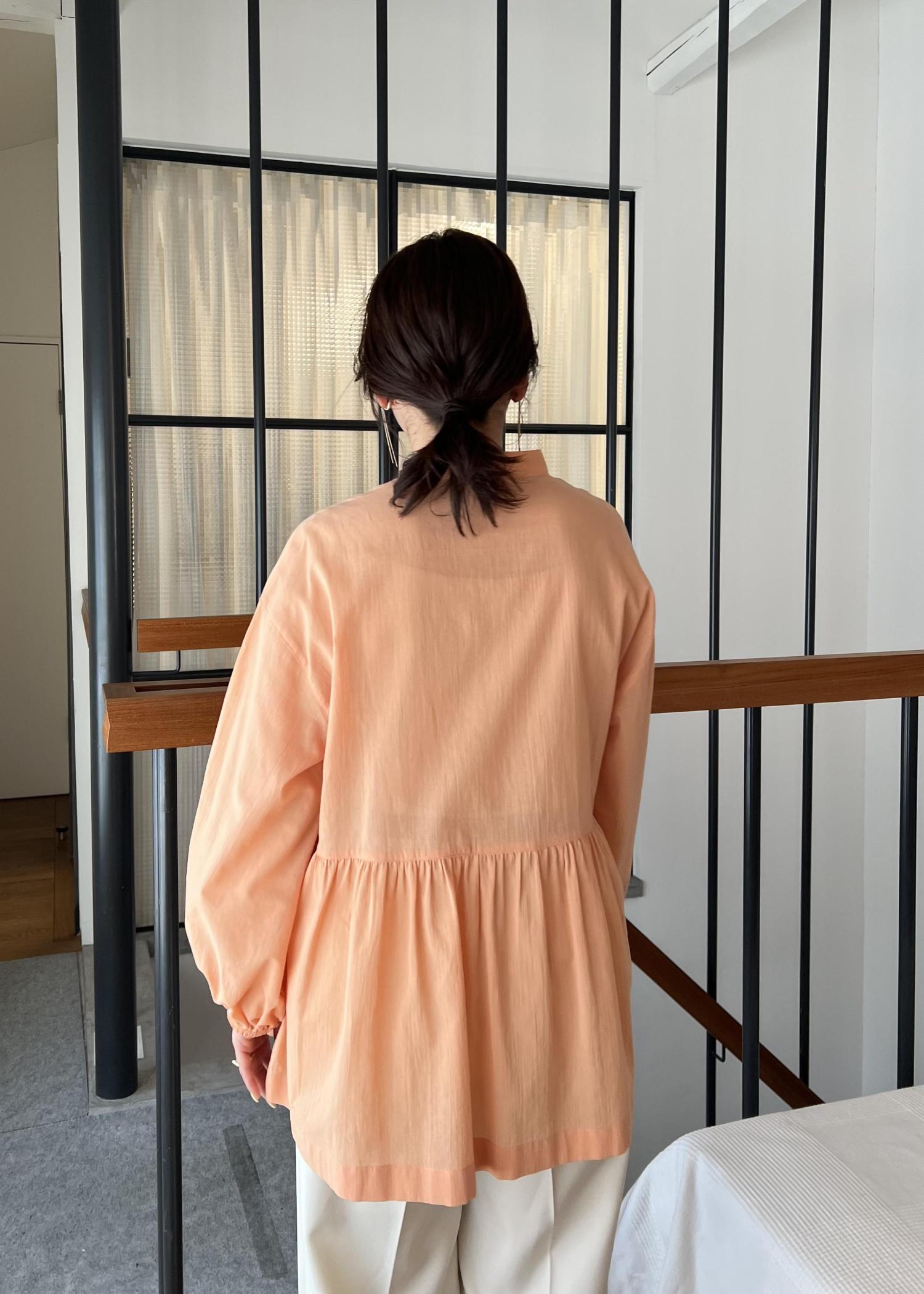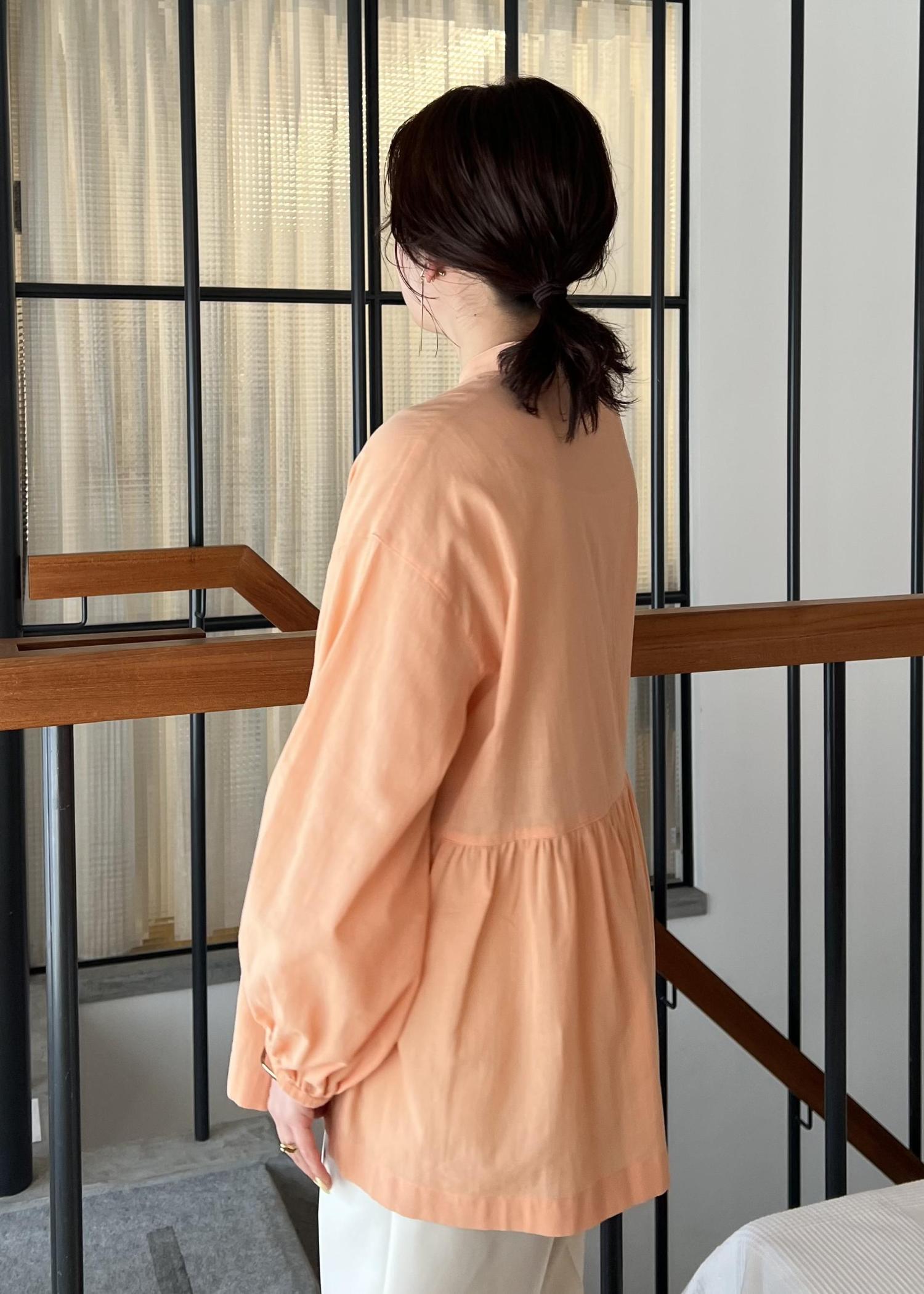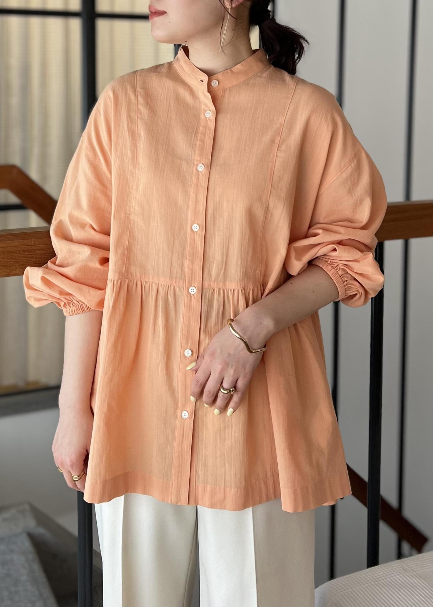 アウトレットROPÉ PICNIC【接触冷感・通気性】お着軽シャツシリーズ/綿ボイルペプラムシャツオレンジ / 38¥2,396レビュー着丈がヒップが隠れる長さで、袖丈は袖口ゴムが入っているので手首で止まります。