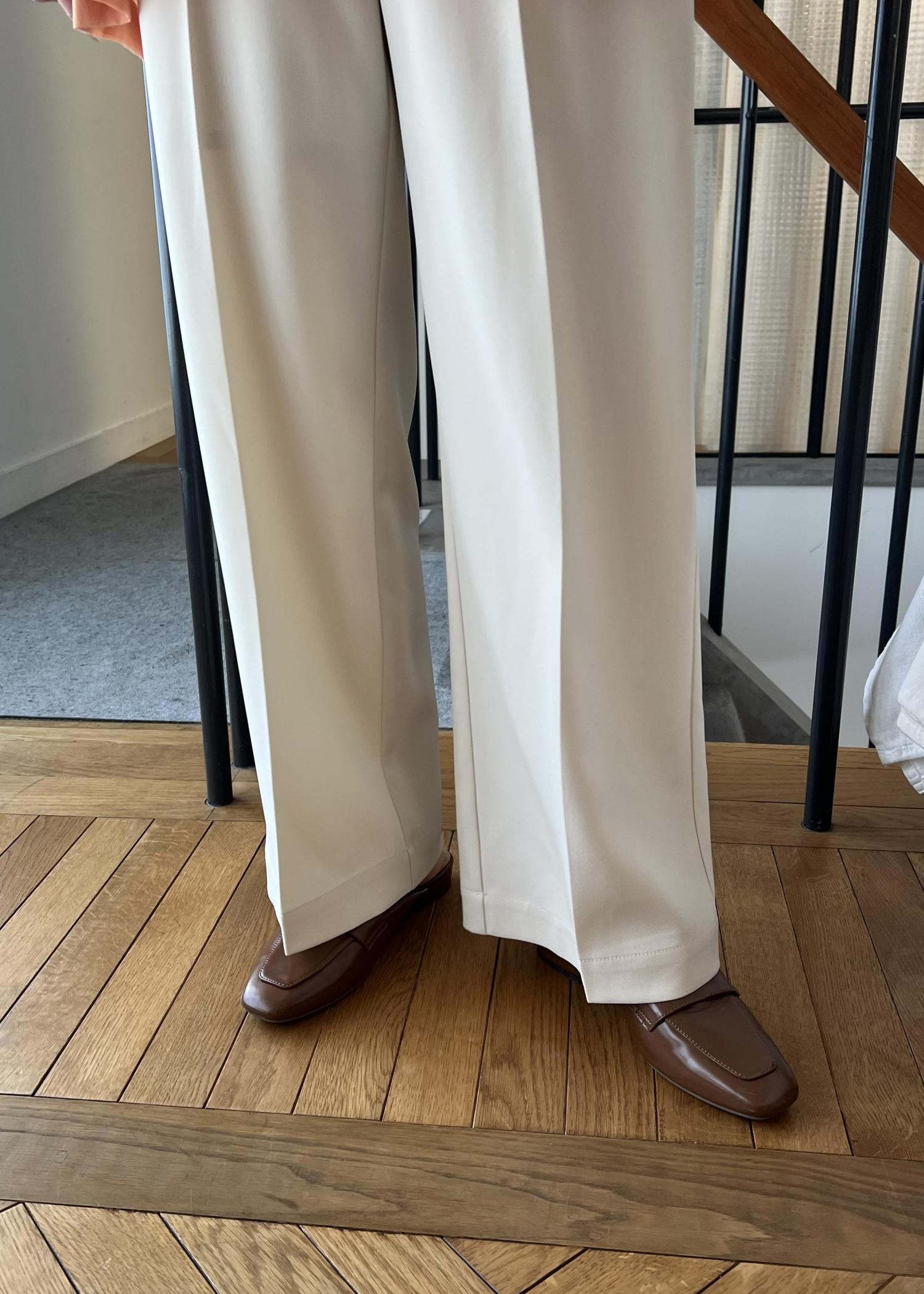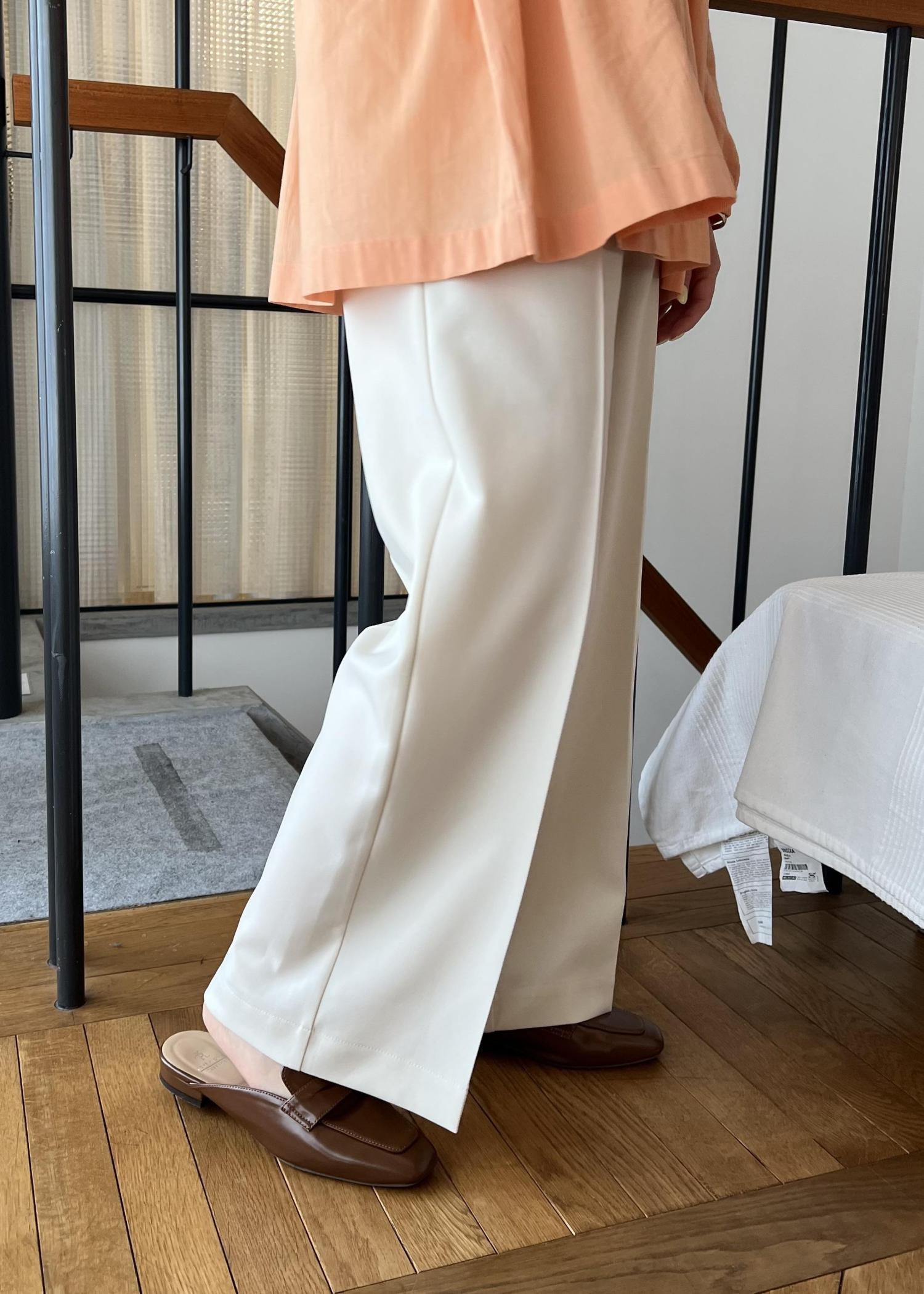 ホワイトブラウン系でお仕事にも使えるきれいめパンツコーデにしてみました!