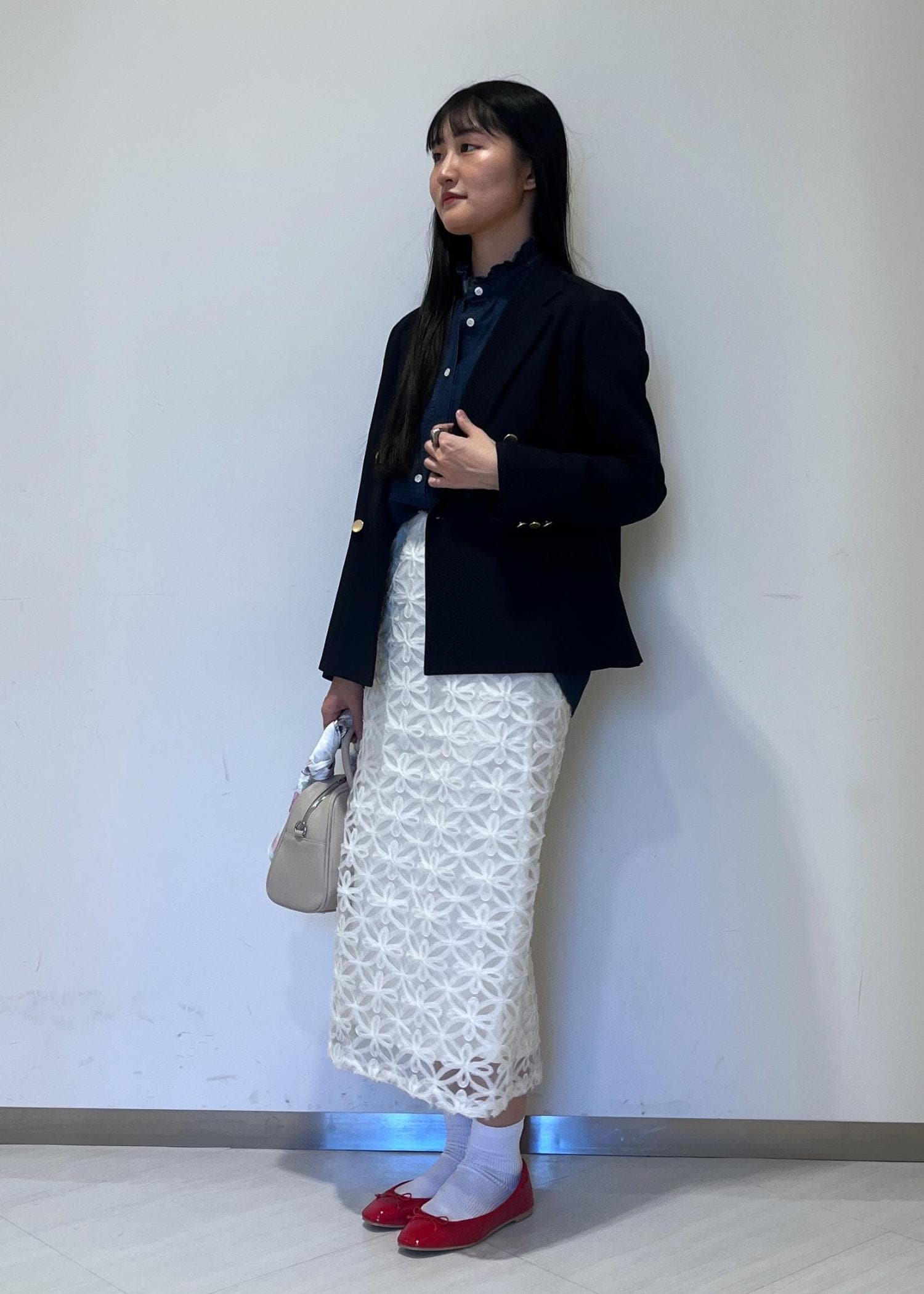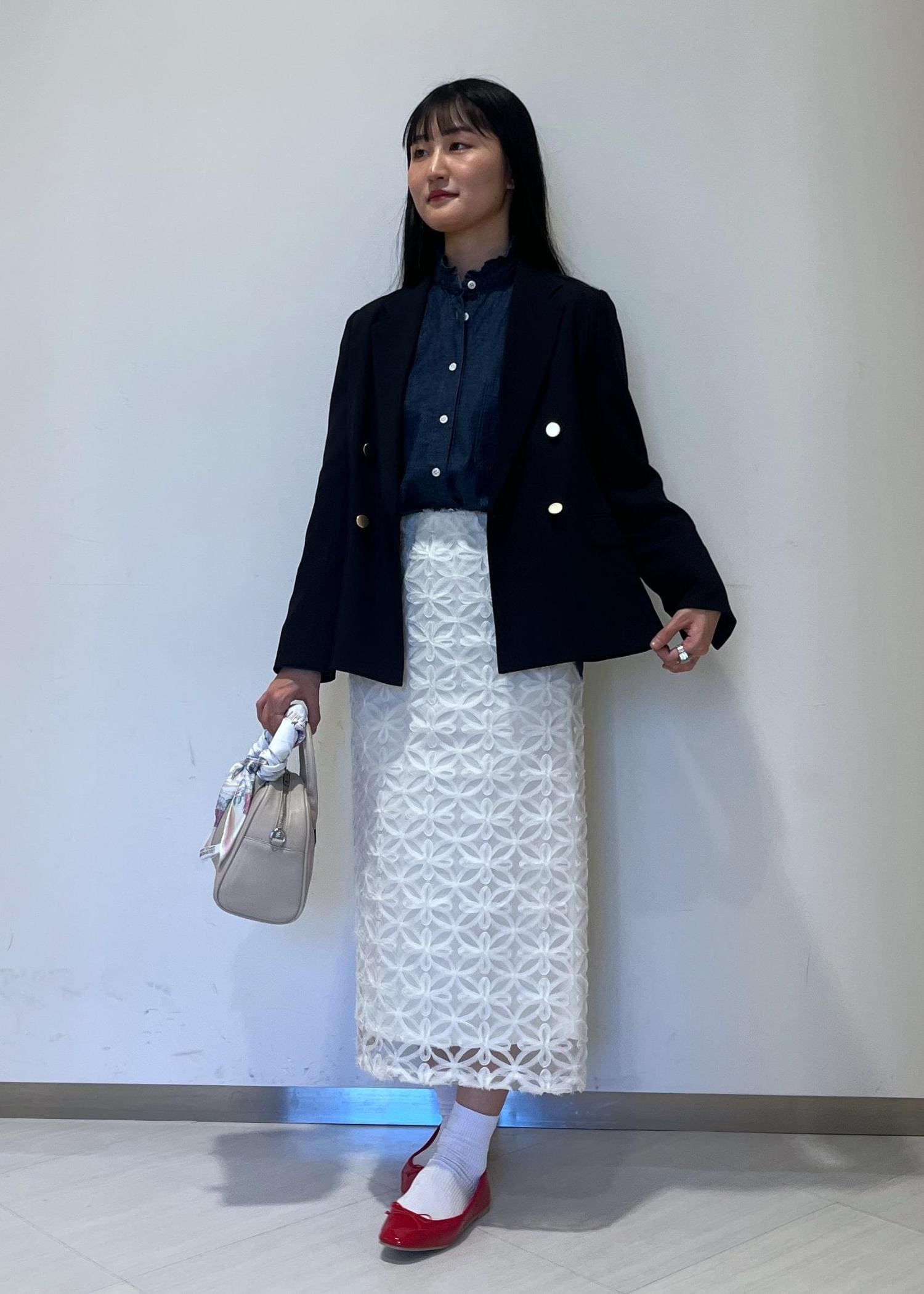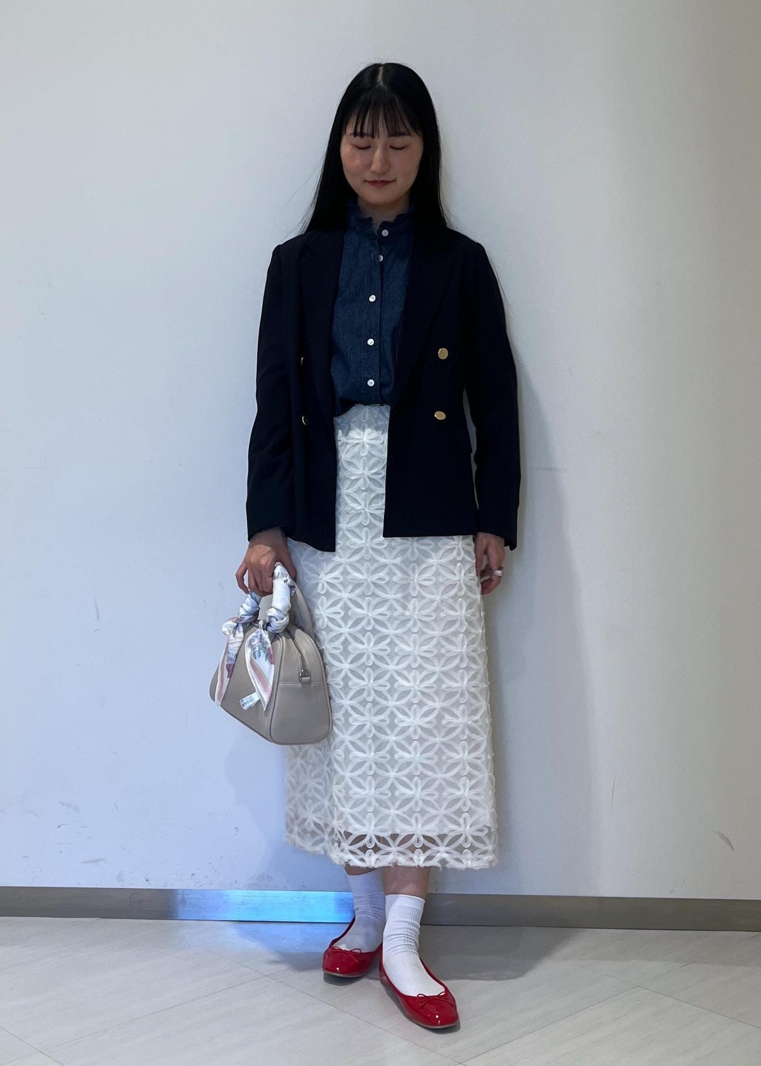 カジュアルな印象のデニムシャツは、ジャケットやレーススカートと合わせることで 、品のあるきれいめコーデになります。