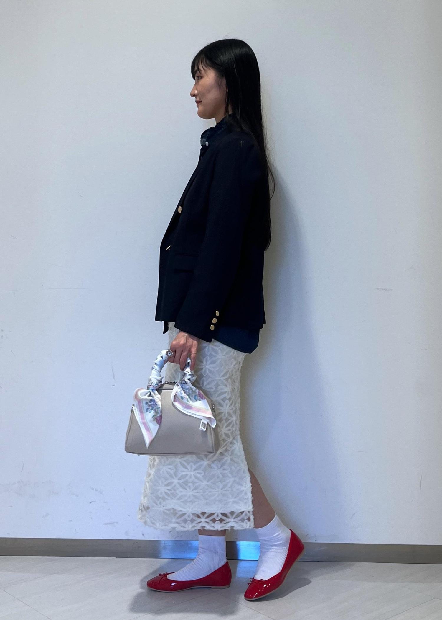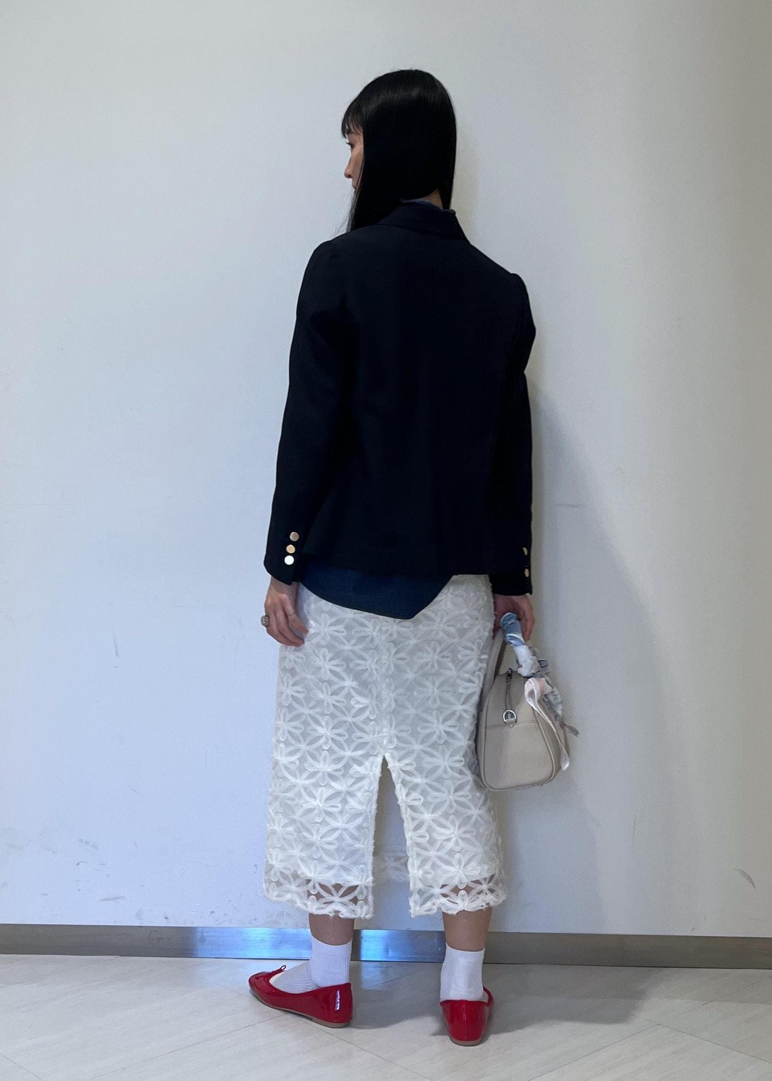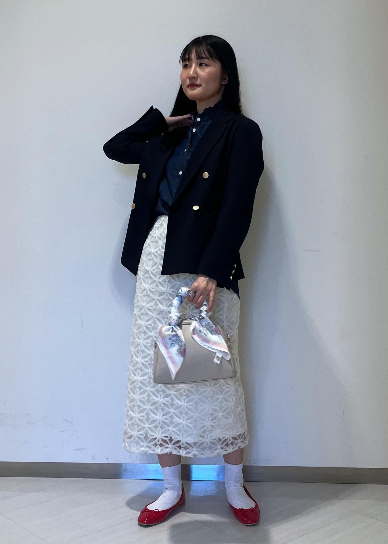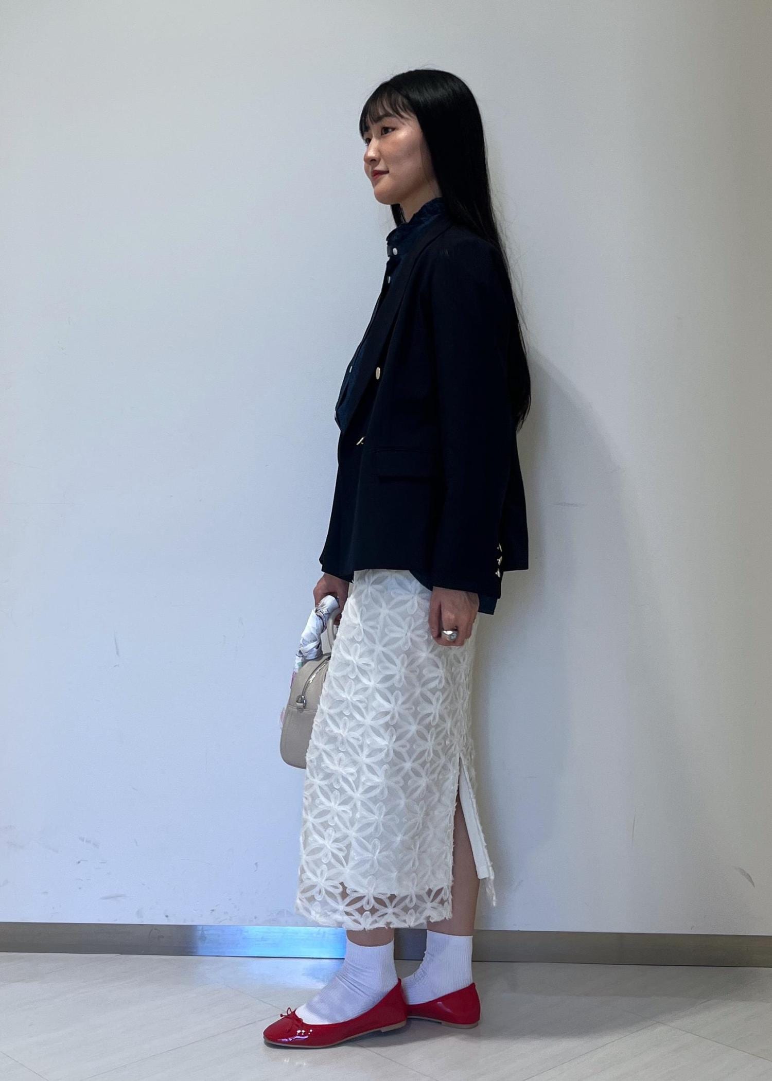 カジュアルな印象のデニムシャツは、ジャケットやレーススカートと合わせることで 、品のあるきれいめコーデになります。
