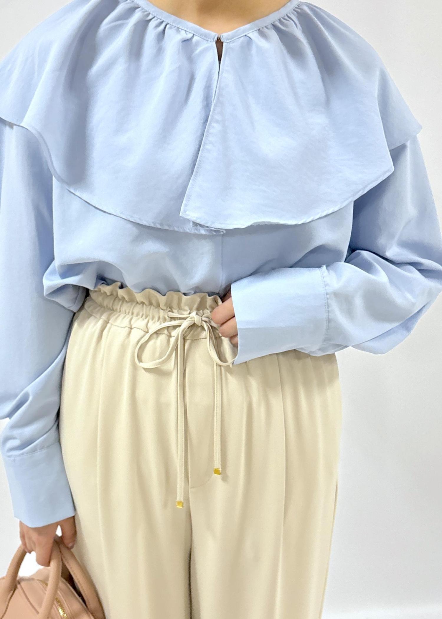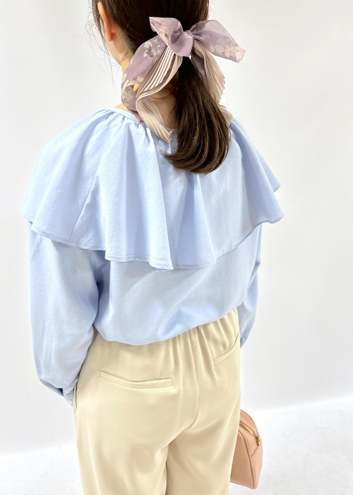 フリルが大きめなので、大人っぽいボトムスを合わせることで子供っぽくなりすぎず上品な印象になります◎