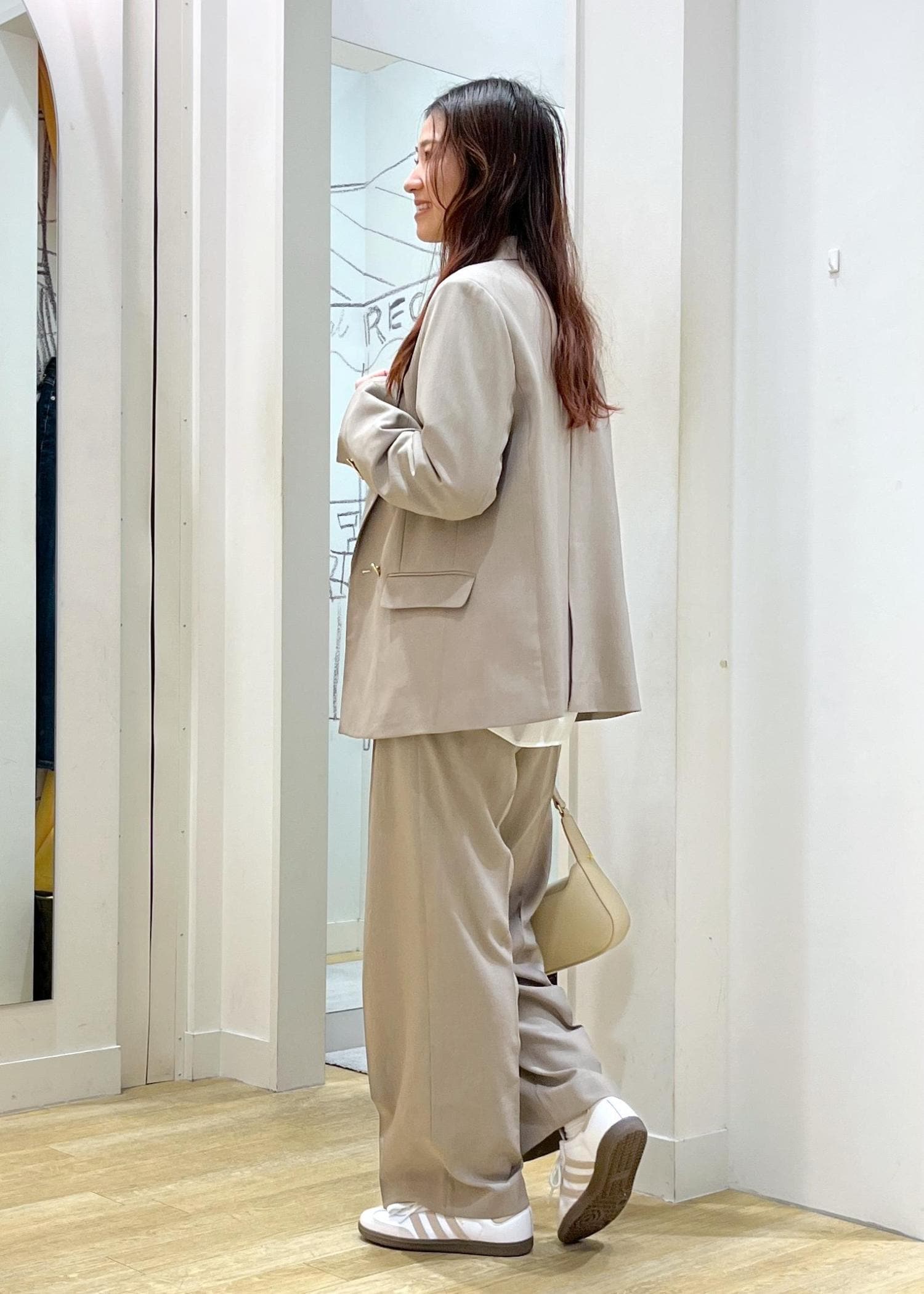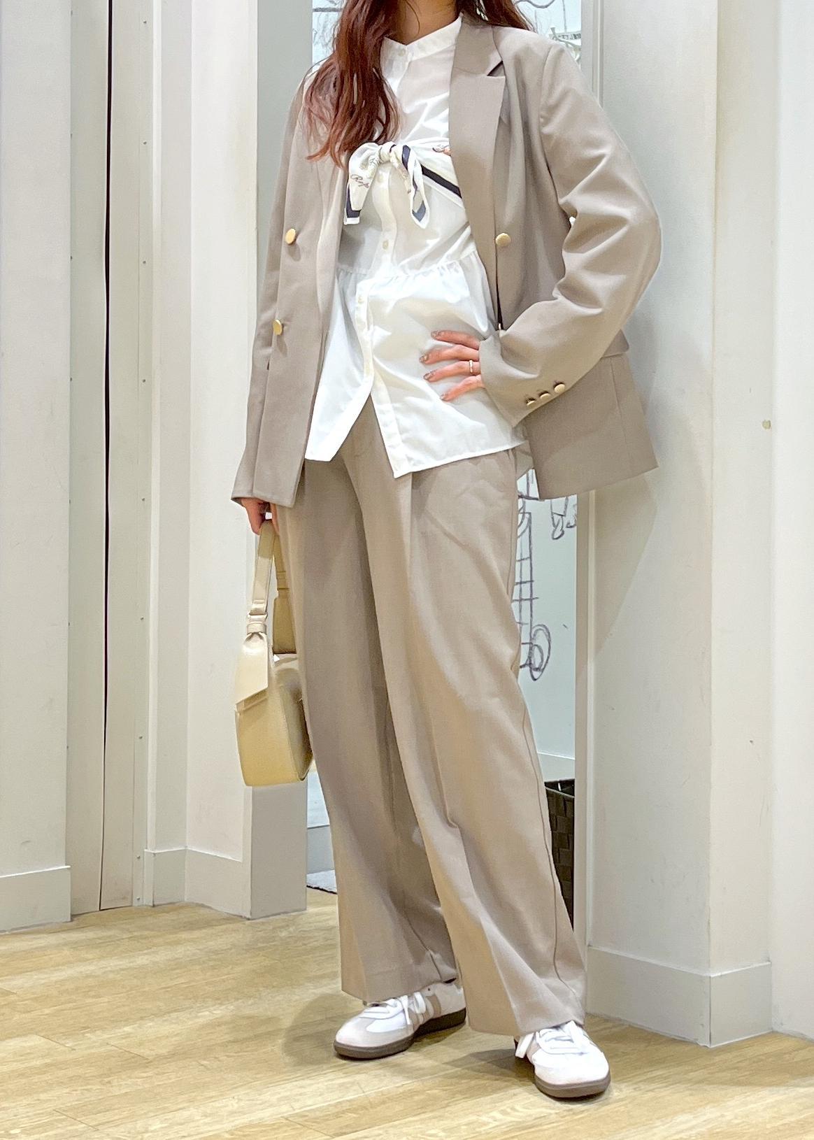 生地に光沢があり、綺麗めにもカジュアルにも合わせていただけます。