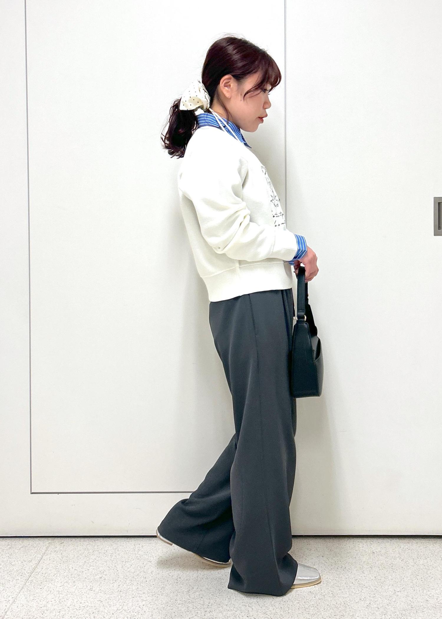 ウエストはゴムで、それ以外の部分もゆとりのあるワイドシルエットなのでとても楽ちんです。 -