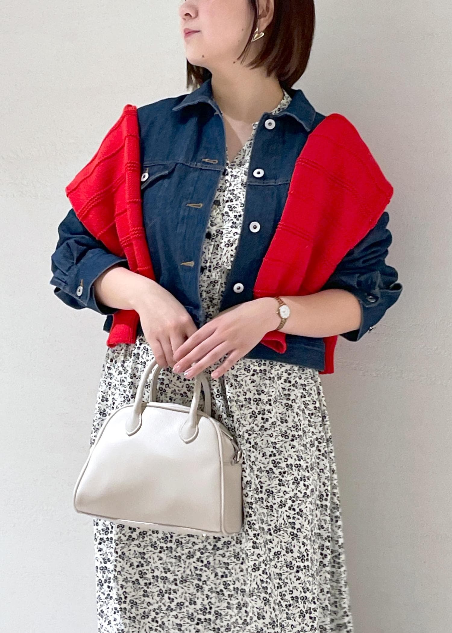 雑誌で白ワンピ×デニムジャケット×赤という組み合わせを見て可愛いっ!!と思ってROPÉ PICNICのお洋服でチャレンジしたのがこちら✨