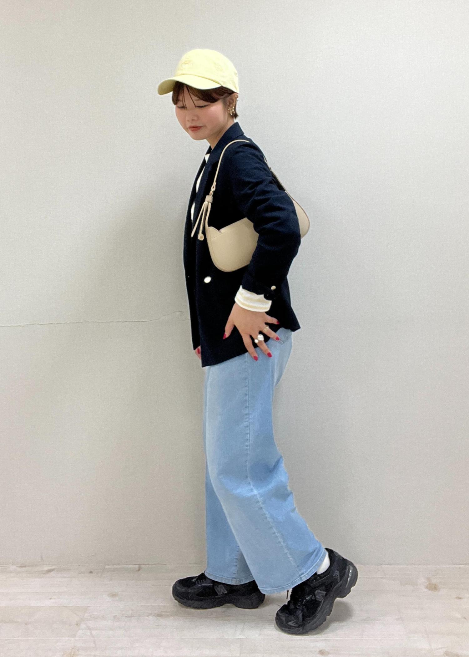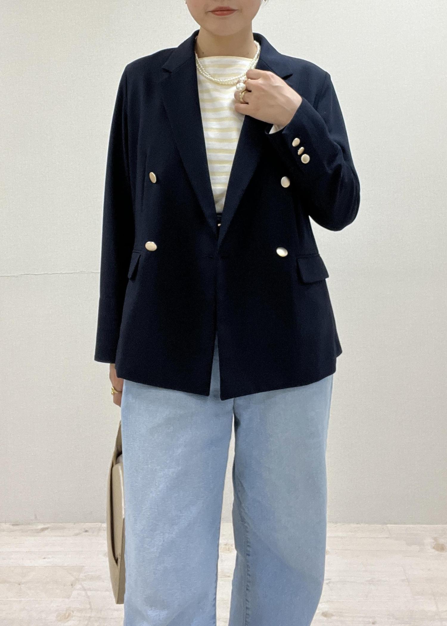 今回は金釦ジャケットをメインに大人カジュアルコーデ