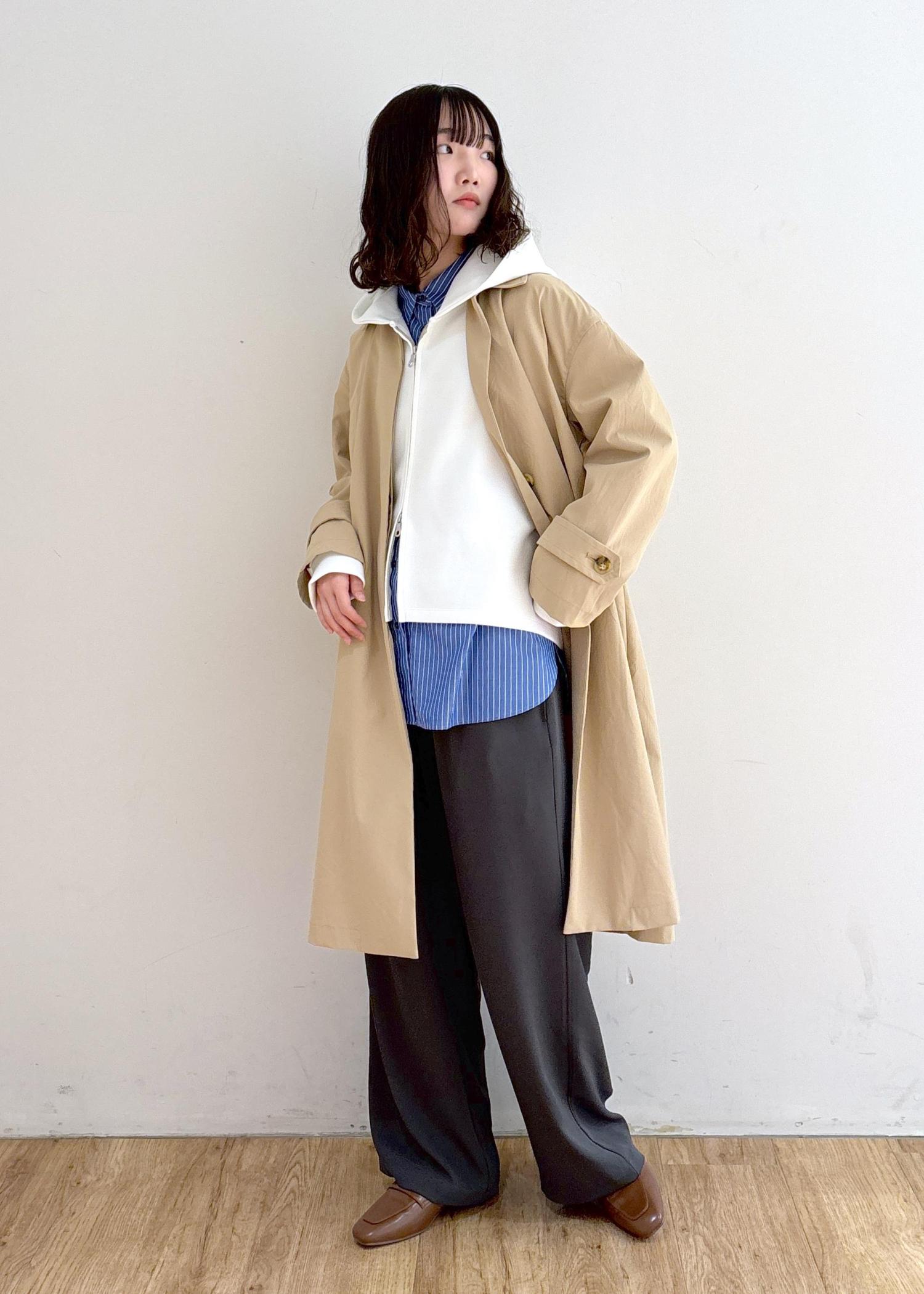 花粉ガードや撥水機能がついたハリ感のあるステンカラーコートです!着ているだけでスタイルが良く見えるのでおすすめです!