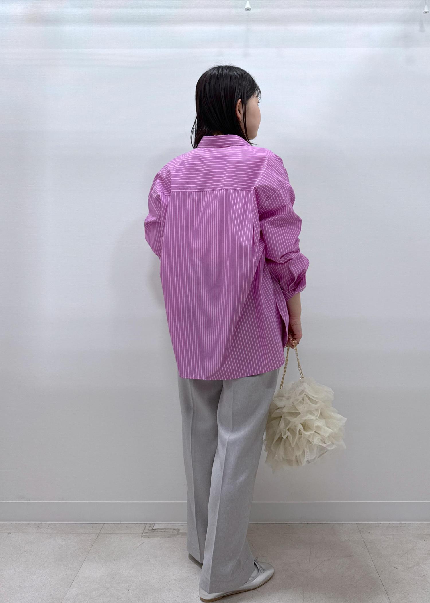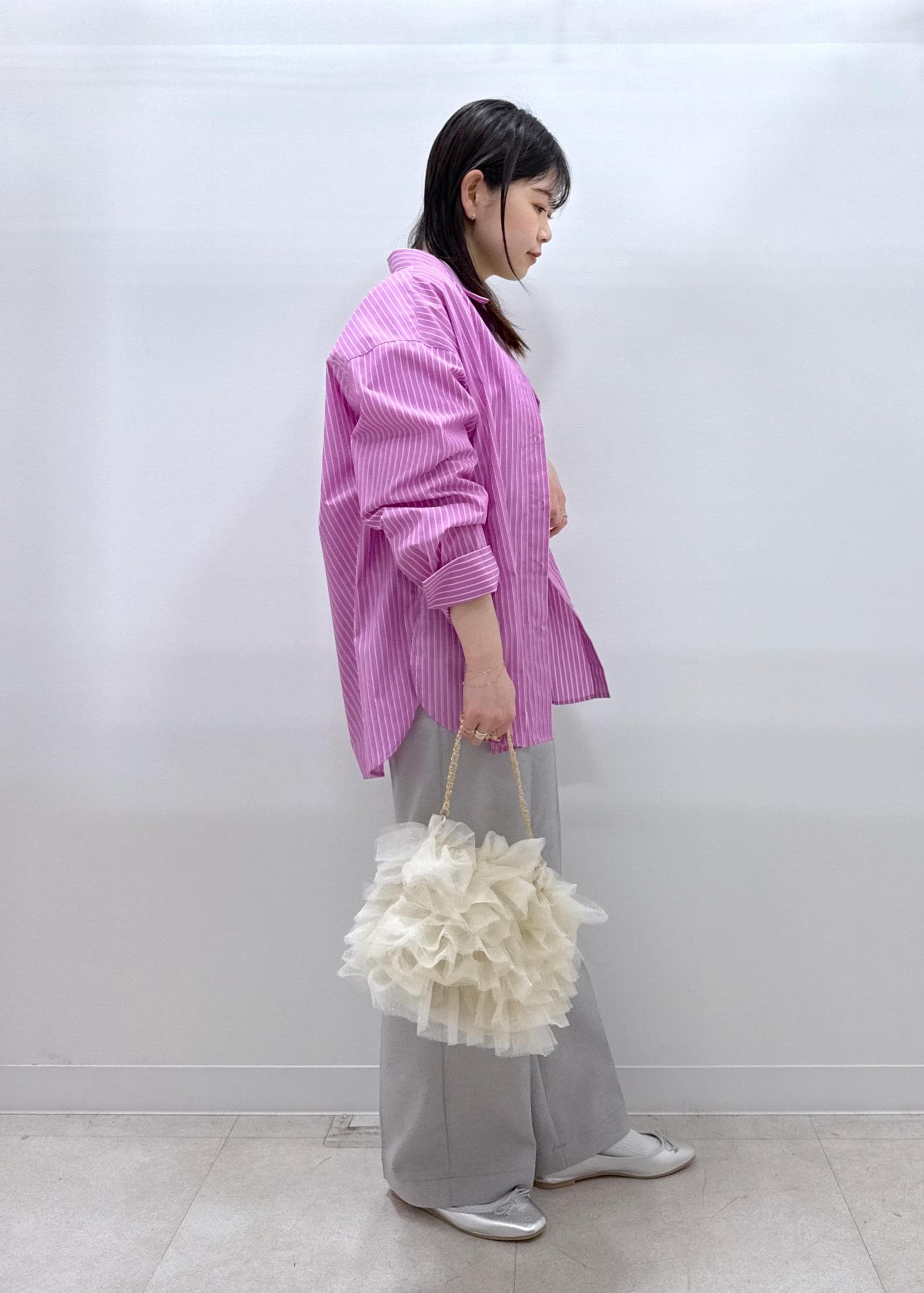 ピンクのシャツをアクセントに、春の大人カジュアルコーデにしてみました。