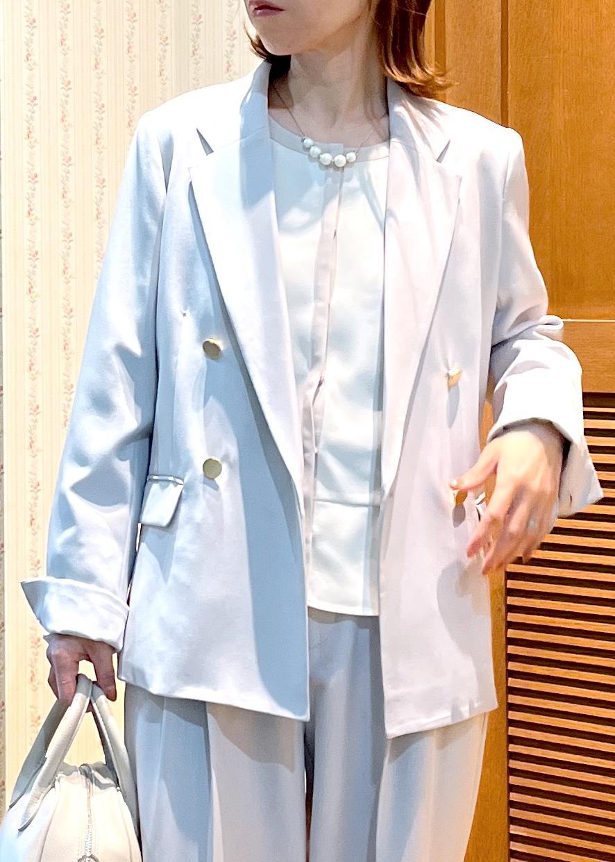 ライトグレーの明るい色味のセットアップで入学式や入園式を華やかに!