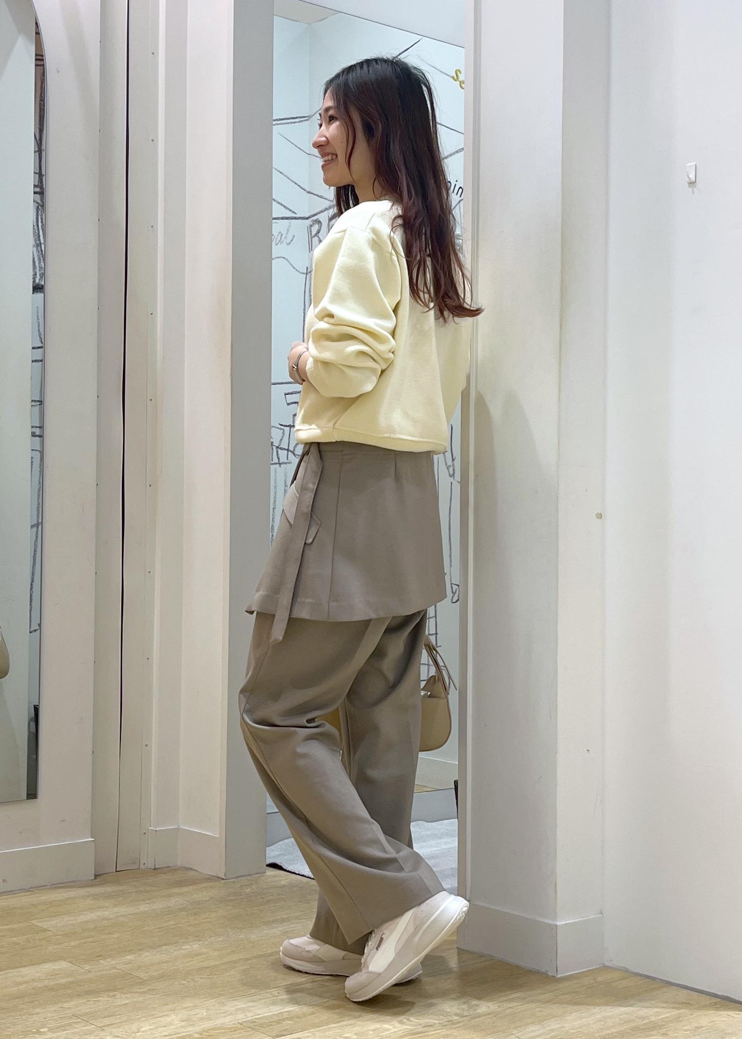 スウェットを取り入れるとカジュアルになりすぎてしまう時に使いやすいです。