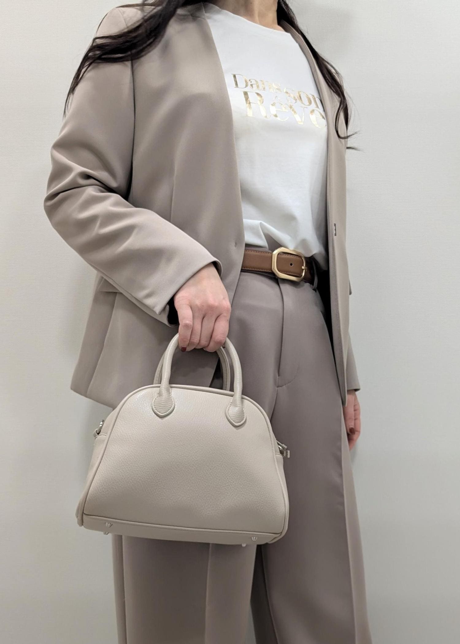 小物とインナーをカジュアルにすると、普段のお出かけにもお使い頂けます(^.^)