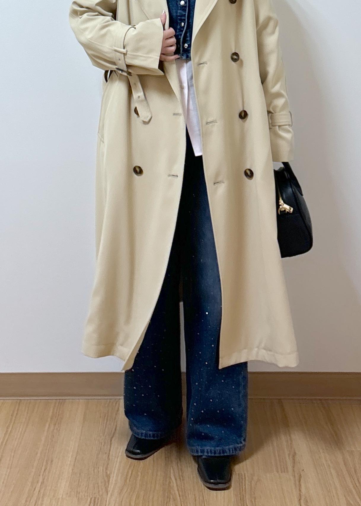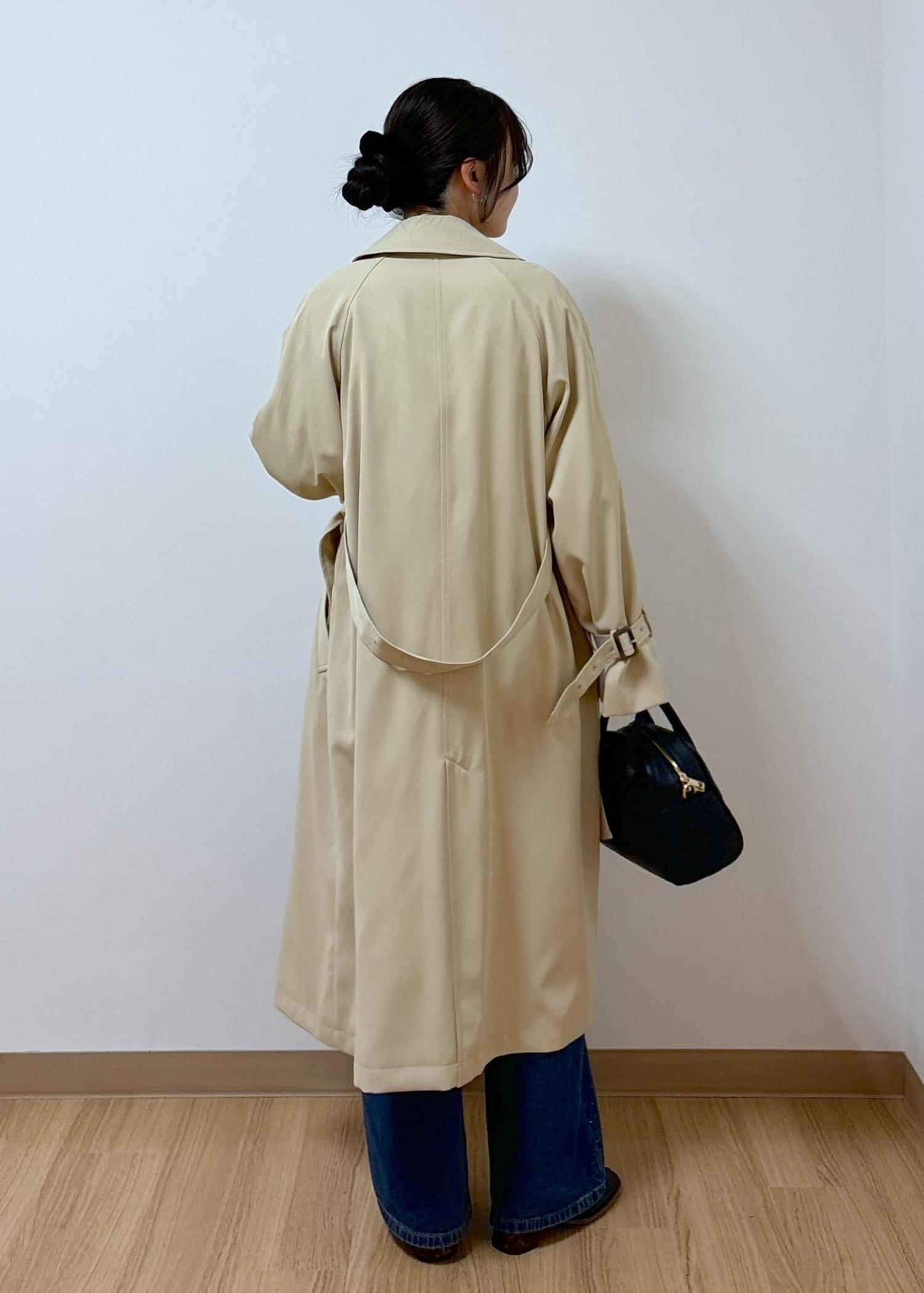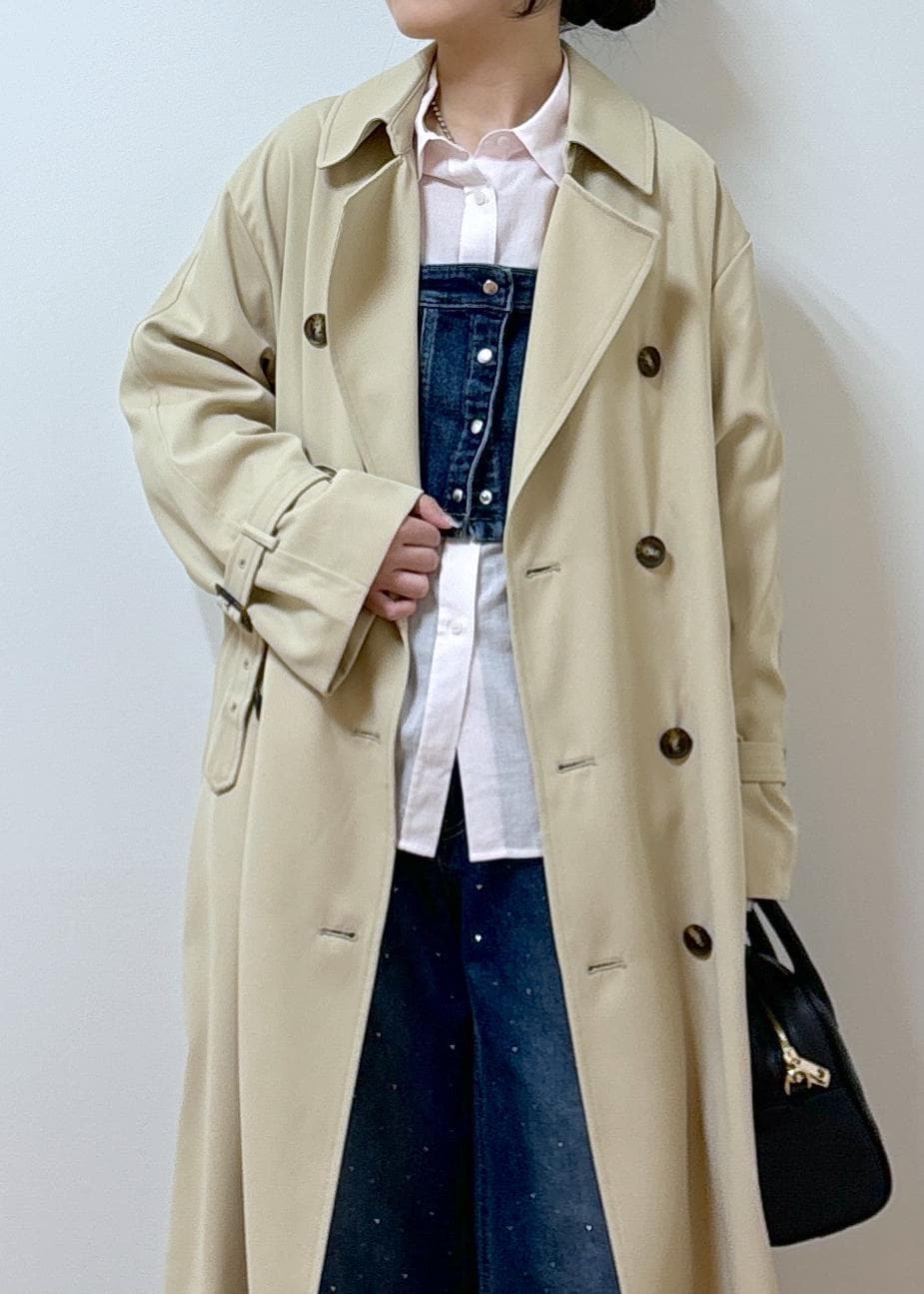 ROPÉ PICNIC撥水加工・花粉ガード/トレンチコートベージュ / 38¥14,300レビューとろみのある生地でさらりと着られるつくりです。肩まわりにもゆとりがあるので、中にジャケットや厚手インナーも着込めます◎161cm38サイズでふくらはぎが隠れるくらいの丈感でした。