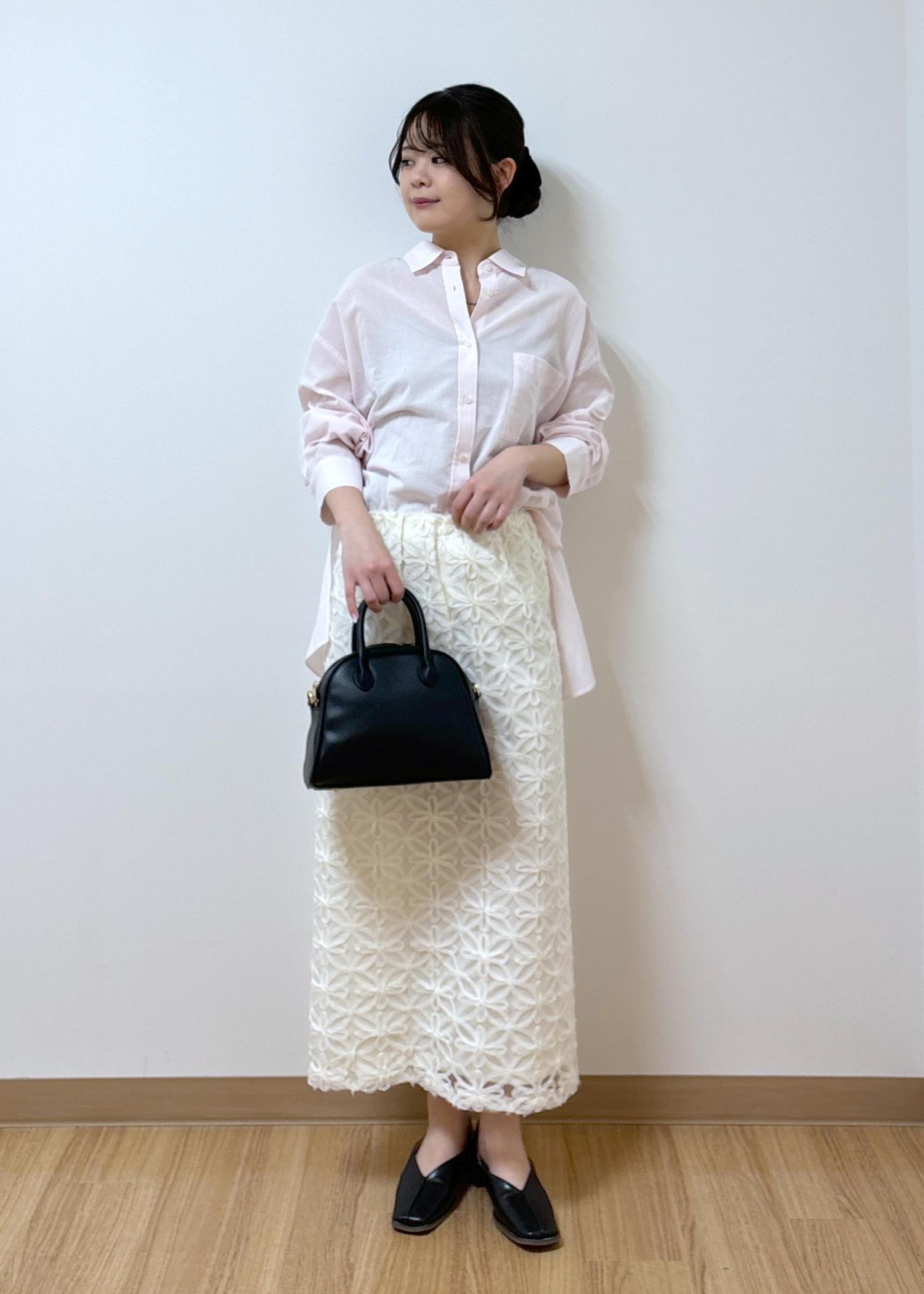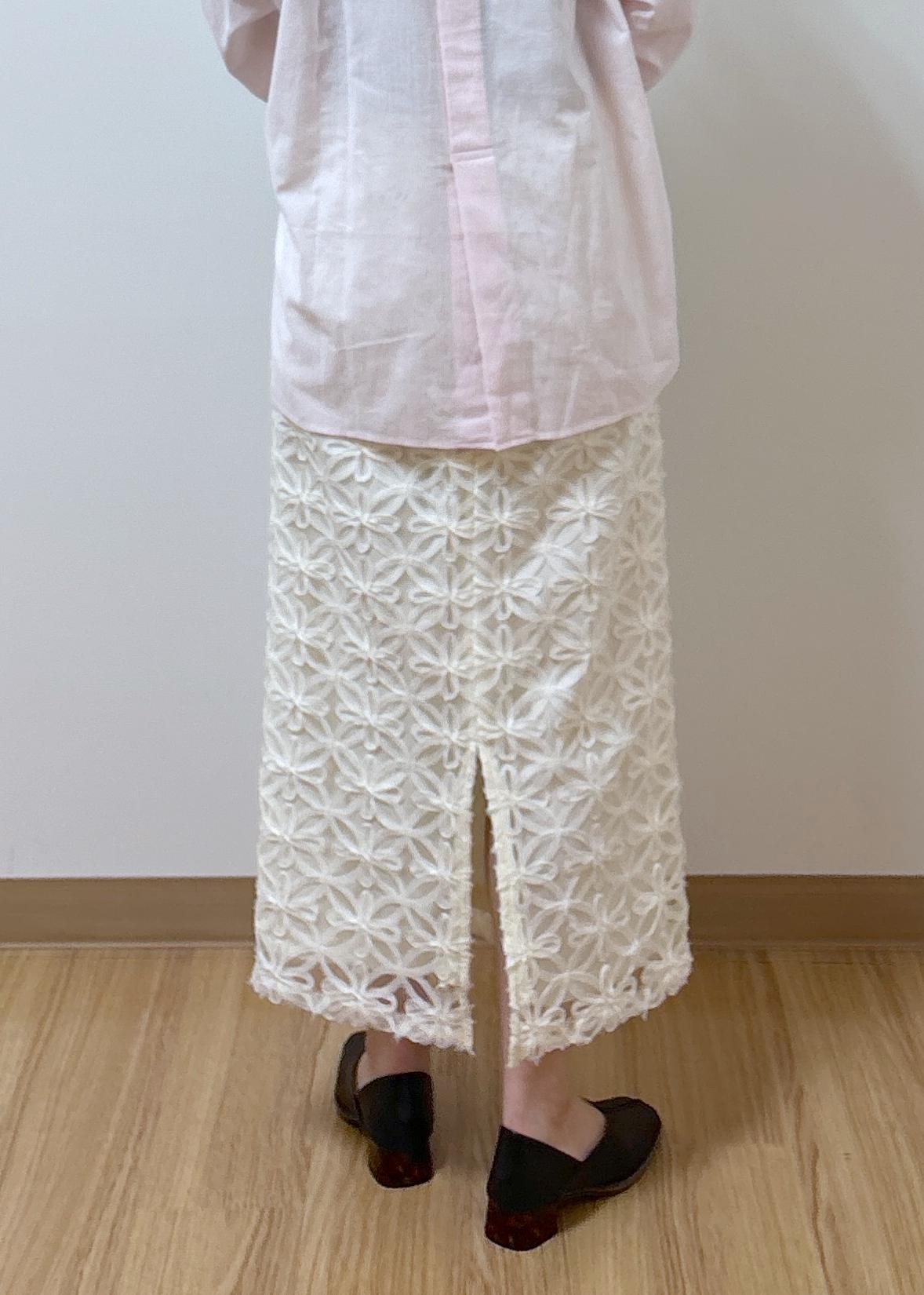 アウトレットROPÉ PICNICフラワーチュールレースアイラインスカートオフホワイト / 38¥3,769レビュー161cm38サイズで足首がしっかり見える丈感です。やや短めのつくりなので小柄さんでも履きやすいと思います。ウエストは総ゴムで着脱も楽ちん、後ろスリットで足捌きも良いIラインスカートです。