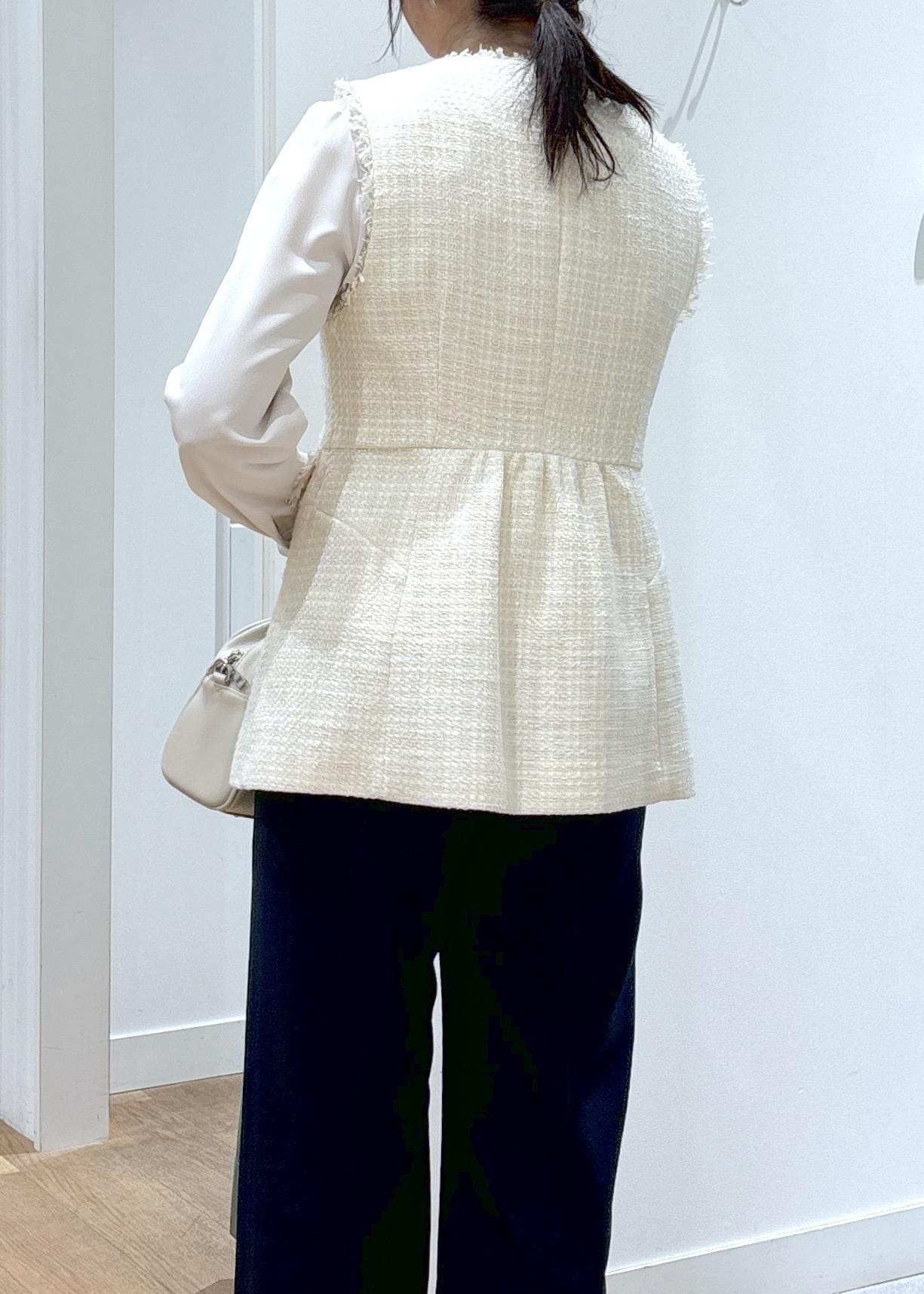 セレモニーやお仕事、普段使いにも着用して頂けるツイードジレを、