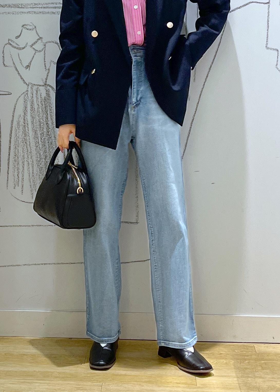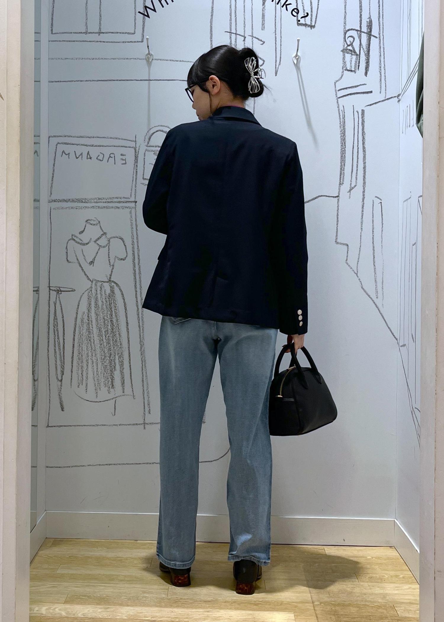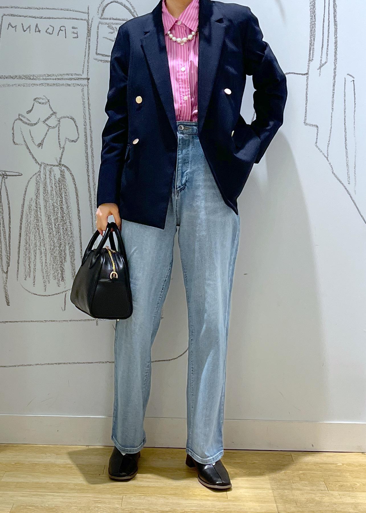 キレイめな金ボタンジャケットとボトムをデニムにして